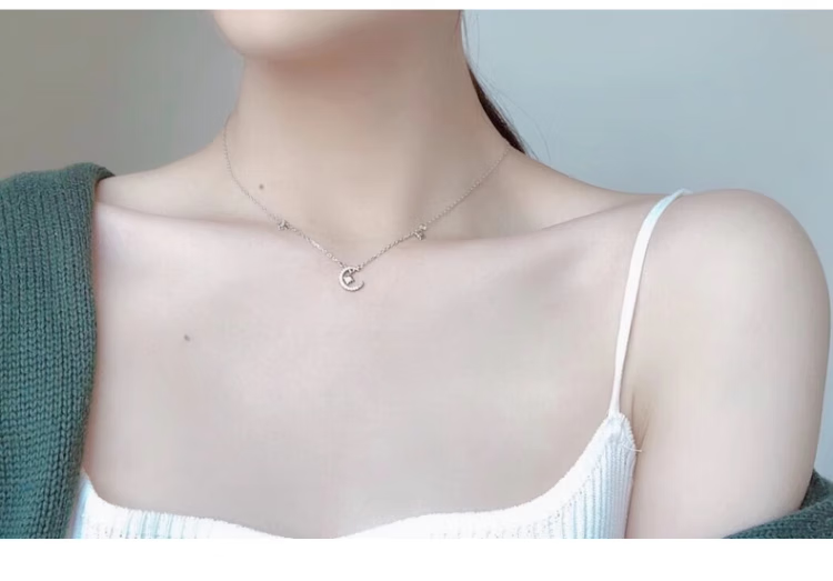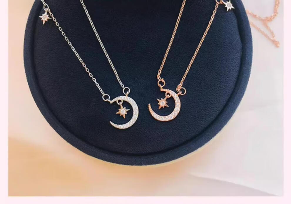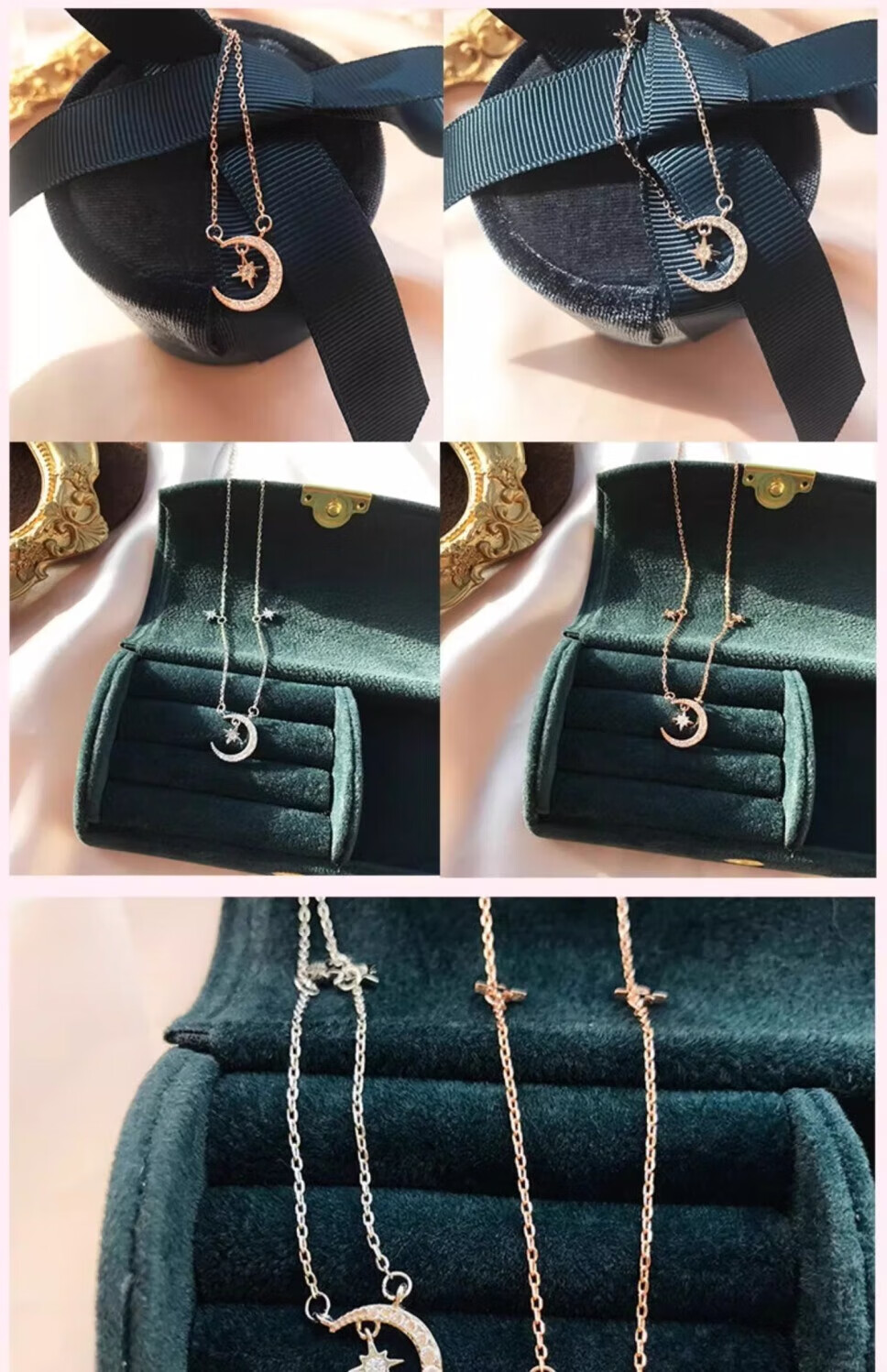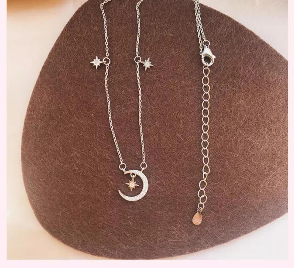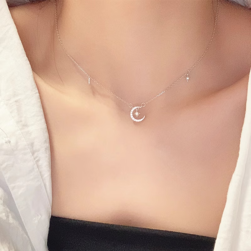 KZD Old Phoenix Pure Silver 9999 Moon Silver Necklace Accessories Women's Light Luxury Niche Style New Girlfriend's Birthday Moon Pure Silver Necklace Silver Lao Fengxiang Same Style Bow Gift Box/Certificate + Silver Polishing Cloth