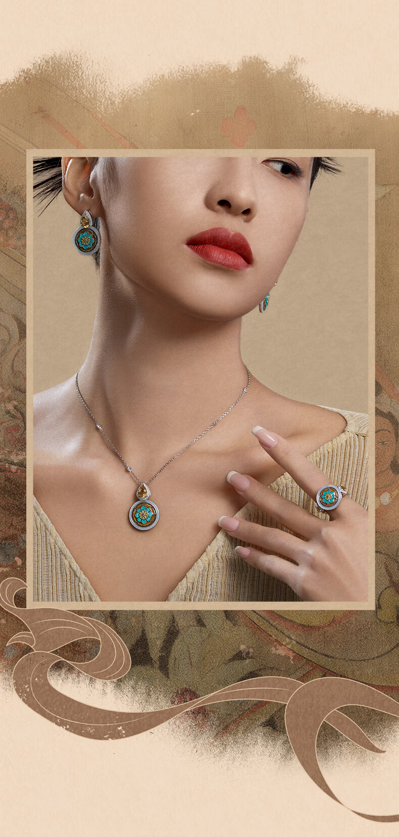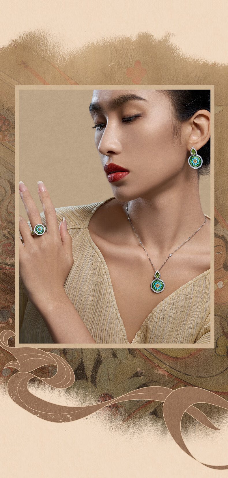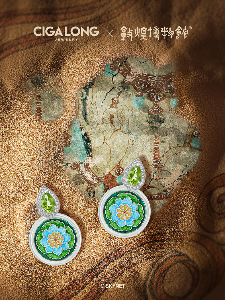 CIGA LONG Dunhuang Museum co-branded Baoxianghua Peridot Earrings New Chinese Style Jewelry Tourism Baoxianghua Peridot Earrings