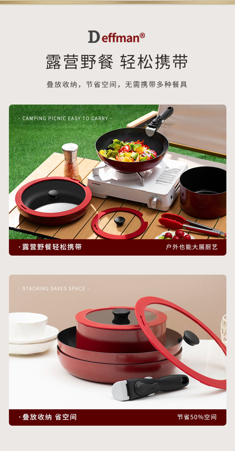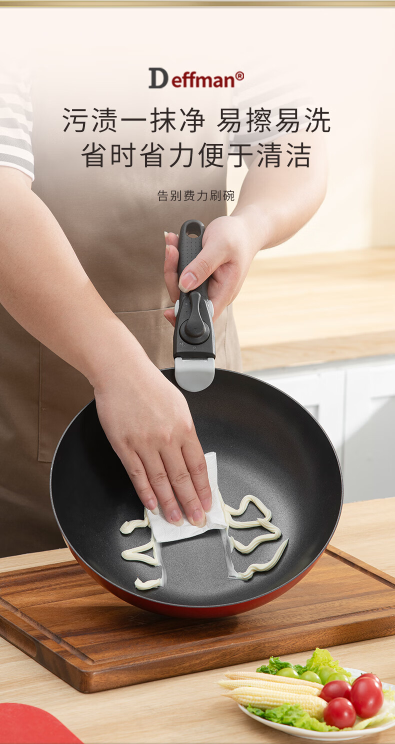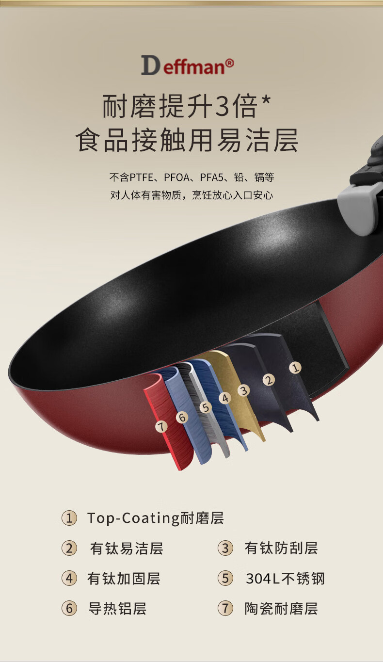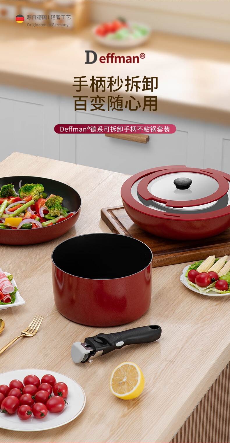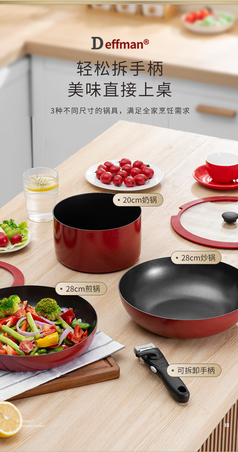 Deffman has a titanium non-stick wok, wok, frying pan, kitchen utensil set, soup pot, milk pot and pot, three-piece set for gas induction cooker, non-stick wok, wok + soup pot + frying pan