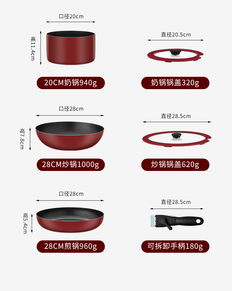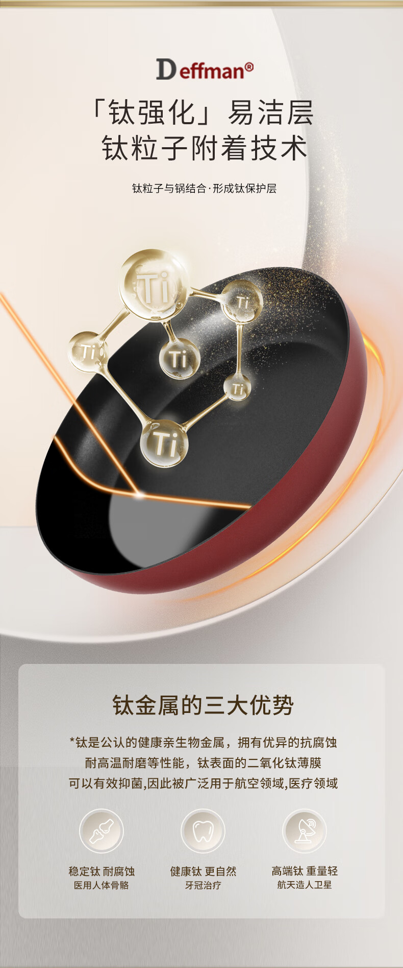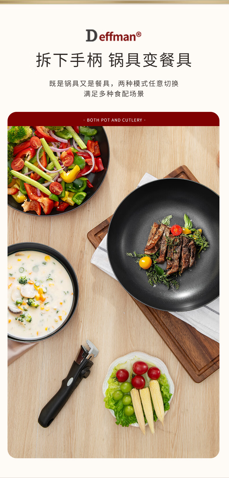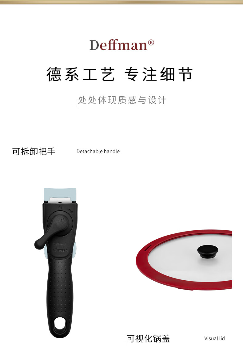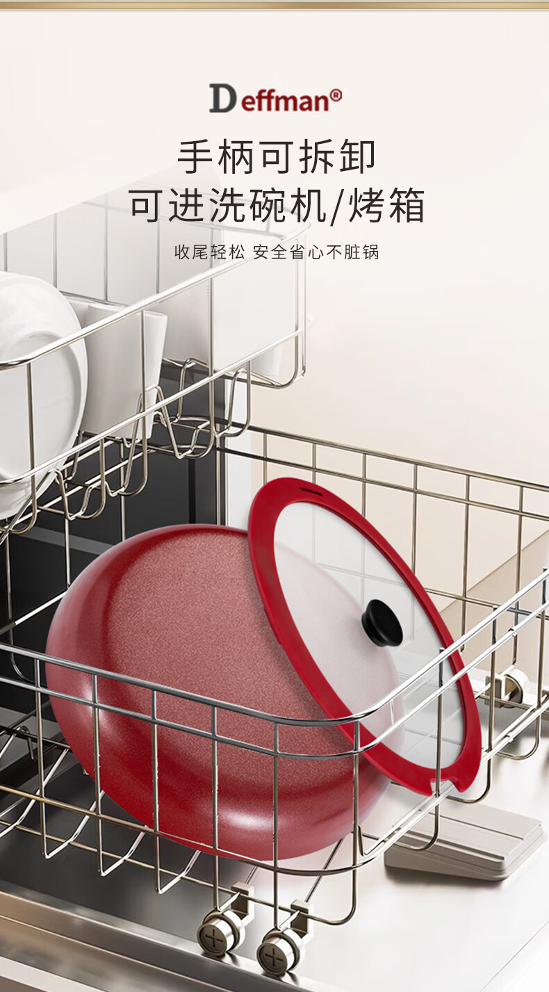 Deffman has a titanium non-stick wok, wok, frying pan, kitchen utensil set, soup pot, milk pot and pot, three-piece set for gas induction cooker, non-stick wok, wok + soup pot + frying pan