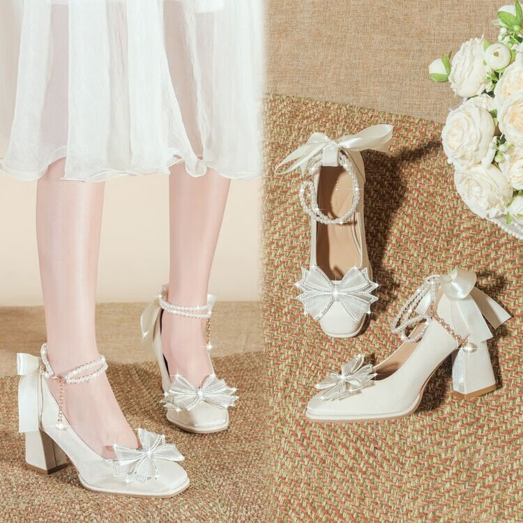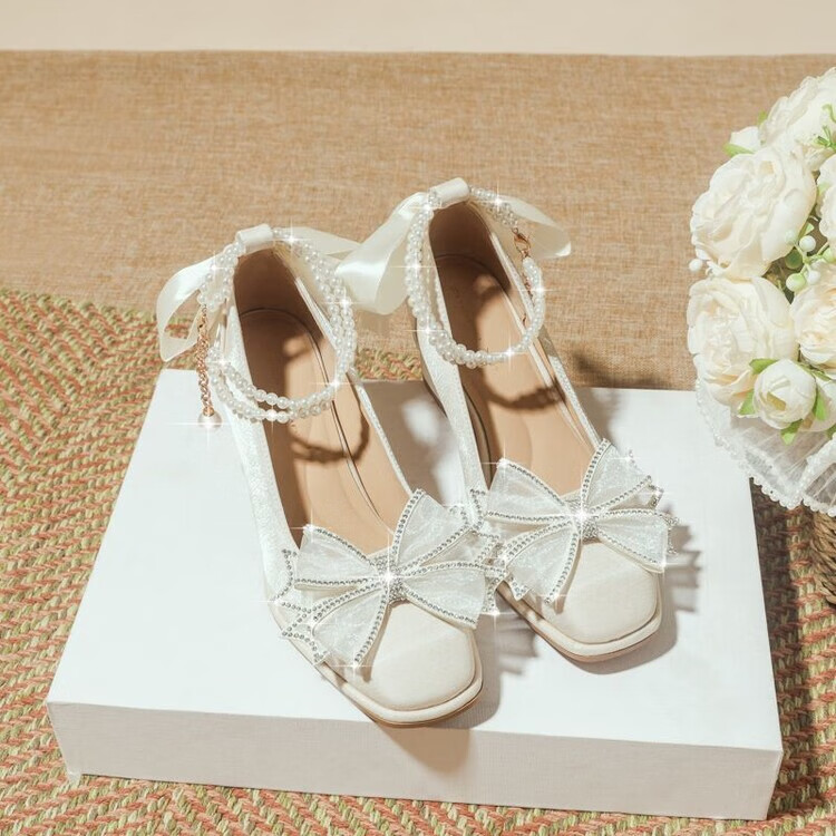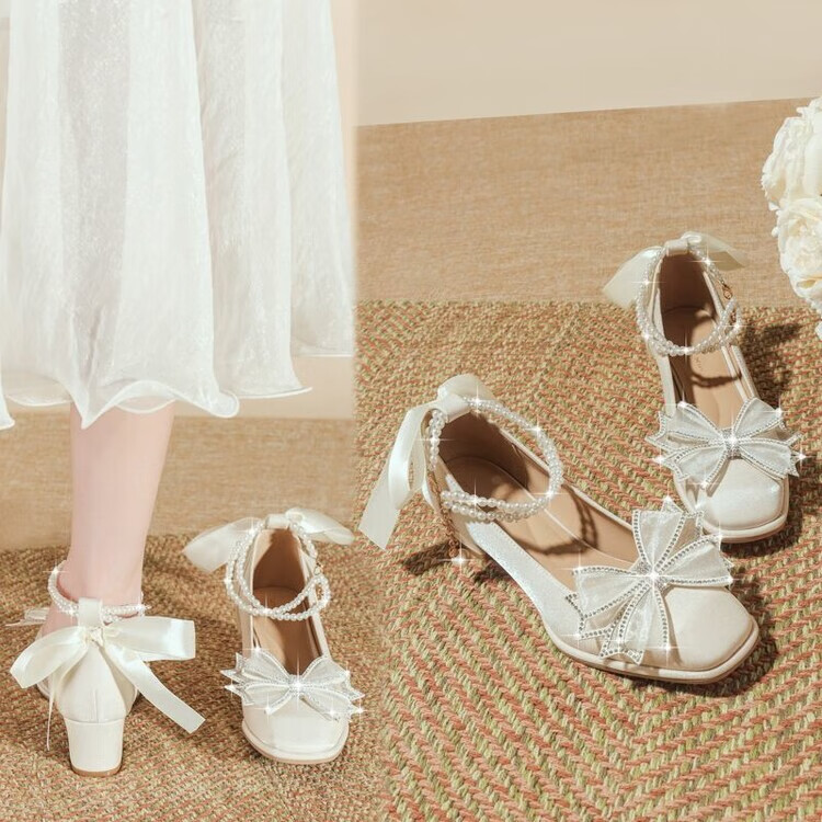 Yalso children's high heels 10-15 years old performance Hanfu shoes children's costume girls princess shoes catwalk leather shoes ribbon bow 8cm heel high standard size 33