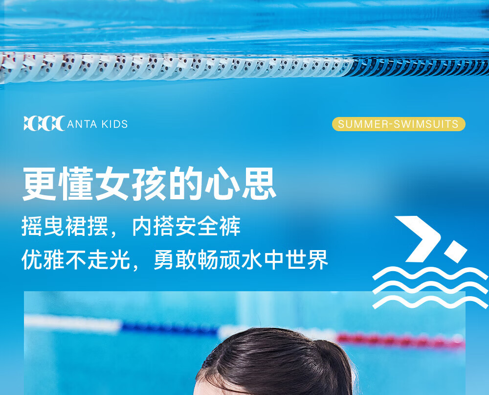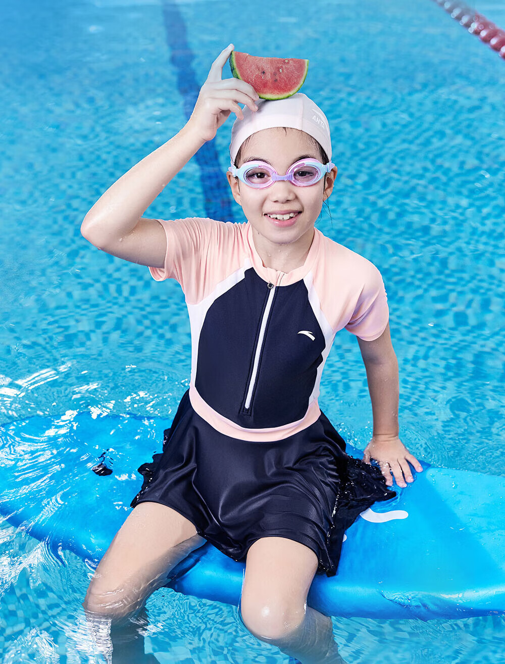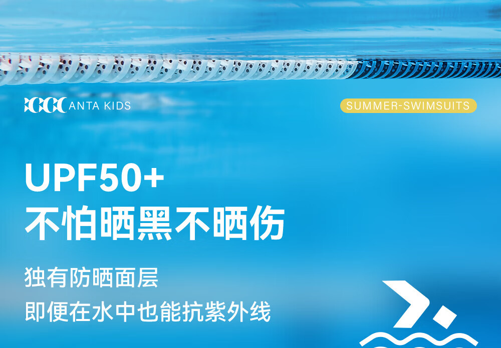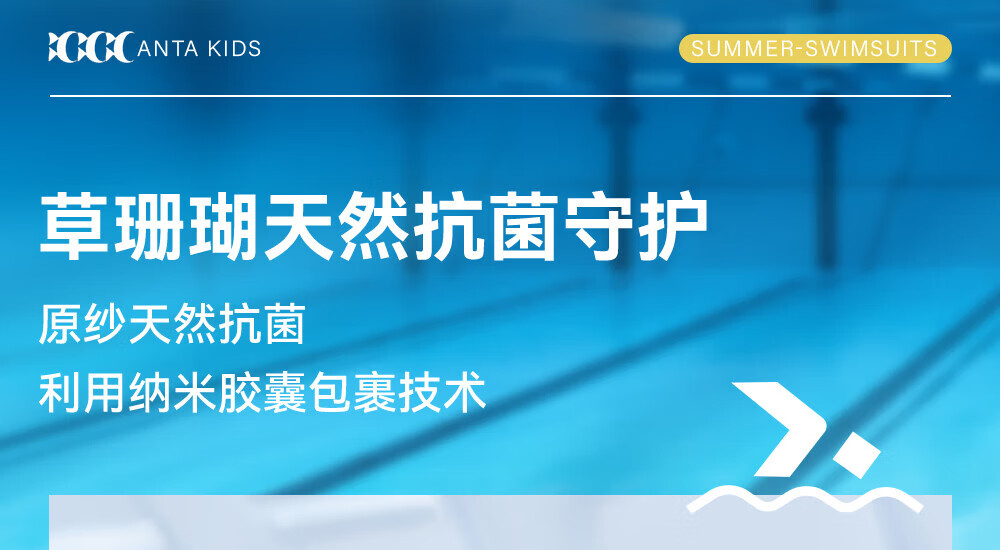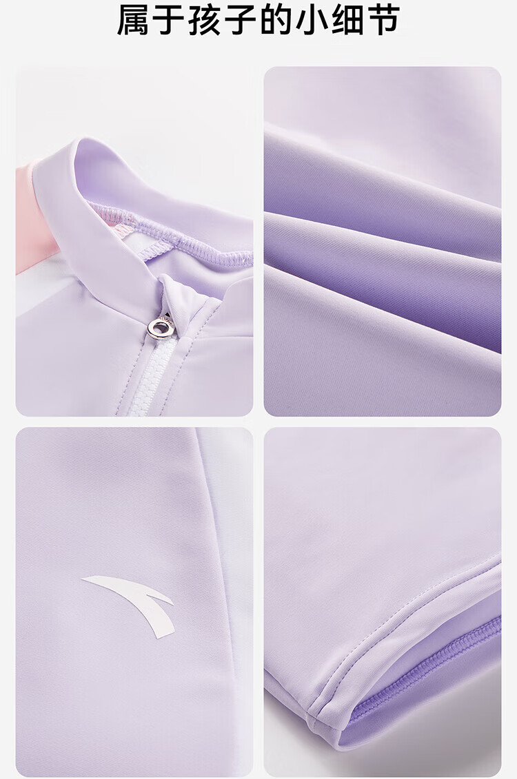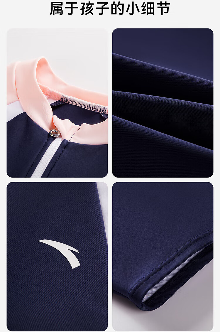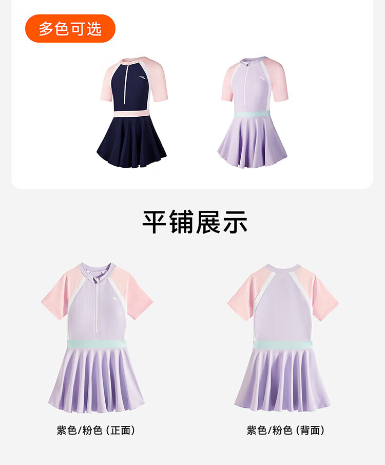Anta children's swimsuit for girls and boys one-piece swimsuit 2025 summer new style fresh and sweet antibacterial and anti-chlorine sunscreen swimming skirt navy/pink-1 160