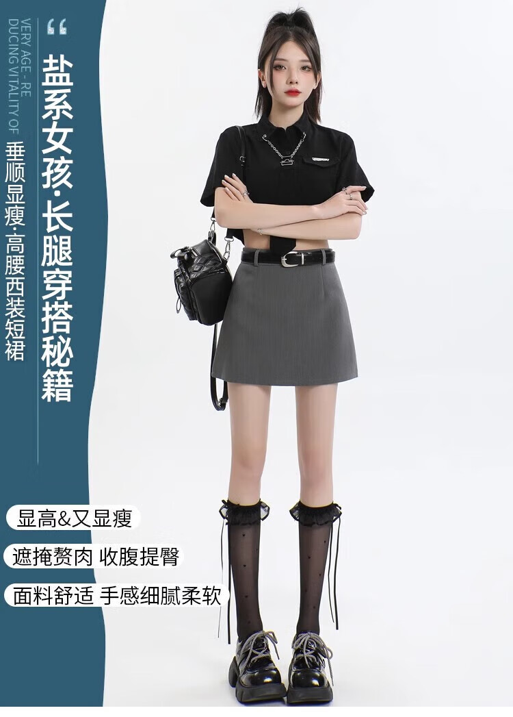 He Jiagong skirt, women's commuter interview suit skirt, one-step skirt, hip-covering slim skirt, short skirt, a-line skirt, spring and autumn, gray M, recommended 100-110 Jin Jin equals 0.5 kg