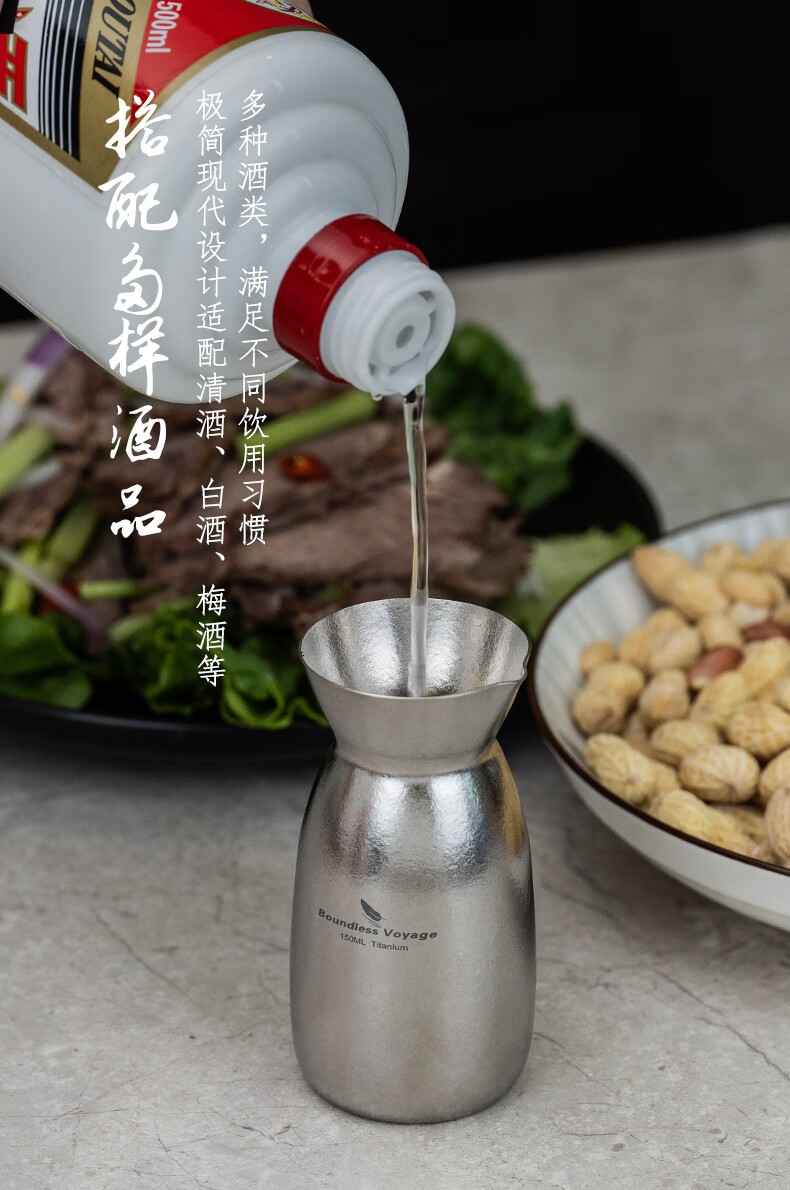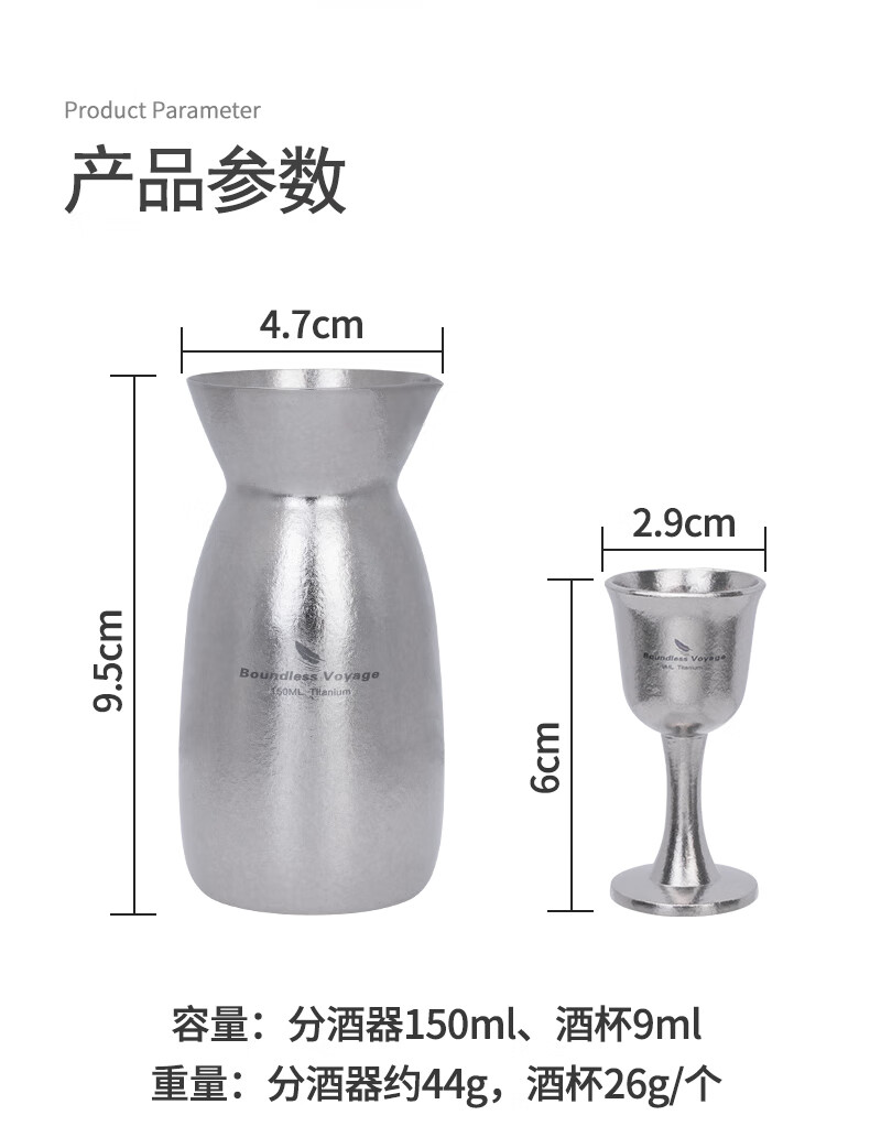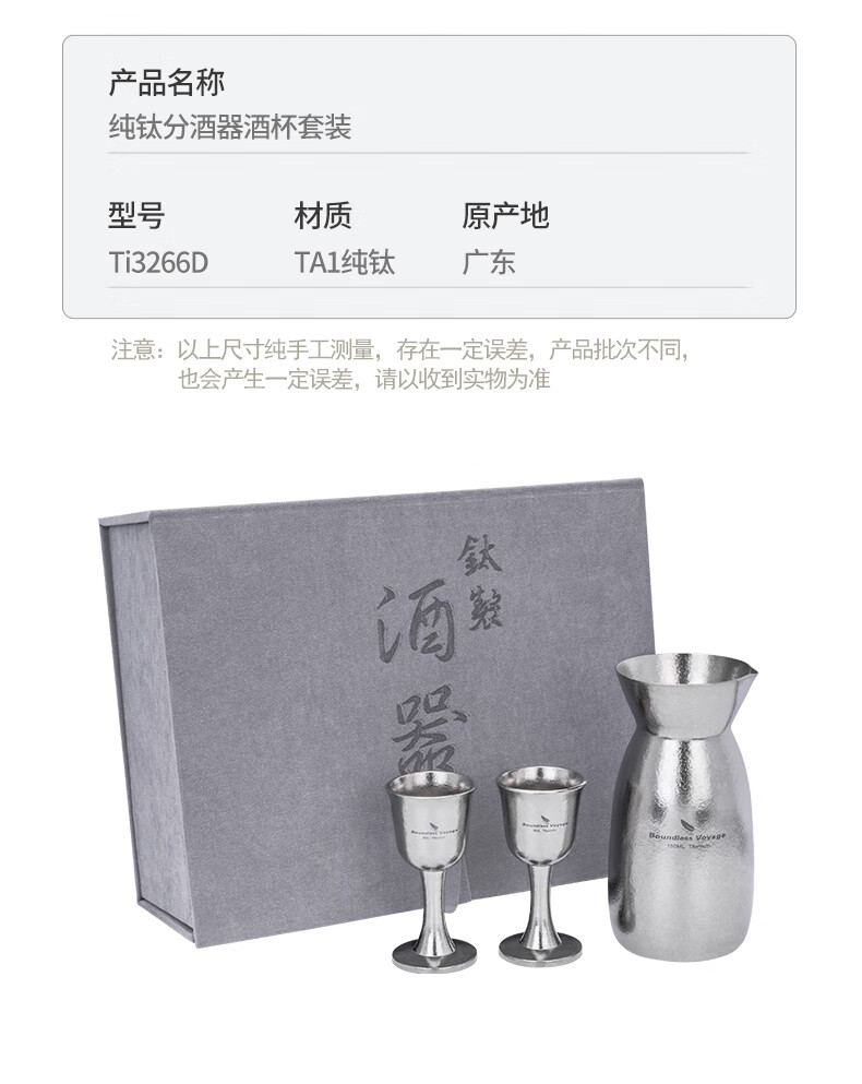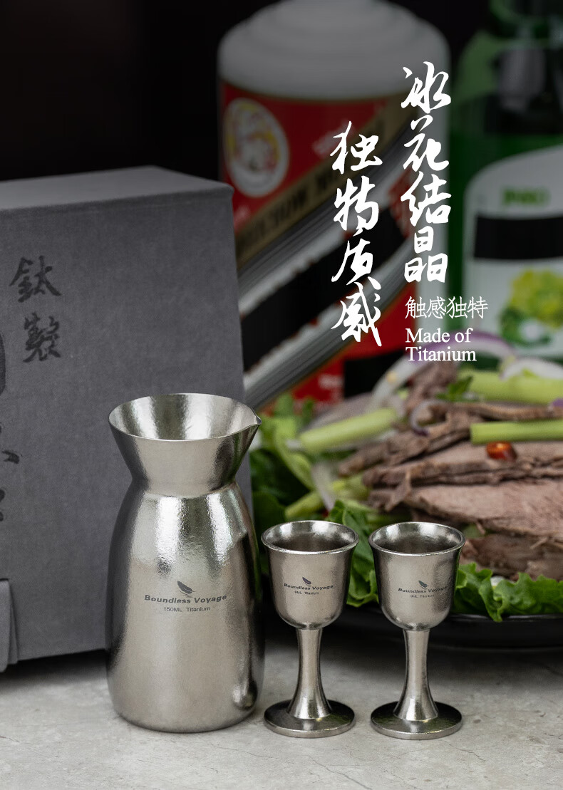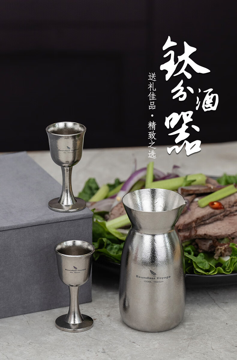 Biwei pure titanium liquor dispenser Chinese style household high-end wine glass decanter gift box set wine bottle Ti3266D wine bottle + 2 wine glasses