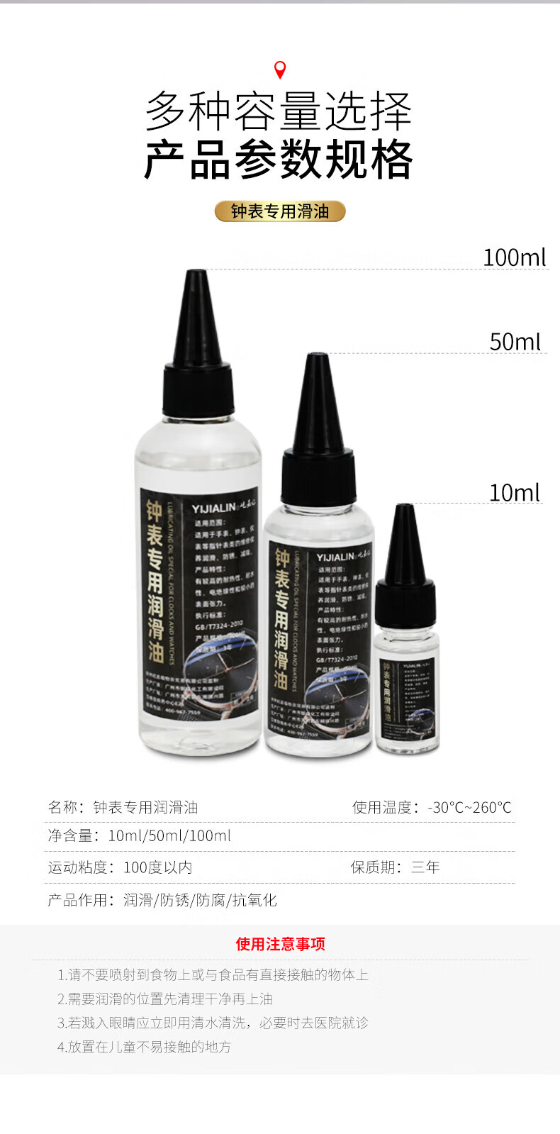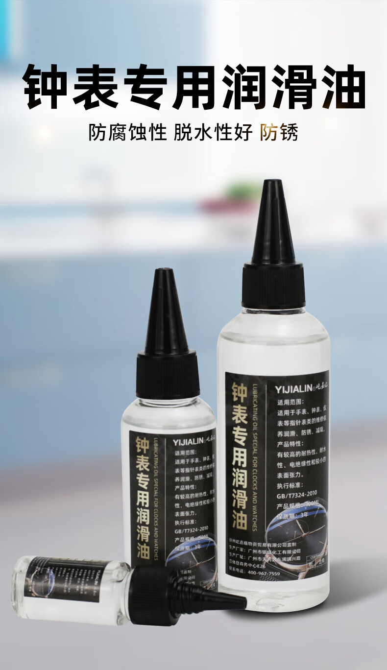 Special lubricant for clocks, mechanical quartz watch lubricant, anti-rust oil, maintenance oil, movement gear bearing clock oil, 50ML lubricant + silver polishing cloth + syringe