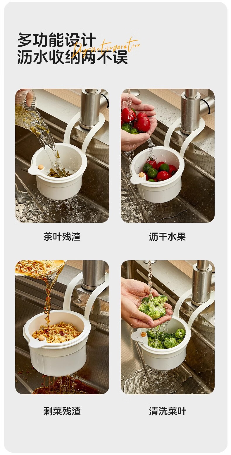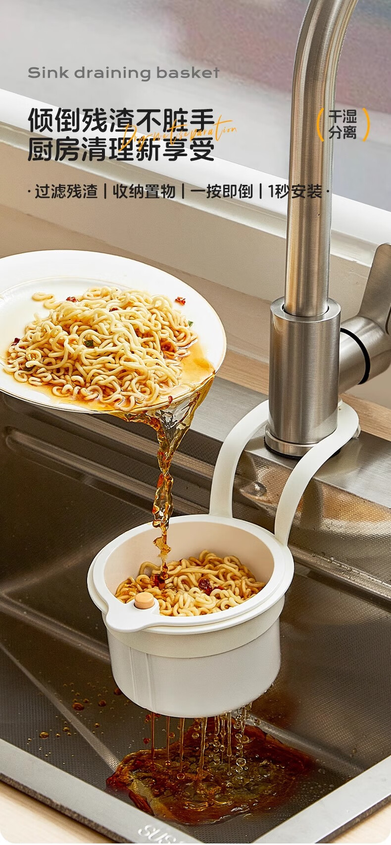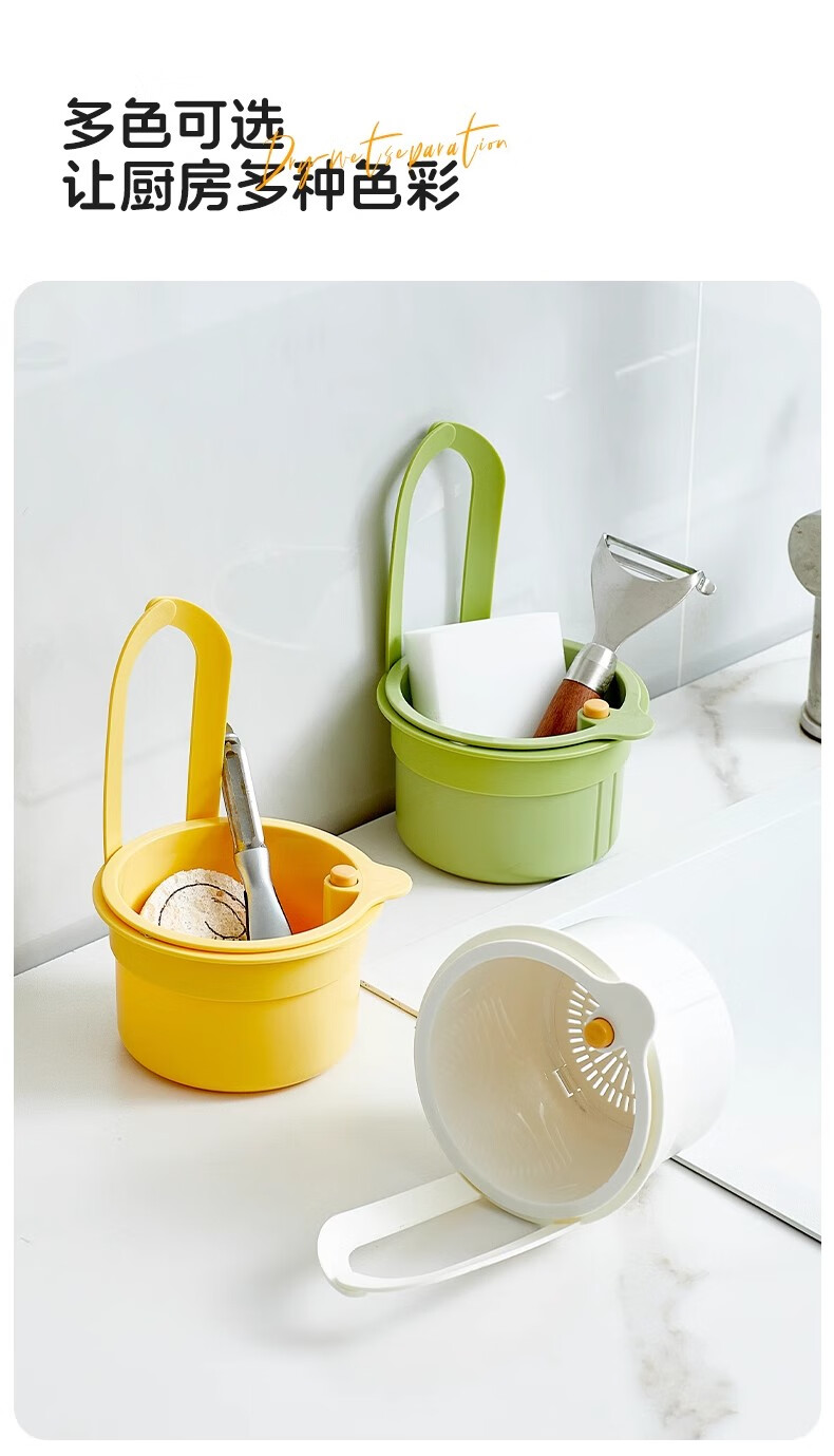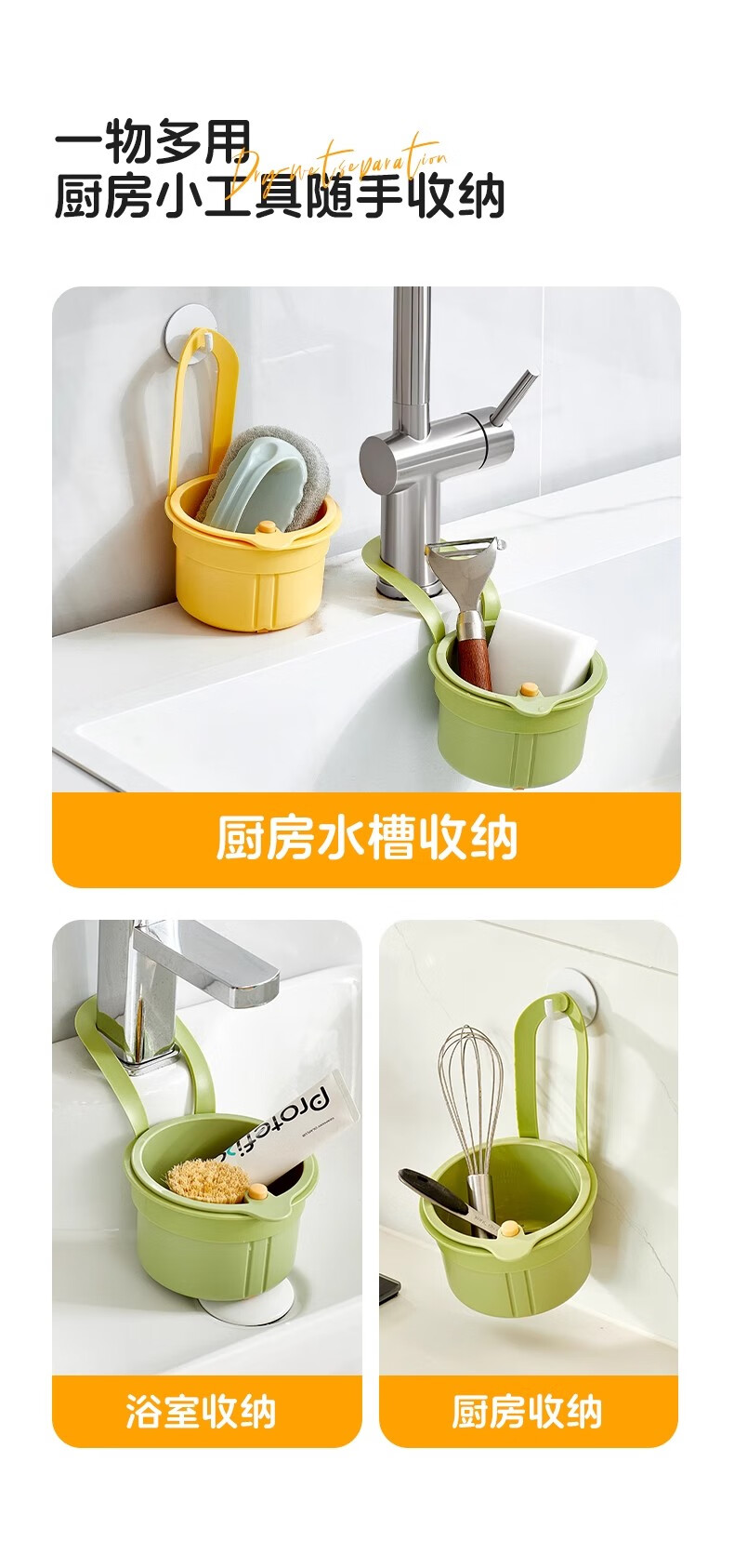 Ying Tiao Creative Multifunctional Press-type Sink Filter Storage Hanging Basket Kitchen Shelves Faucet Sponge Drain Rack Green*1 Drain Hanging Basket/One-click Drain
