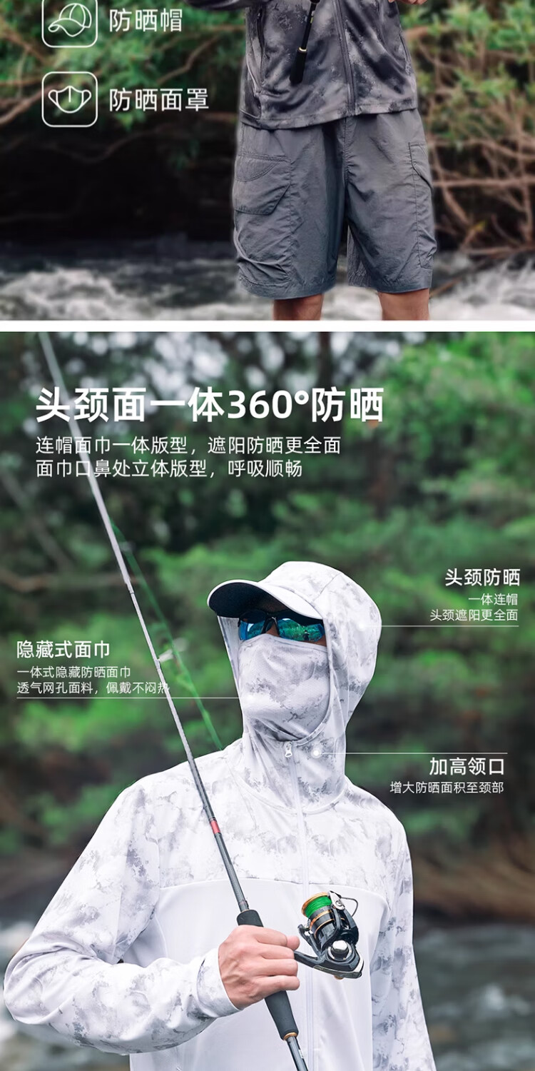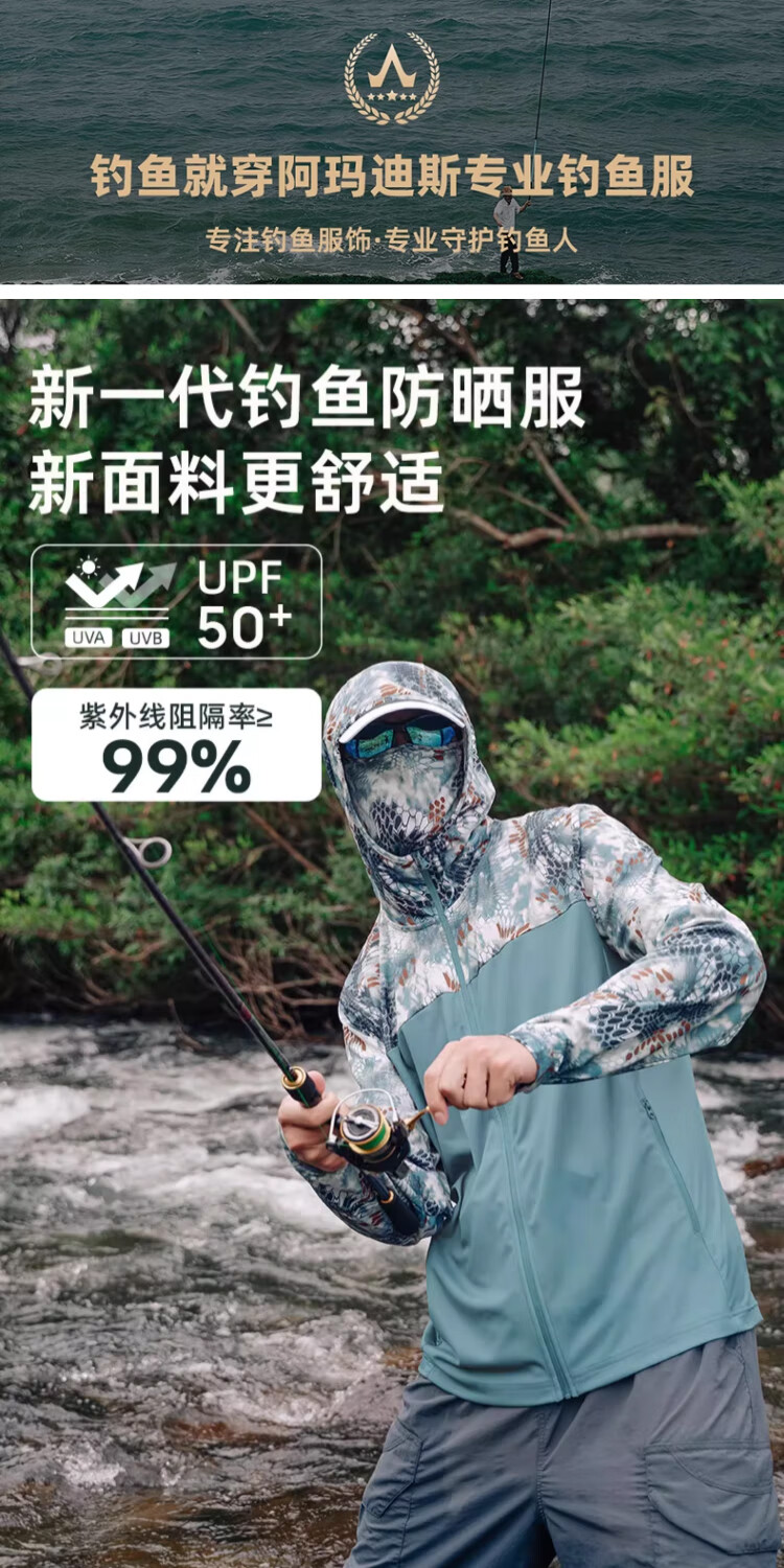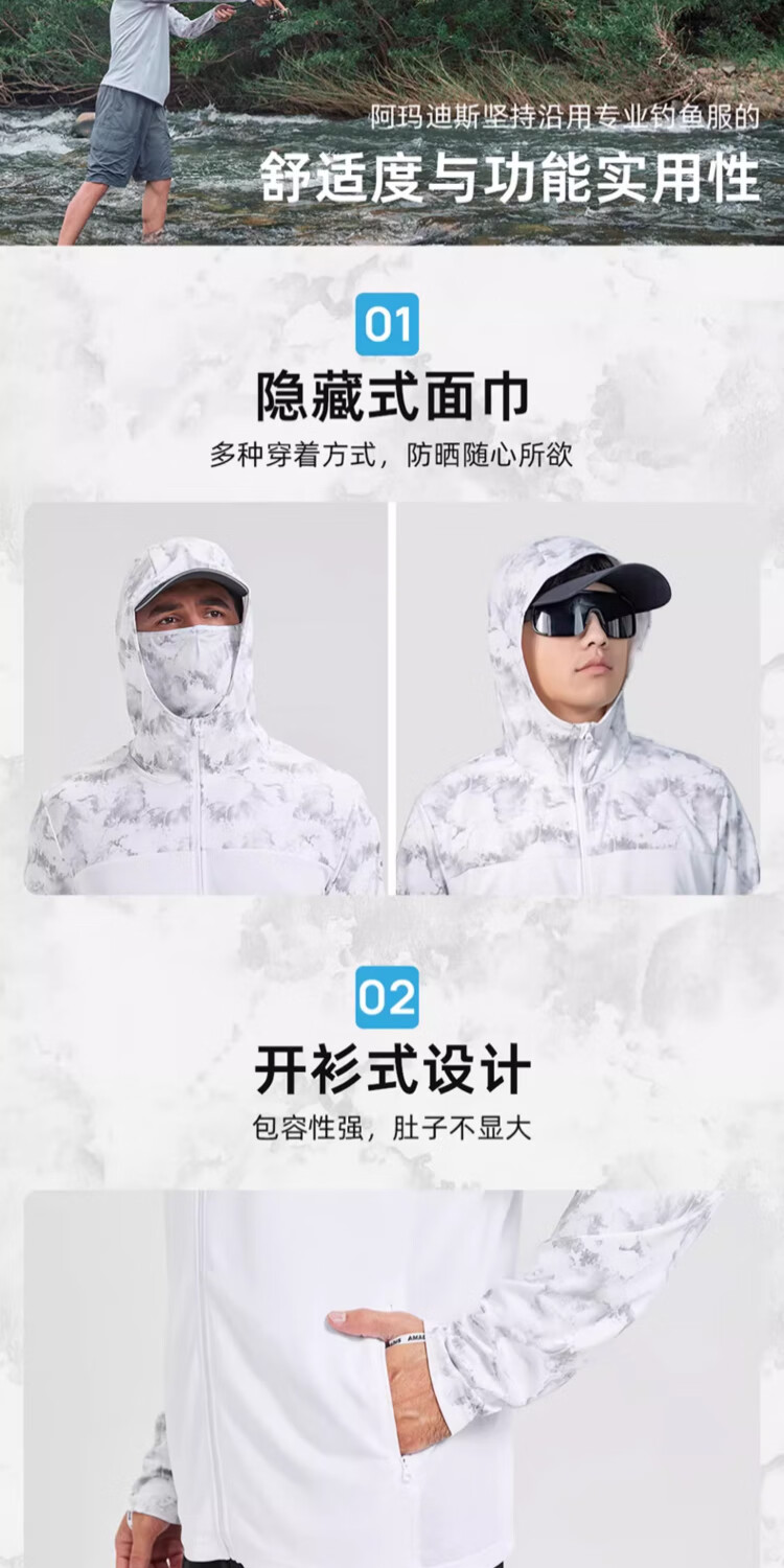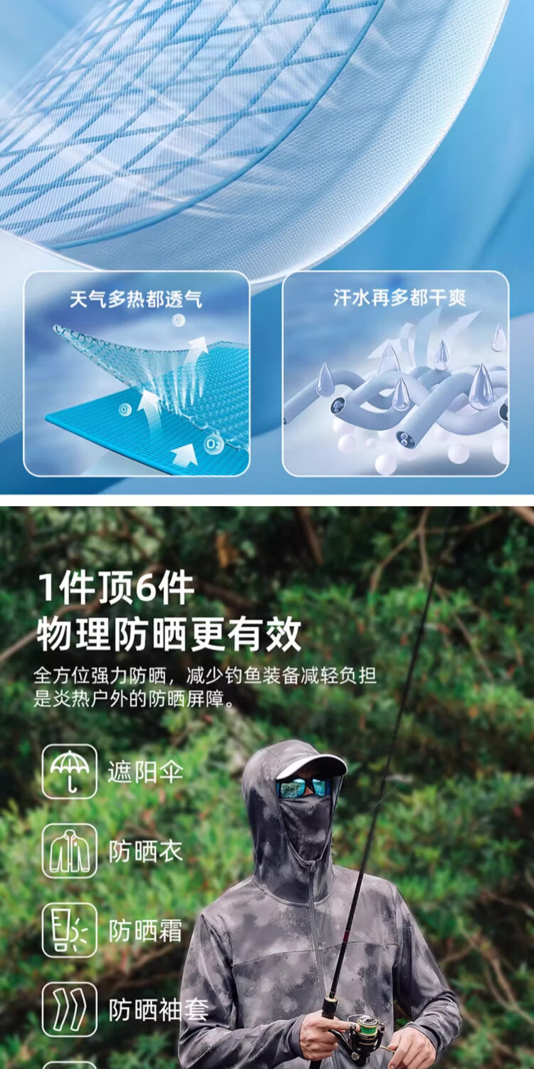 Amadeus Degora Face Covering Fishing Suit Sun Protection Suit Men's Summer Fishing Quick-Drying Clothes Ice Silk Clothes Luya Suit Hidden Facial Mask Peacock Blue Upgraded Hidden Facial Facial Style S (Recommended 110Jin Jin equal to 0.5kg or less)
