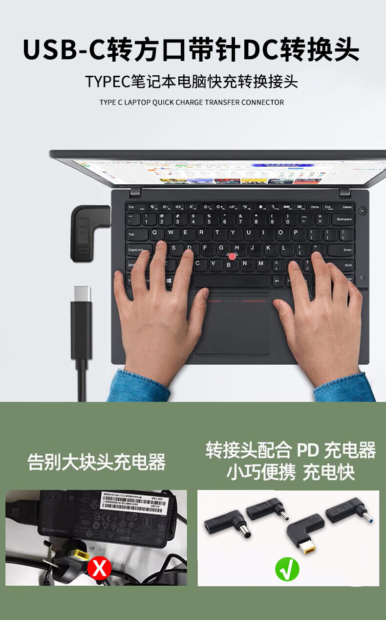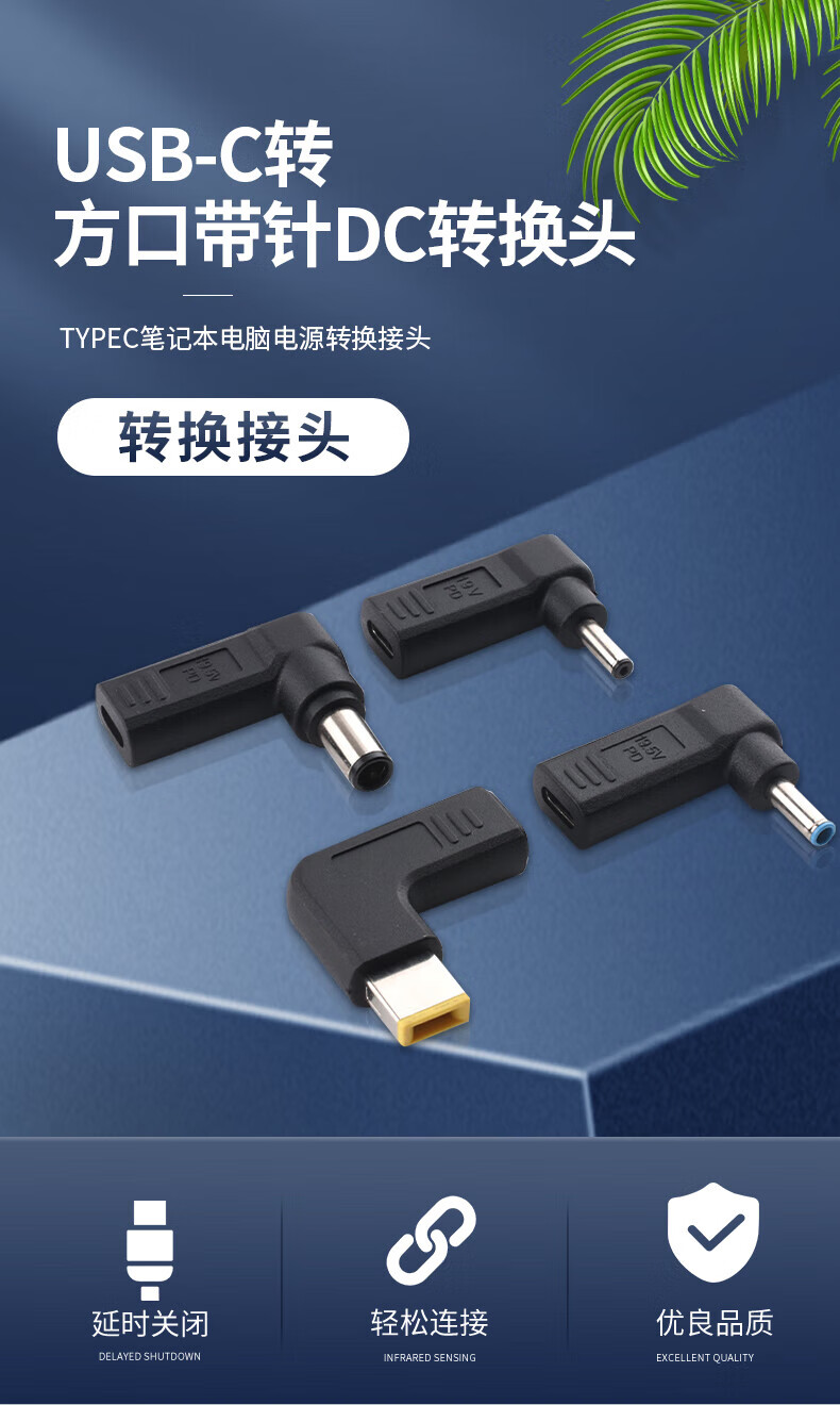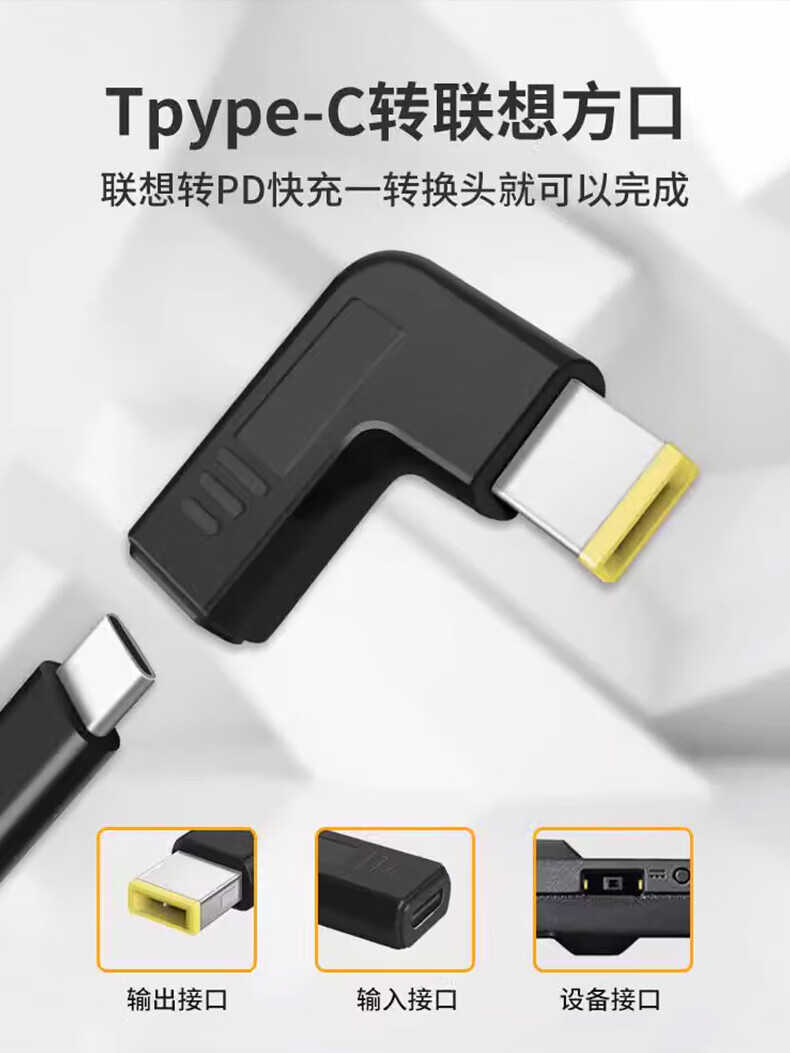 Zejie USB-C to square port with pin DC converter TYPEC laptop power conversion connector TYPE-C female to Lenovo square port No Specifications
