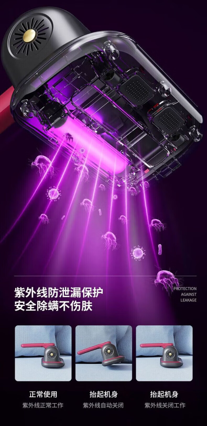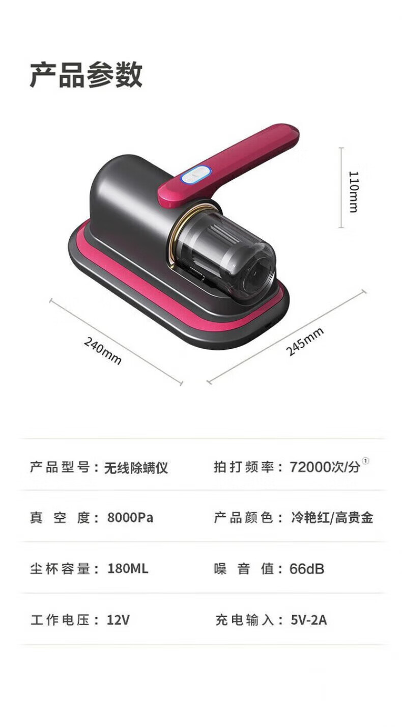RASW Germany Wireless Mite Remover Vacuum Cleaner Dormitory Indoor and Outdoor Bacteria Killer Home Bed Ultrasonic Ultraviolet Sofa Handheld Portable Bed Vacuum Cleaner All-in-One Upgraded 800,000 Rate Super Bacteria Removal + Ash Removal + Mite Suction Large Suction Vacuum Mite Remover