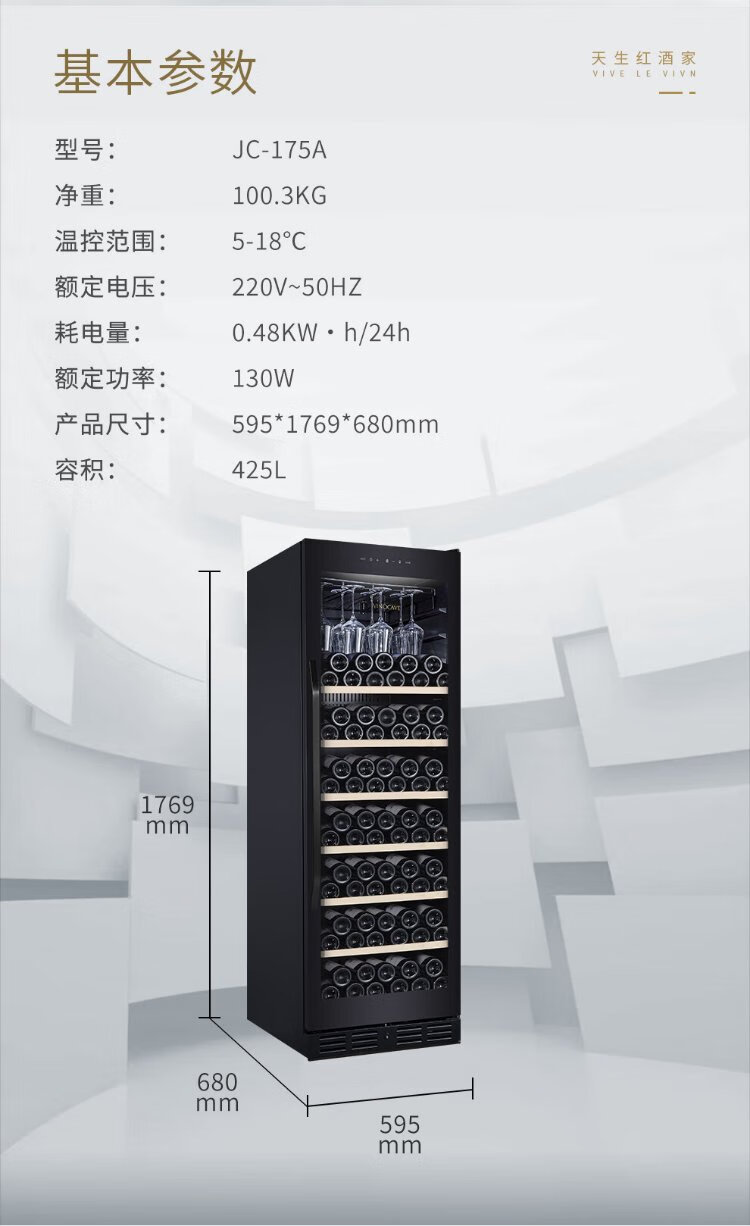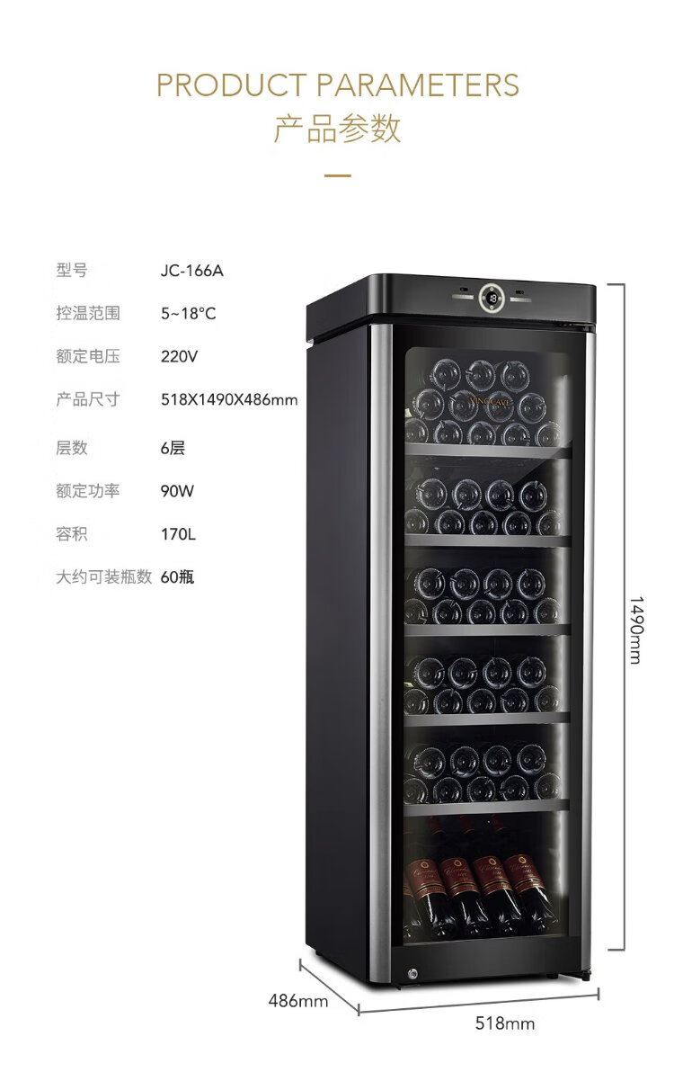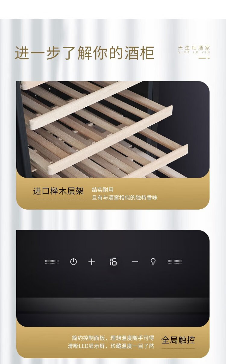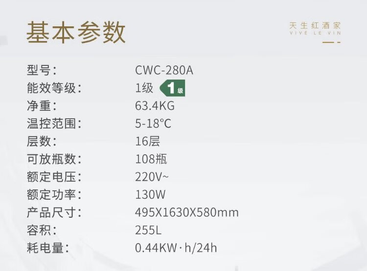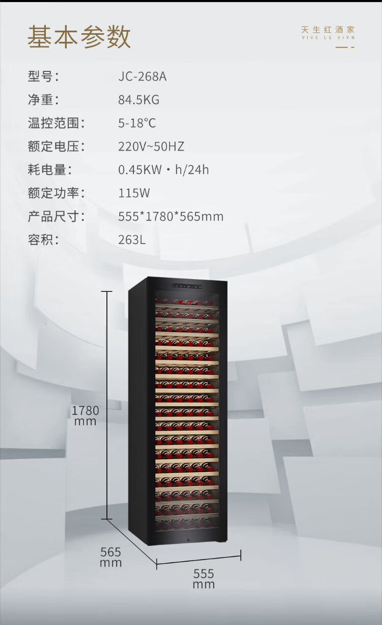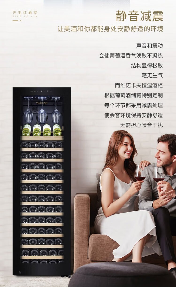Vinocave wine cabinet constant temperature refrigerator embedded moisturizing compressor home living room fresh wine refrigerated storage display cabinet beverage frost ice bar ultra-thin CWC-280A-255L-108 bottles