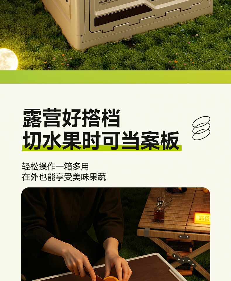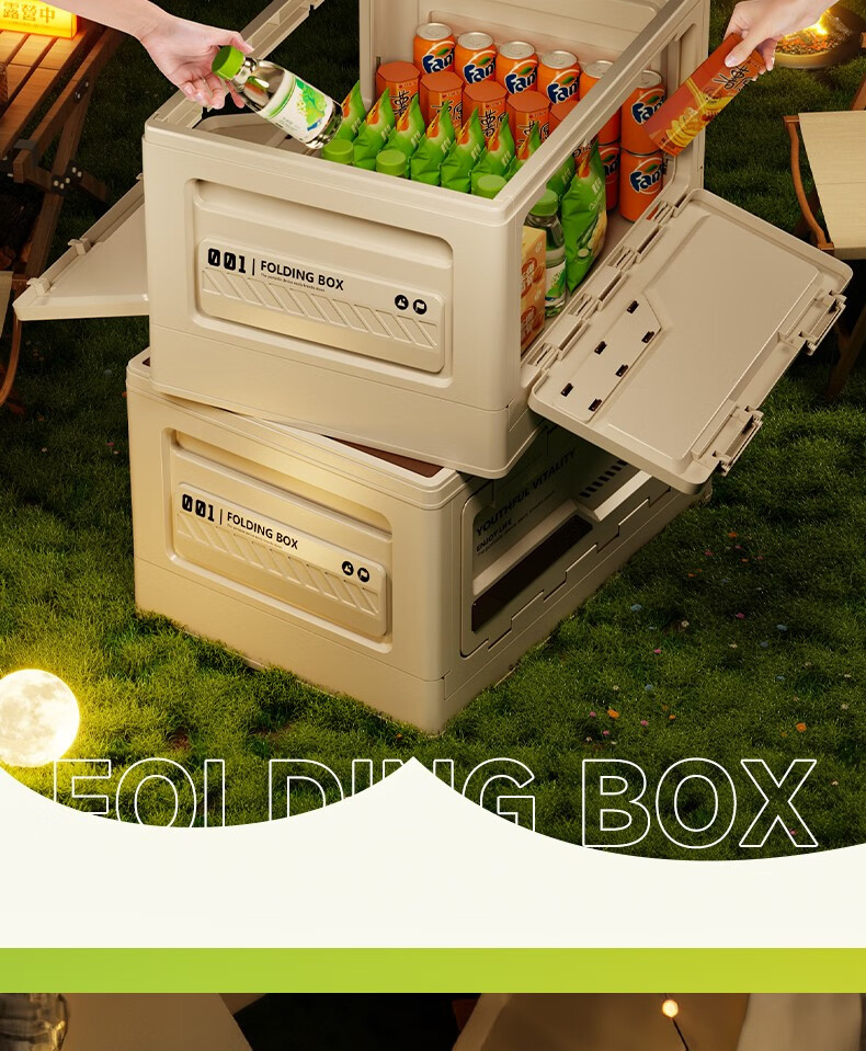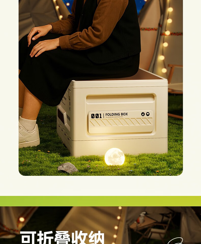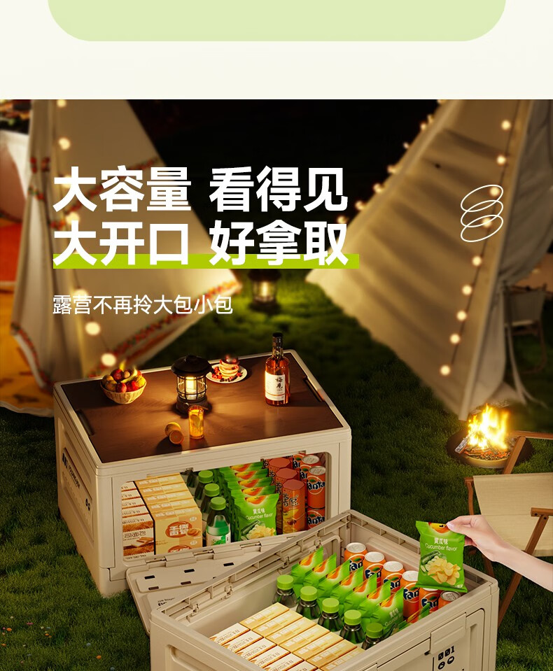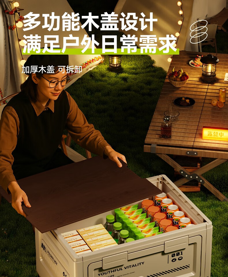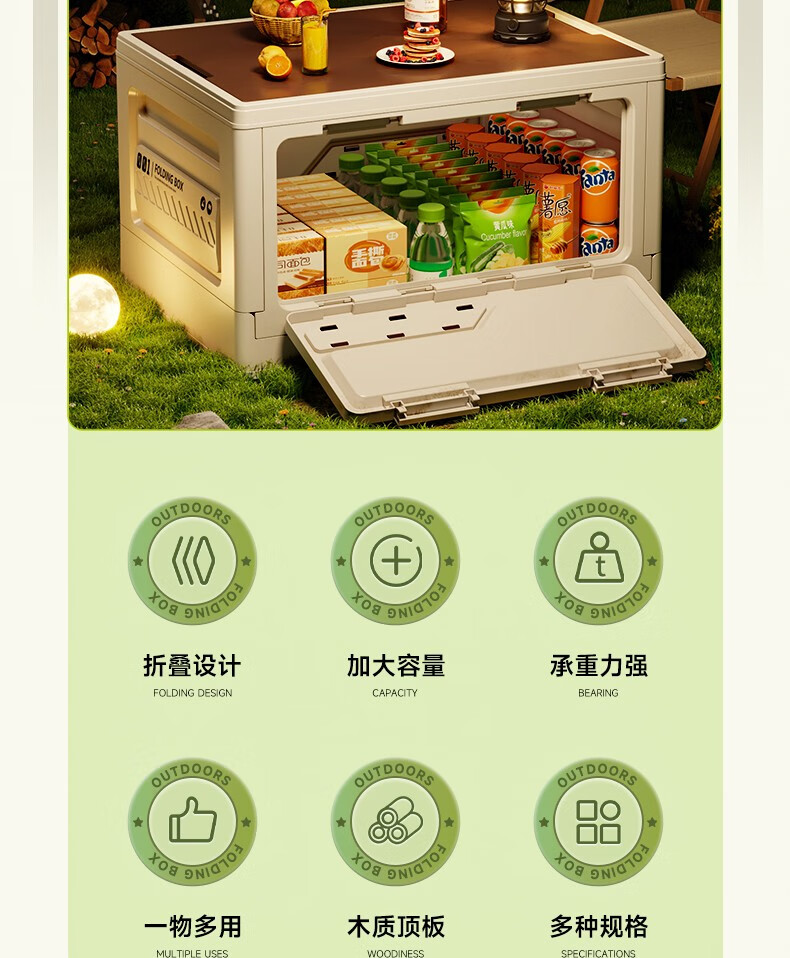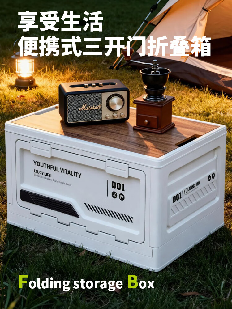 Nafenai outdoor storage box car camping foldable box multi-functional picnic outing debris storage box portable table 50cm off-white with wooden board three doors carefully selected brand newly upgraded thickening and reinforcement
