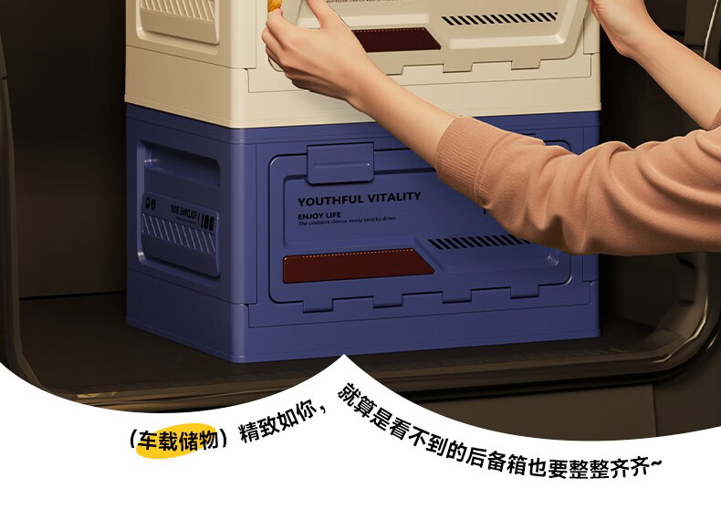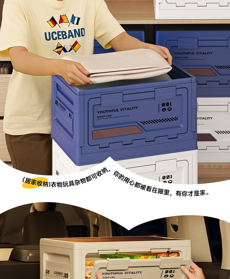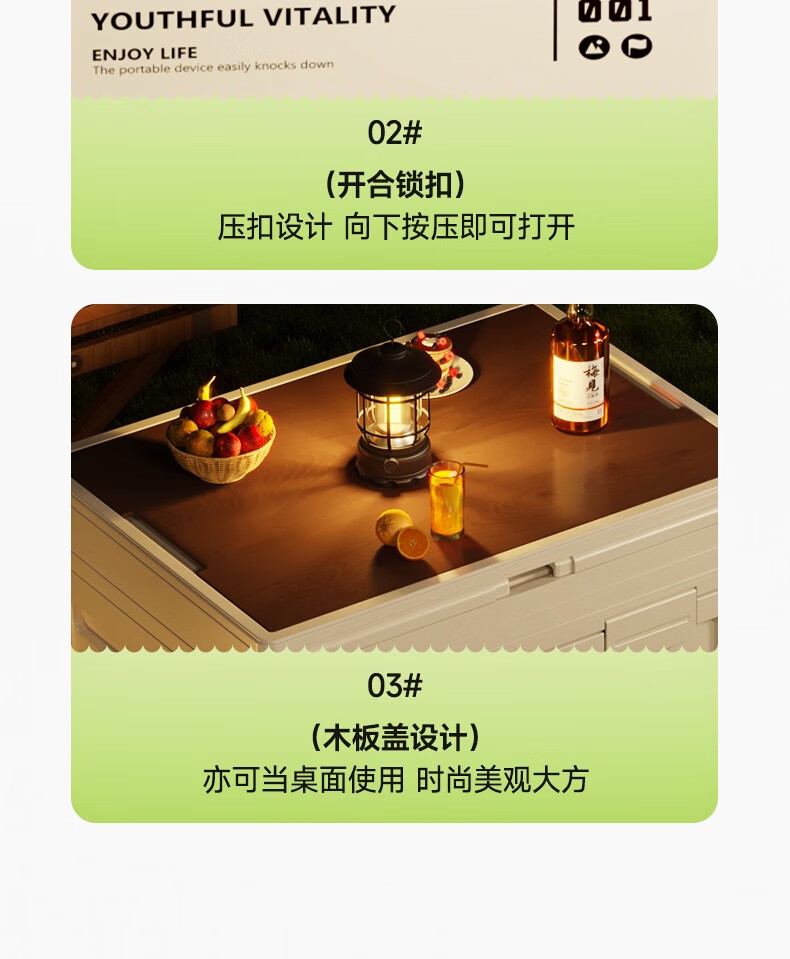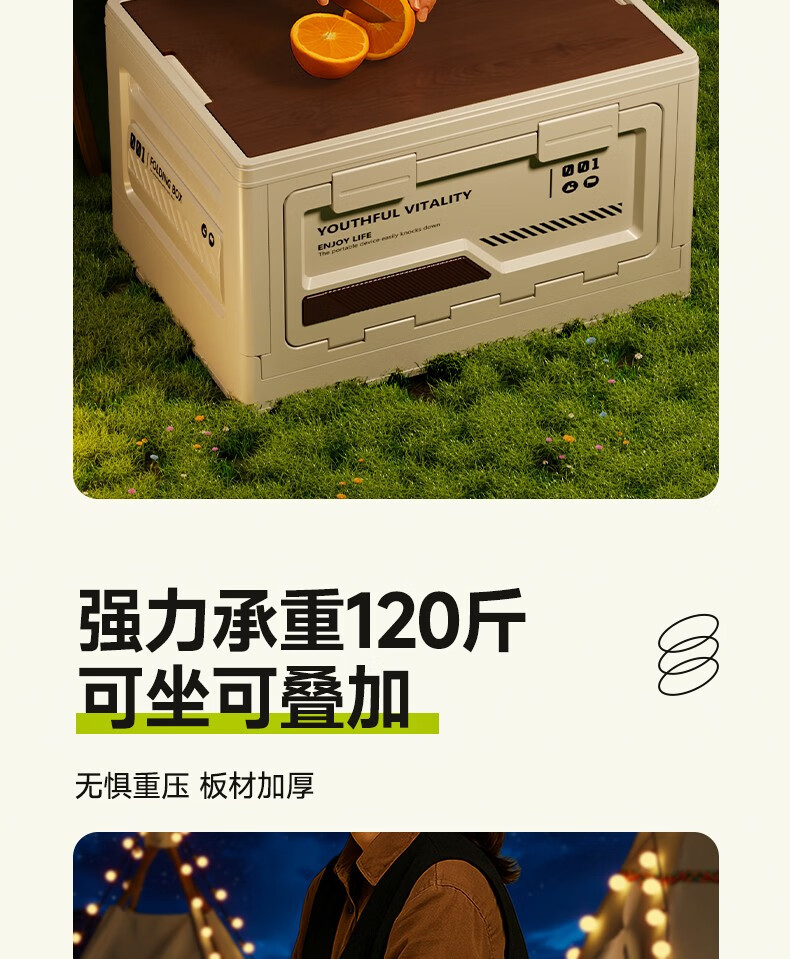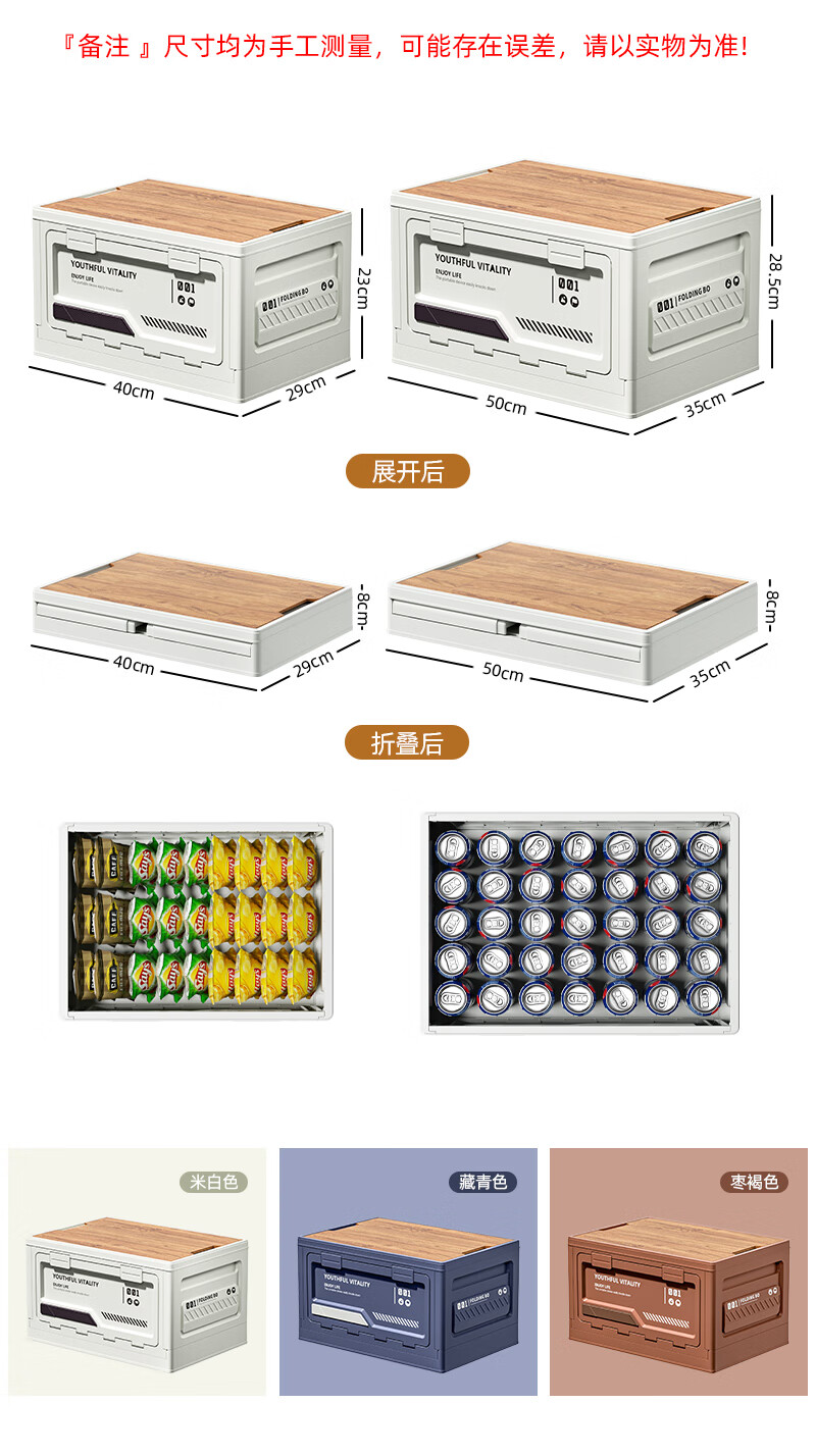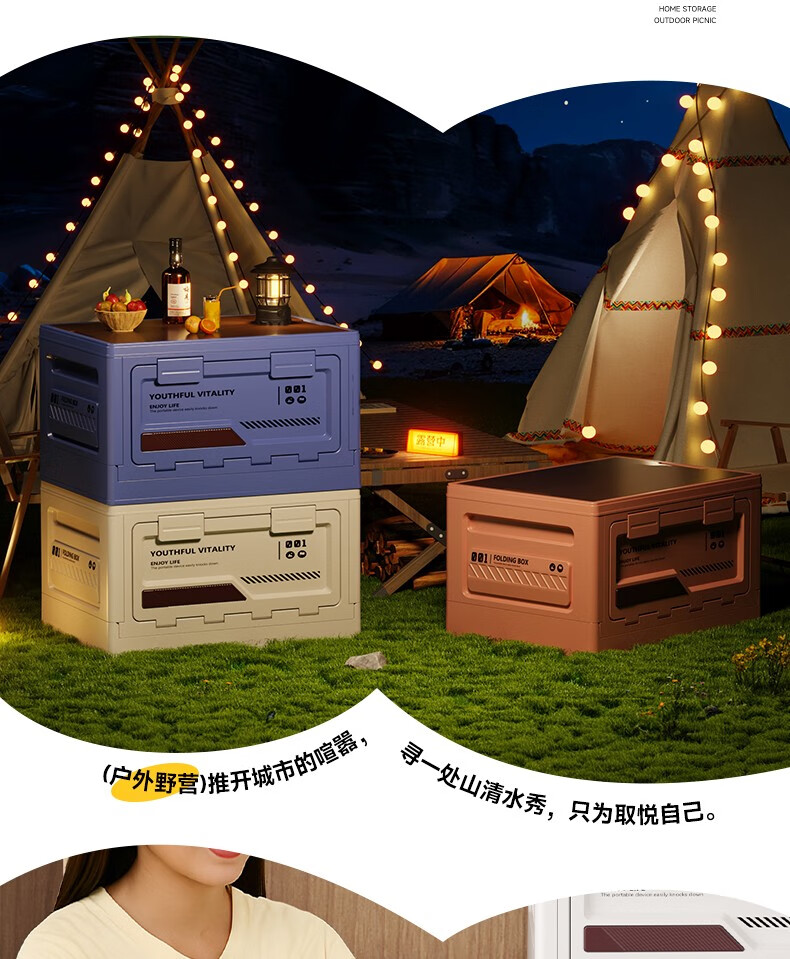 Nafenai outdoor storage box car camping foldable box multi-functional picnic outing debris storage box portable table 50cm off-white with wooden board three doors carefully selected brand newly upgraded thickening and reinforcement