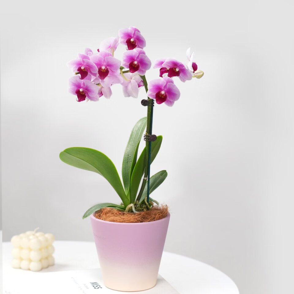 New Year's Eve Flowers Spring Festival Phalaenopsis Potted Flower Seedlings Desktop Decoration Flowers and Plants Good for All Seasons Green Plants New Year's Goods Pink Phalaenopsis with Small Resin UFO Set Pot