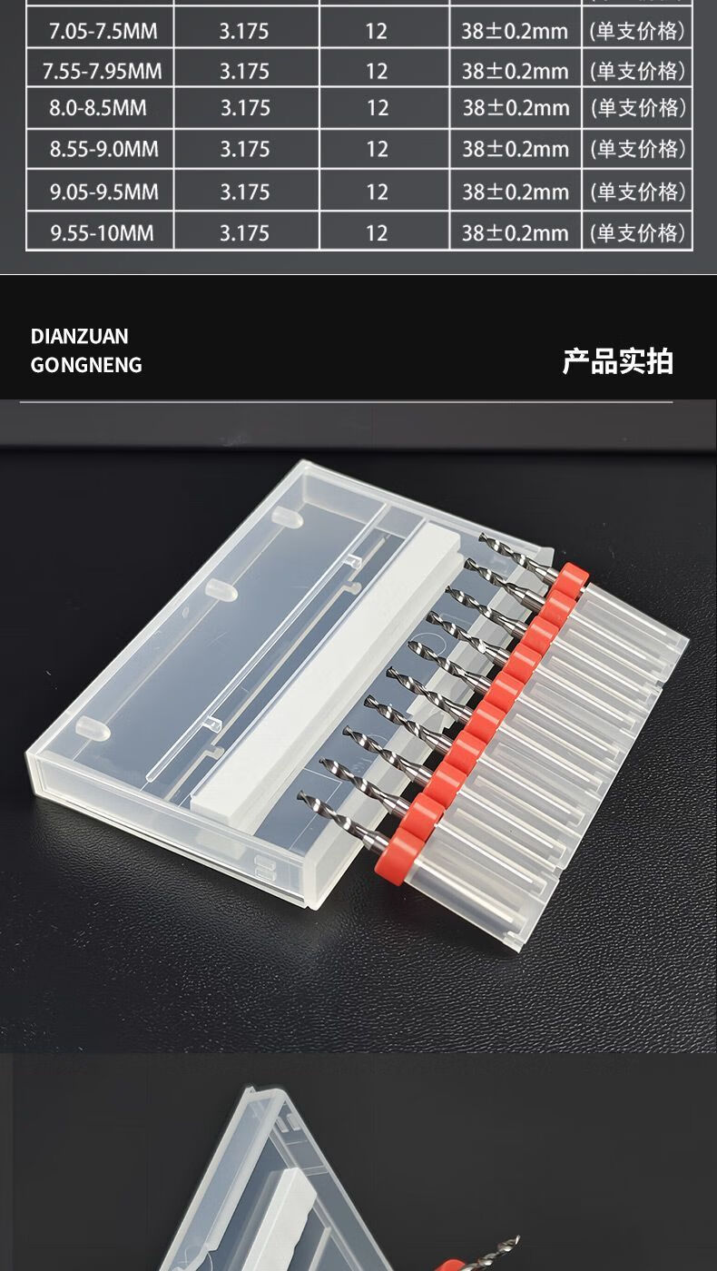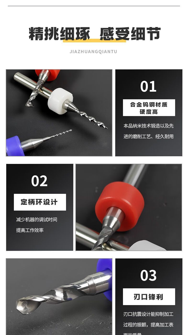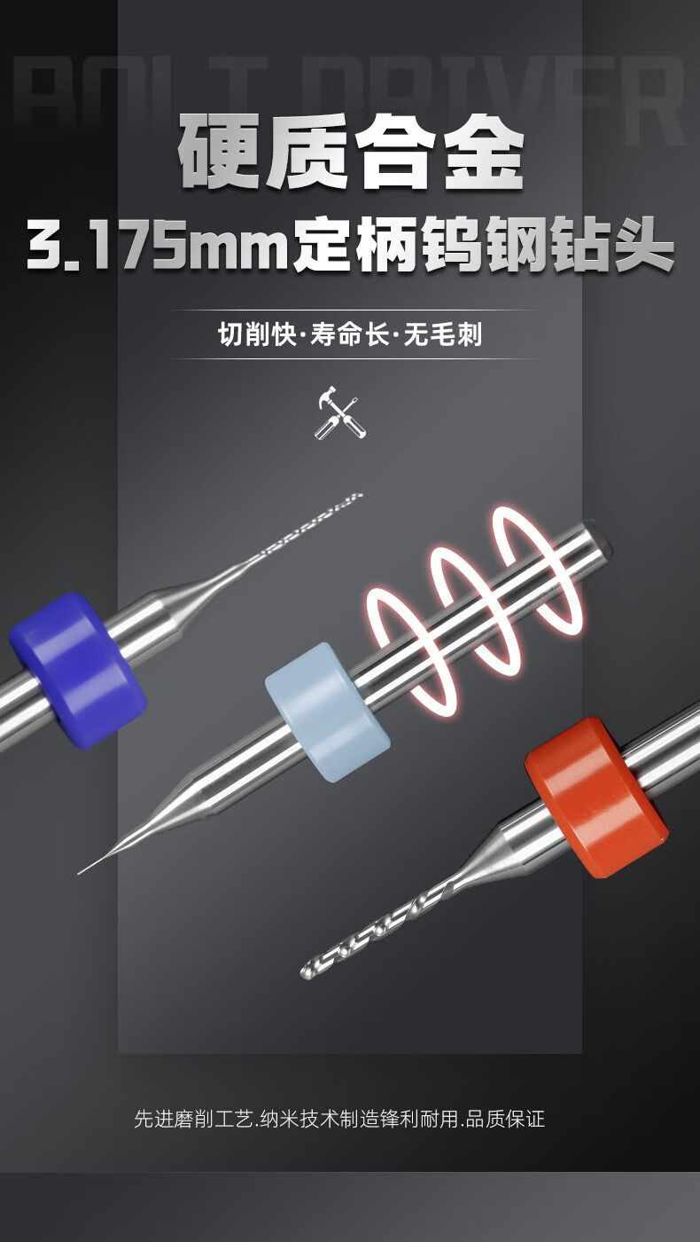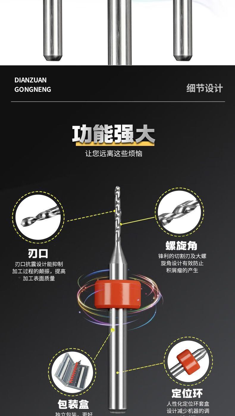 Qinkai PCB twist drill bit small alloy tungsten steel ultra-fine drill bit for drilling jade and cultural toys special fixed handle drill bit set ten pieces set 1.1-2.0mm
