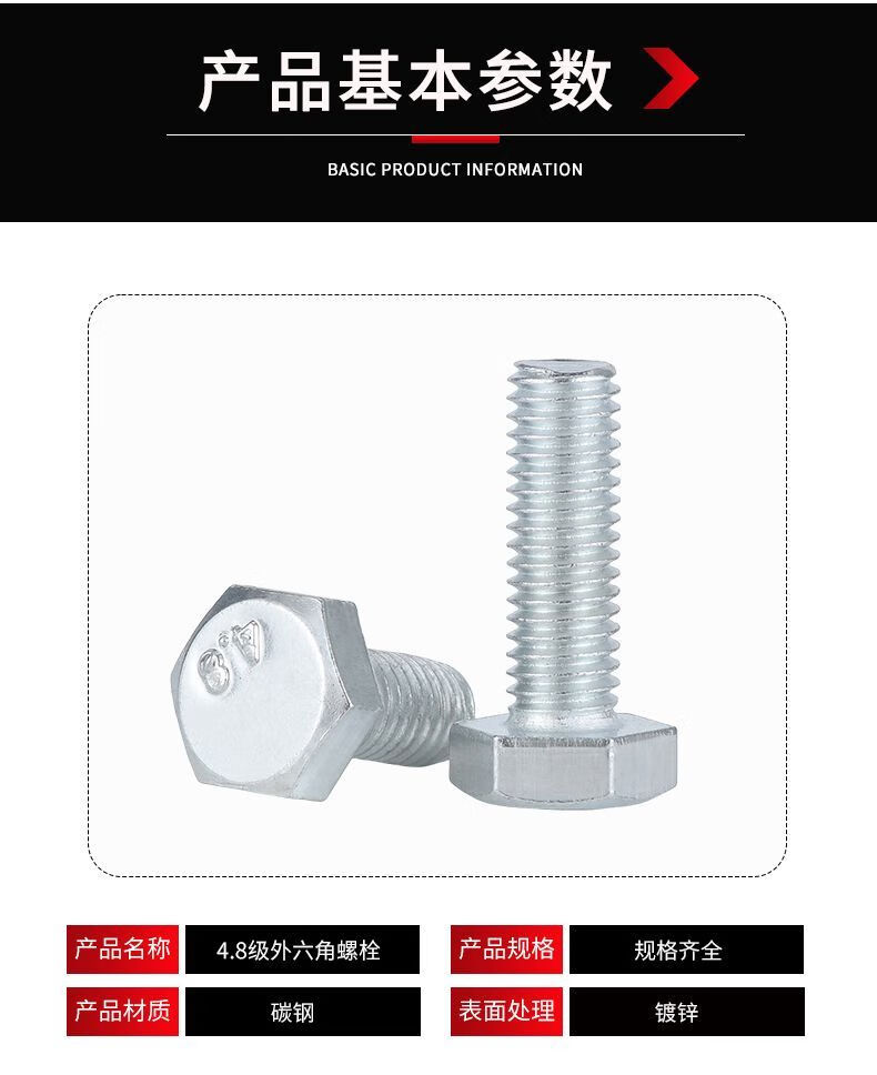 Vinoa 4.8 grade galvanized external hexagonal bolts external hexagonal screws air conditioning bracket screw nut set complete M6M8M20 M18 one box 150