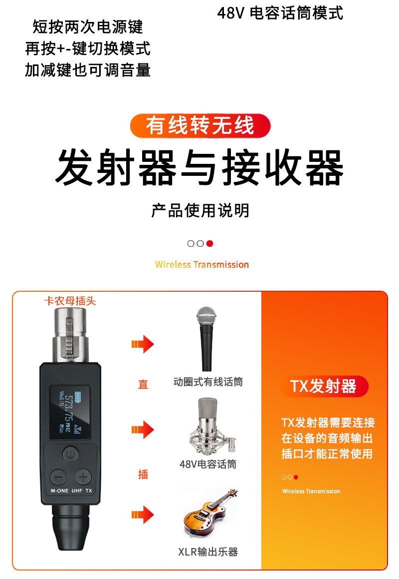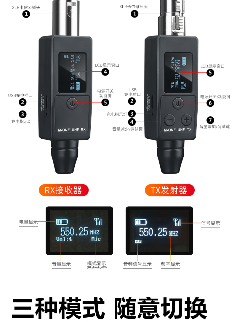 LVVI XLR wireless transceiver UHF ultra-high frequency wired to wireless transmission supports live broadcast sound card microphone microphone professional audio playing and singing speaker mixer one for one (canon mouth one male and one female)
