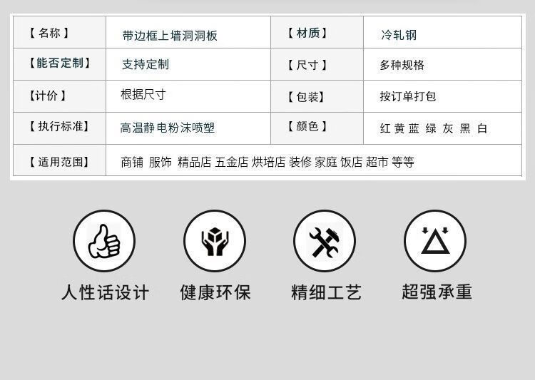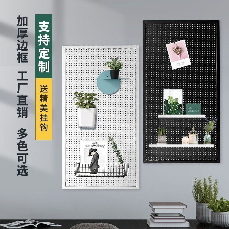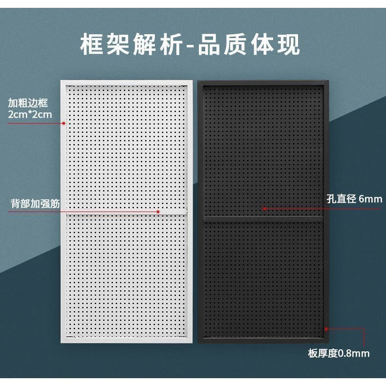 Perforated board with frame, hardware tool display rack, porous hanging board, mobile phone accessories, jewelry, kitchen wall storage rack, black, painted/static 4 layers, please contact customer service for custom sizes