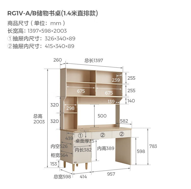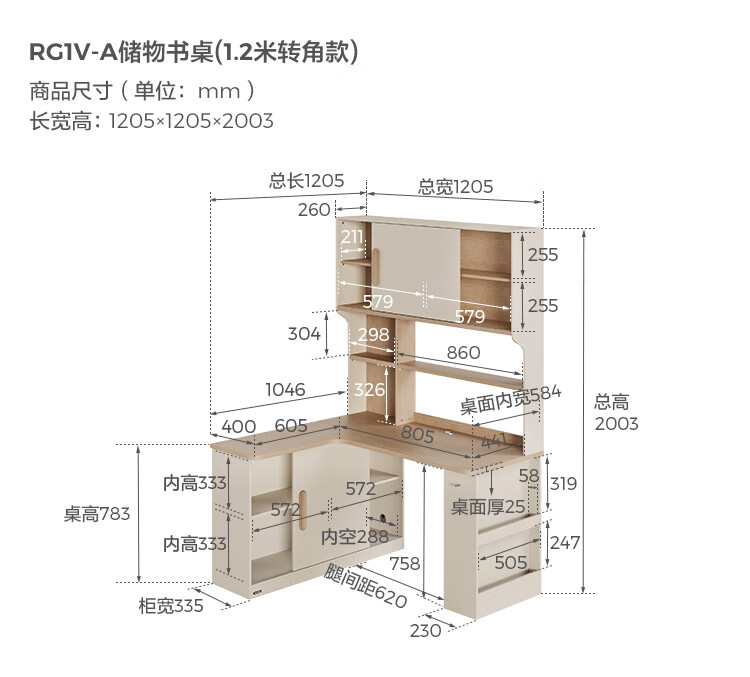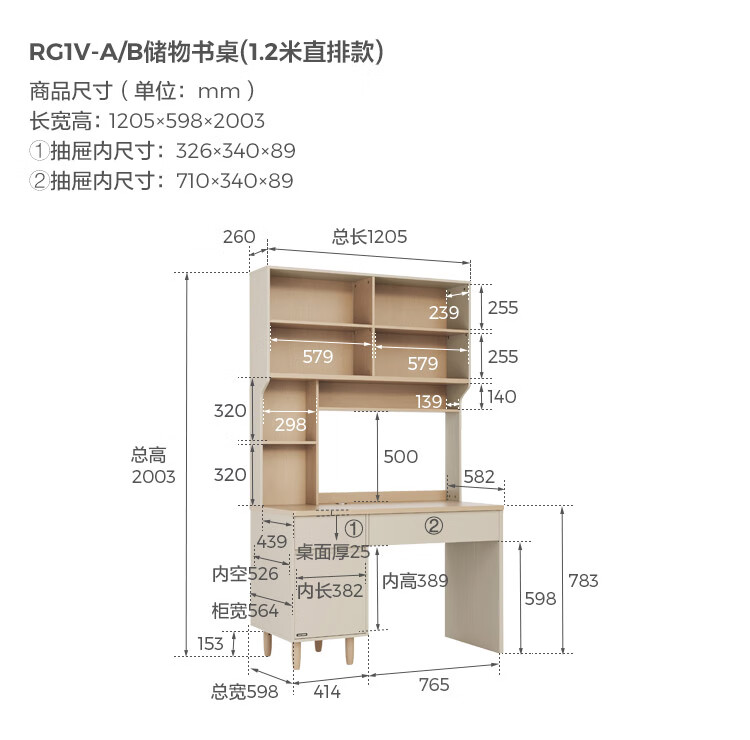 Lin's home desk bookcase bookshelf integrated desk computer desk bedroom home study desk office writing square full series RG1V 1.2m | including upper cabinet straight desk
