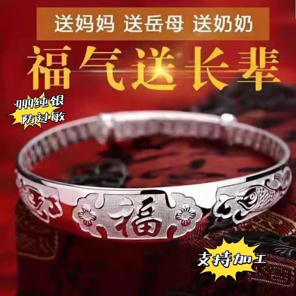 KZD999 sterling silver pure silver bracelet bracelet for women silver bracelet as a gift for mom, grandma and elders Longfengfu sterling silver bracelet 1.88g