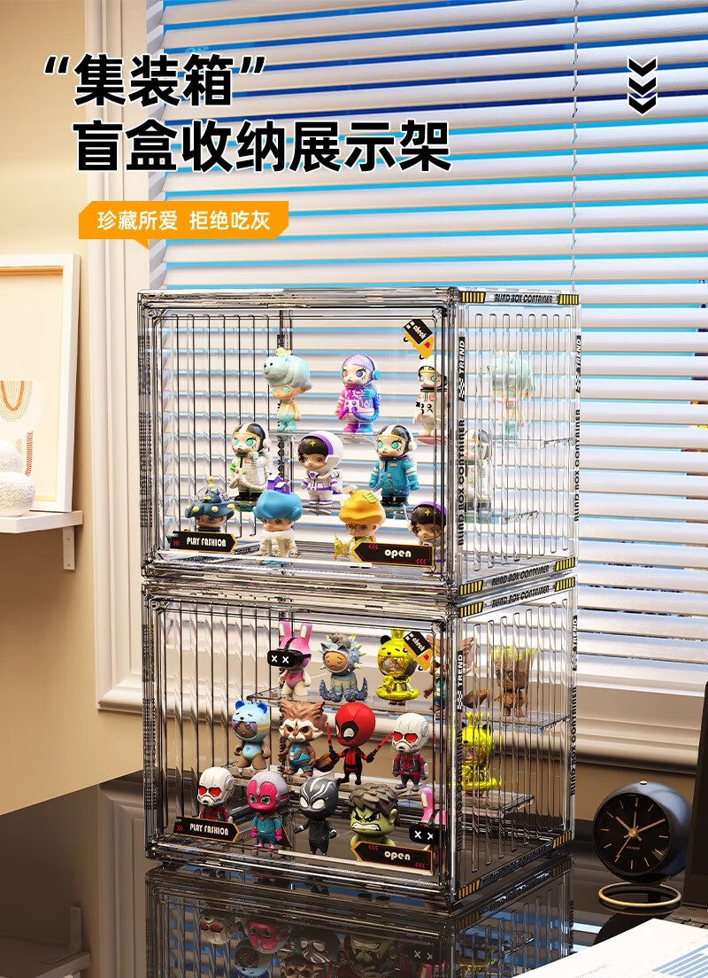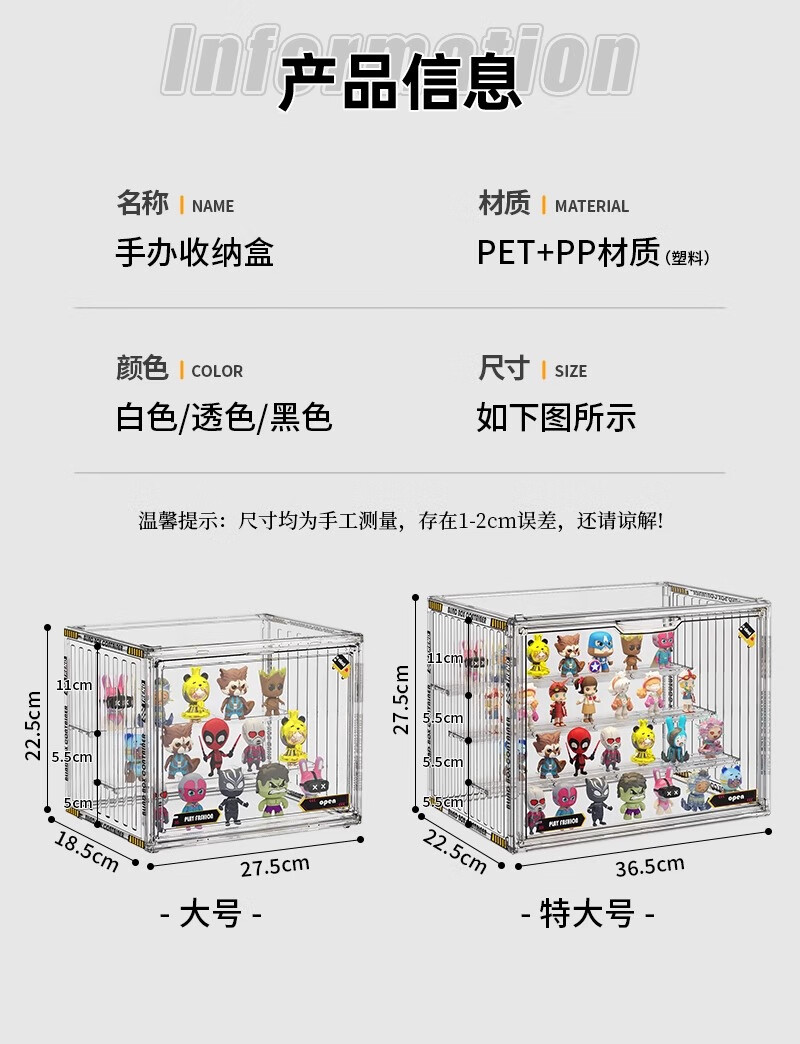 JD Logistics Labubu Bubble Mart Blind Box Display Cabinet Storage Transparent Dustproof Figure Storage Box Transparent - Extra Large - Four Levels Magnetic Opening and Closing/Free Stickers