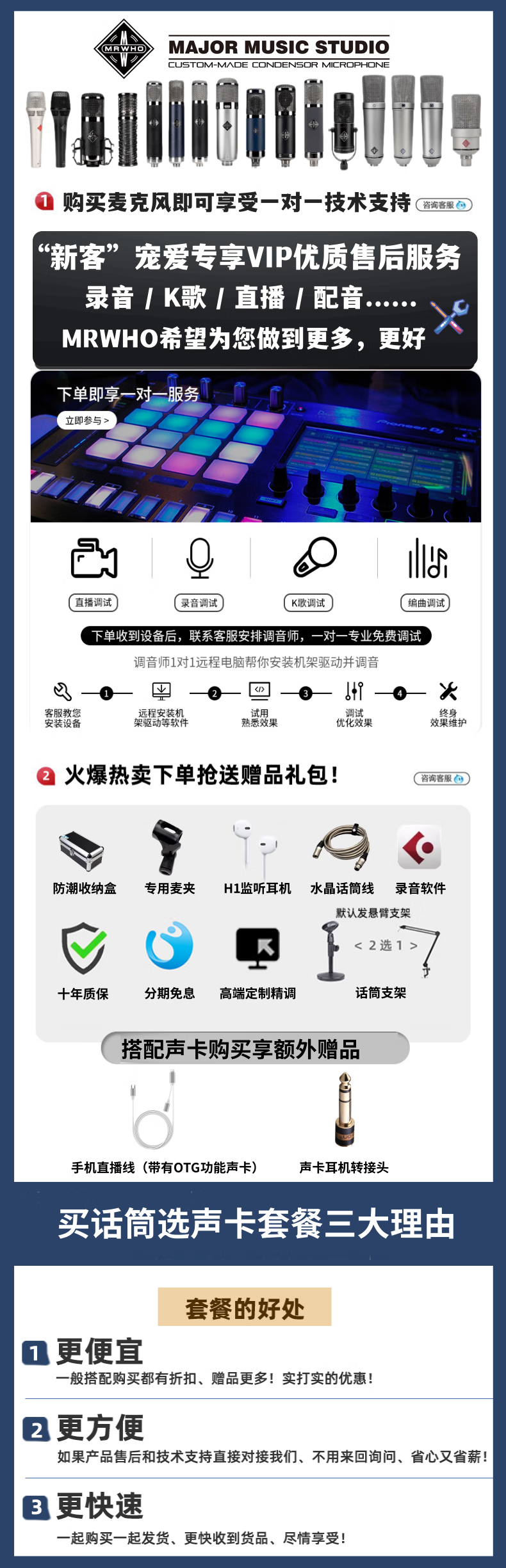 MRWHO cigarette butt 105 large diaphragm handheld condenser microphone Internet celebrity live broadcast equipment complete set of live singing equipment professional singing microphone set sound card recommended by network anchors cigarette butt 105 silver + gifts + fine tuning