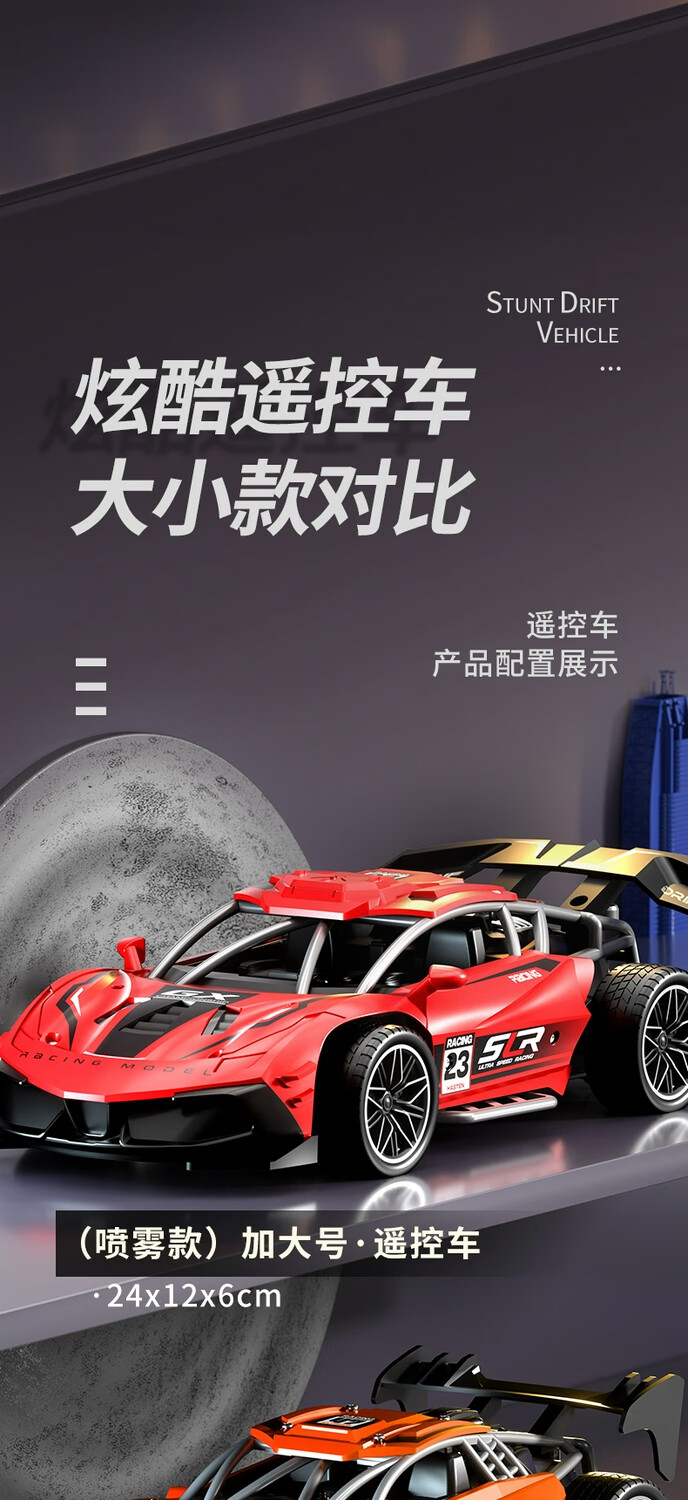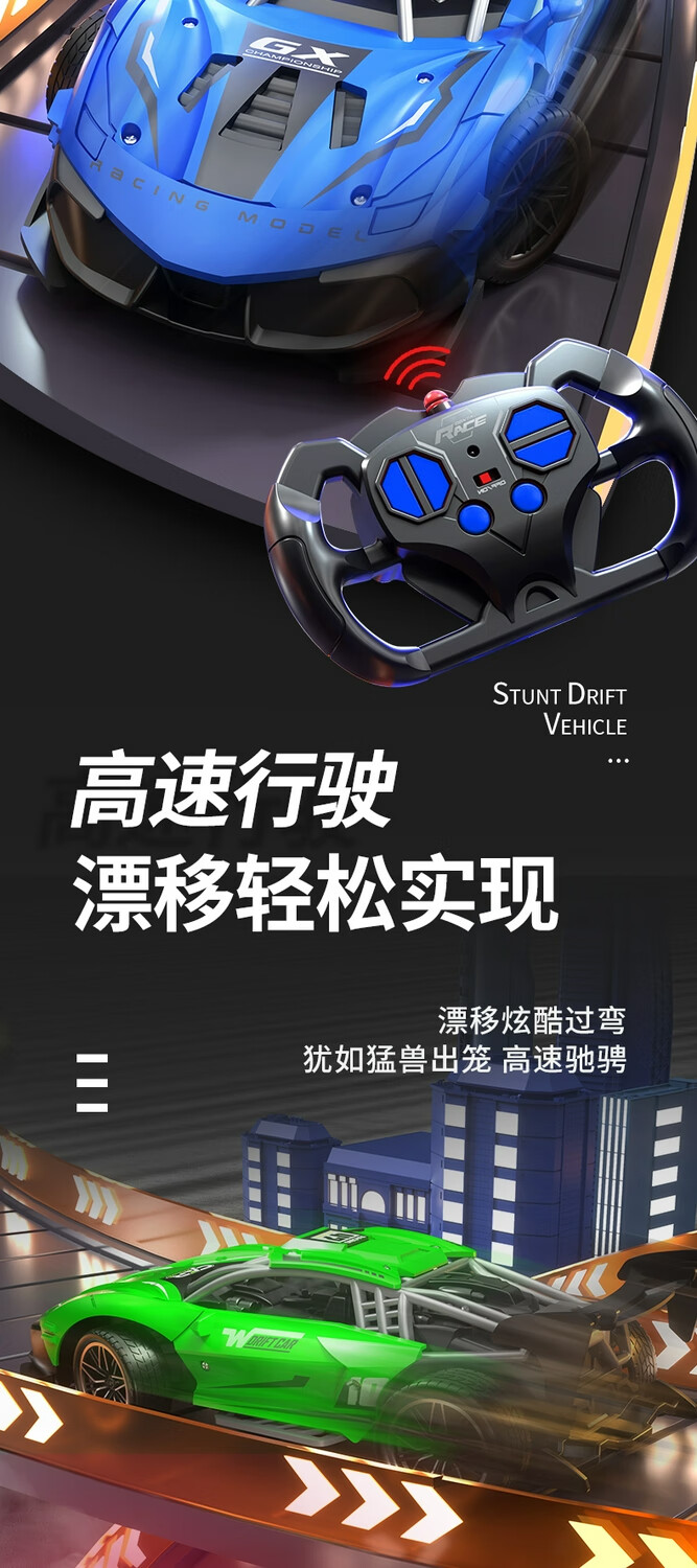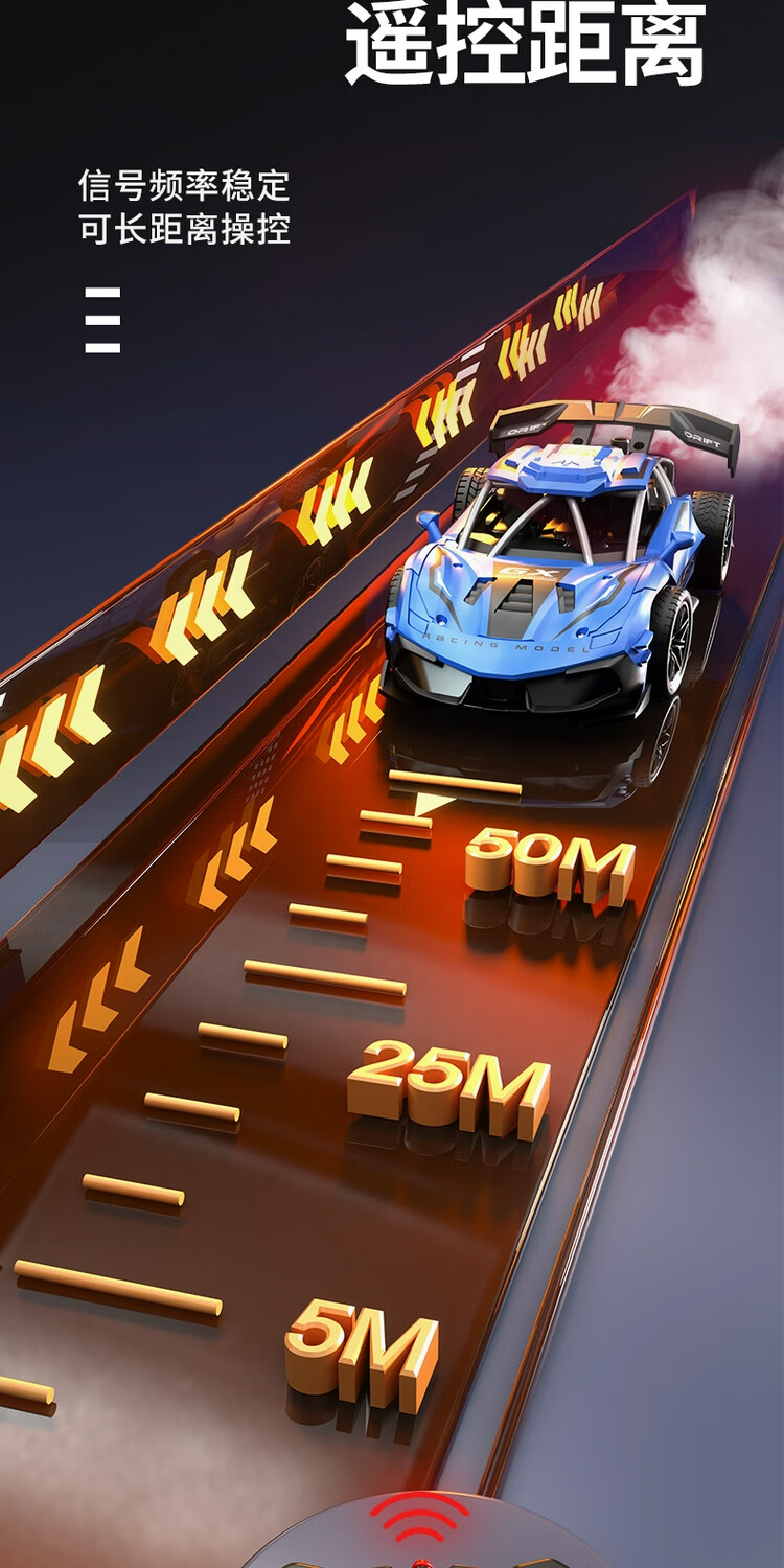 Children's remote control car charging wireless high-speed racing car drifting spray small electric boy toy car model High-speed remote control racing car blue Standard single battery life about 35 minutes Shipping fee + fall