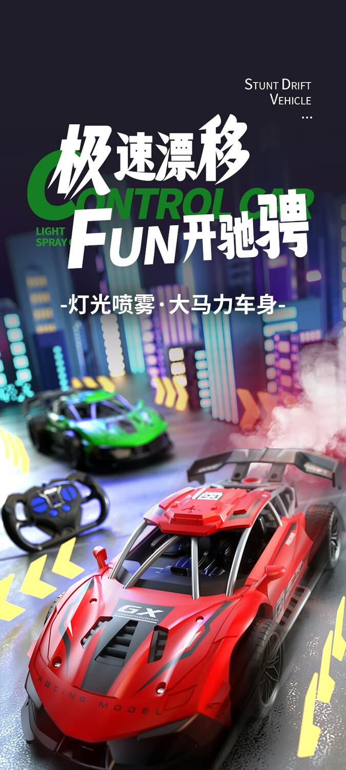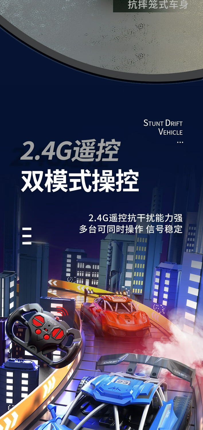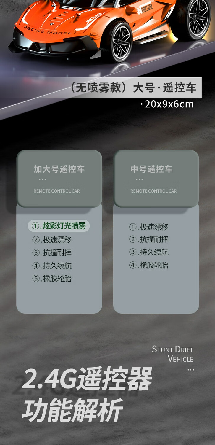 Children's remote control car charging wireless high-speed racing car drifting spray small electric boy toy car model High-speed remote control racing car blue Standard single battery life about 35 minutes Shipping fee + fall