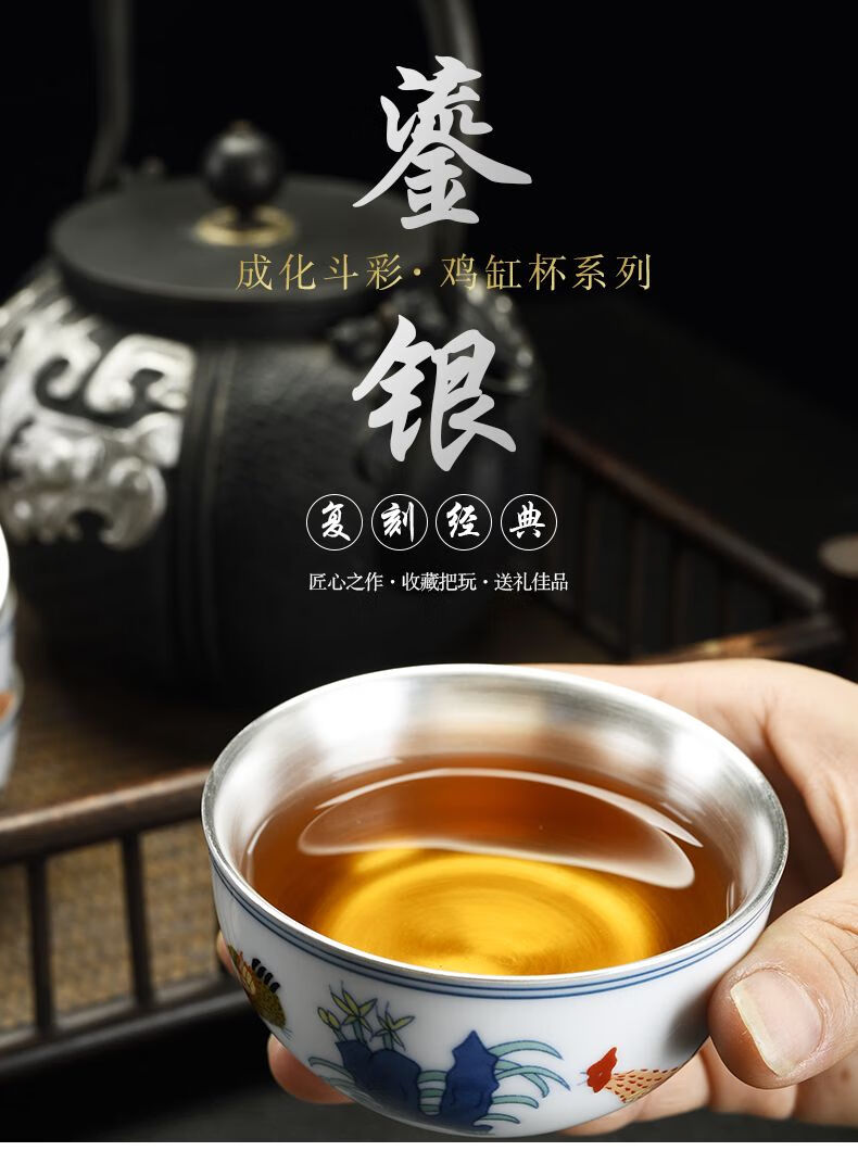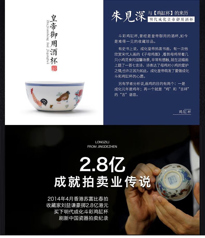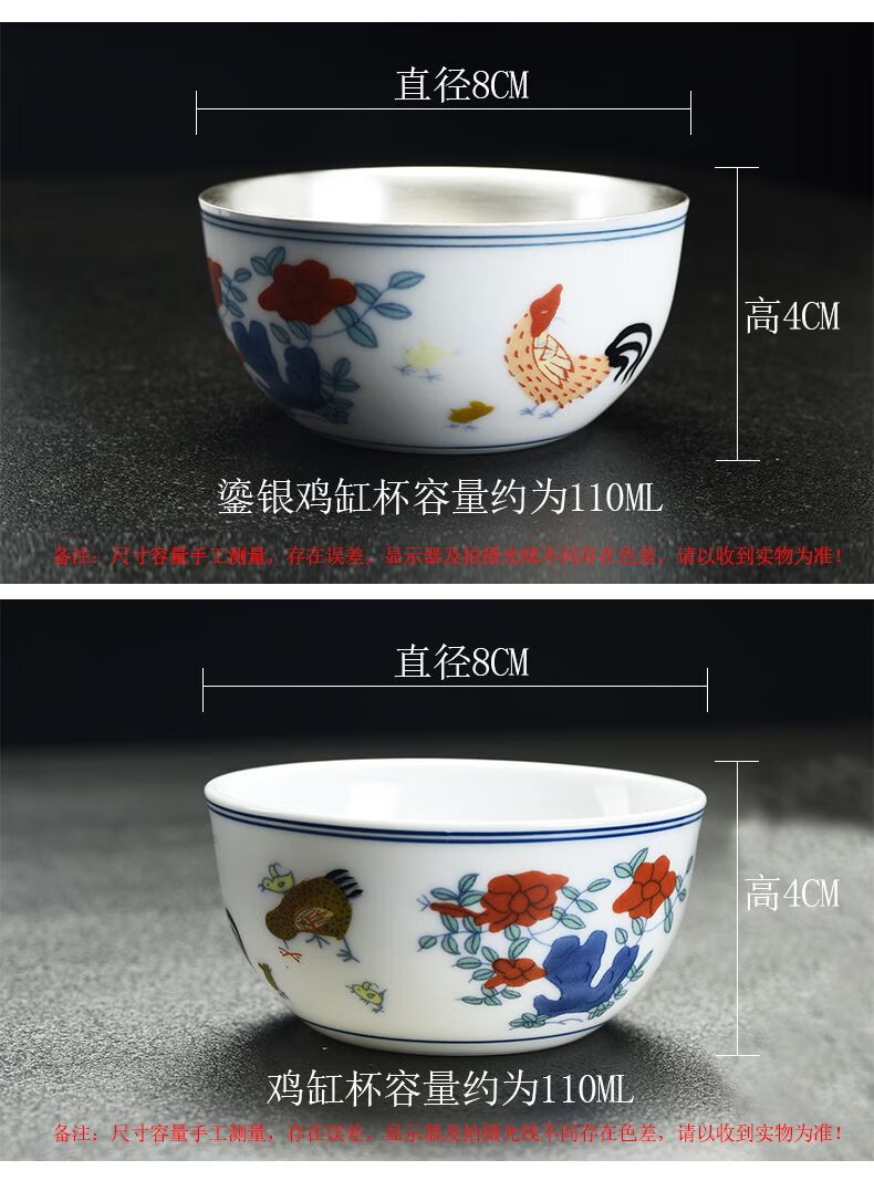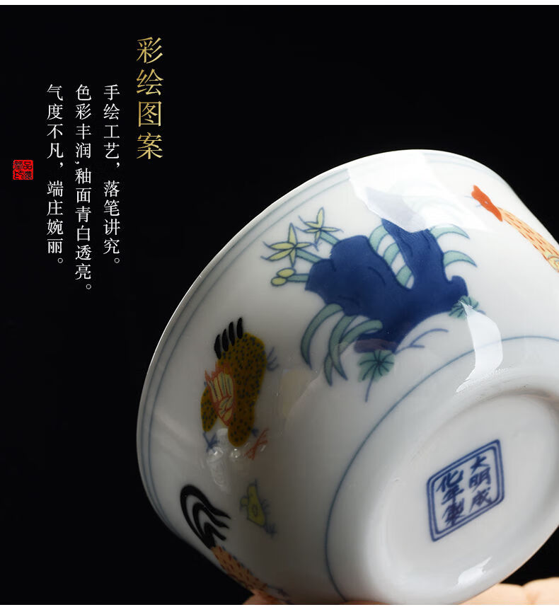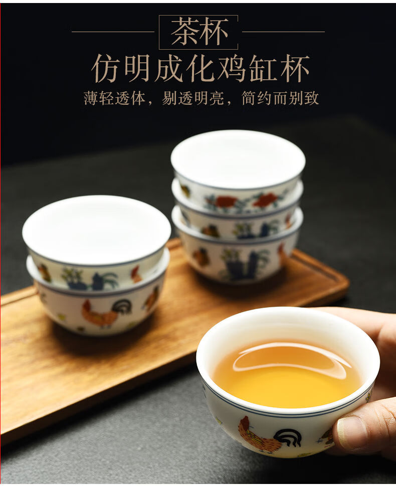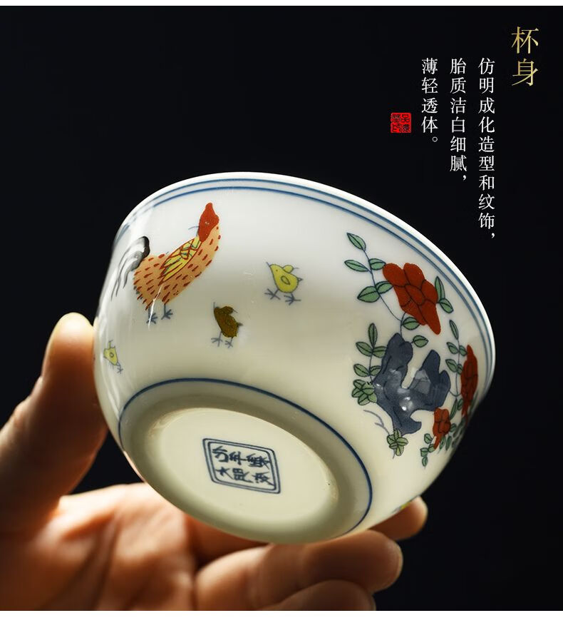 Chicken Crock Cup Daming Chenghua Doucai Antique Kung Fu Tea Cup Tea Set Ceramic Glaze Color Tea Cup Master Single Cup Large Chicken Crock Cup (Single Cup) 110ml