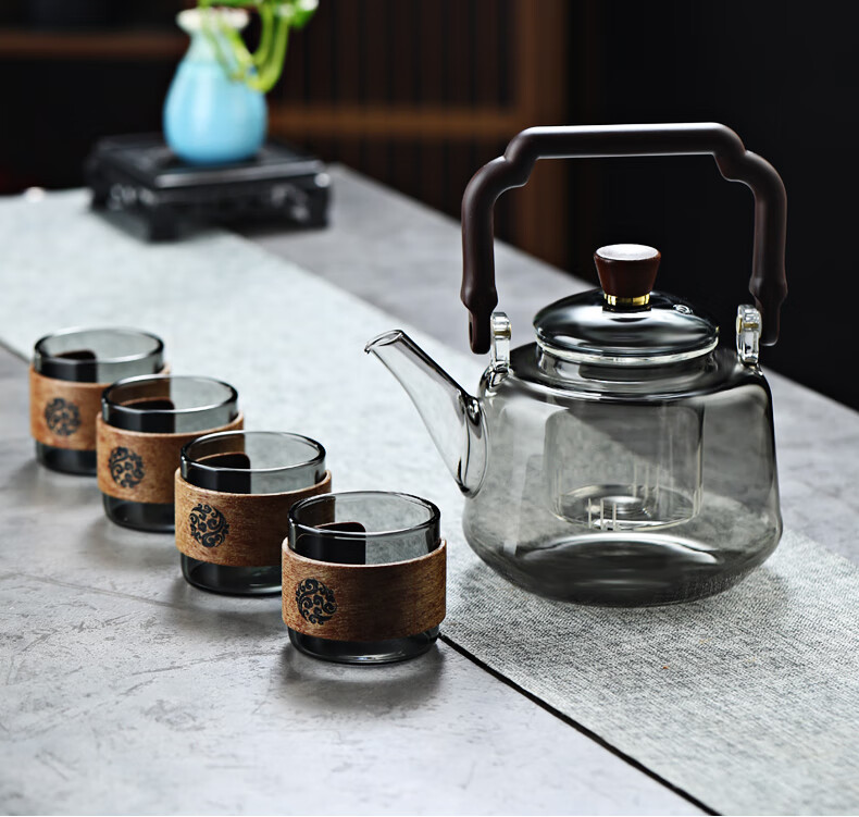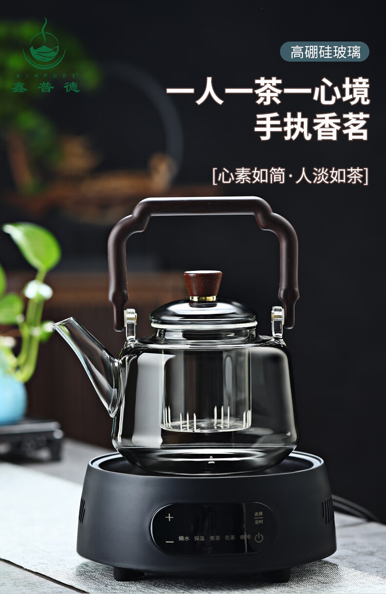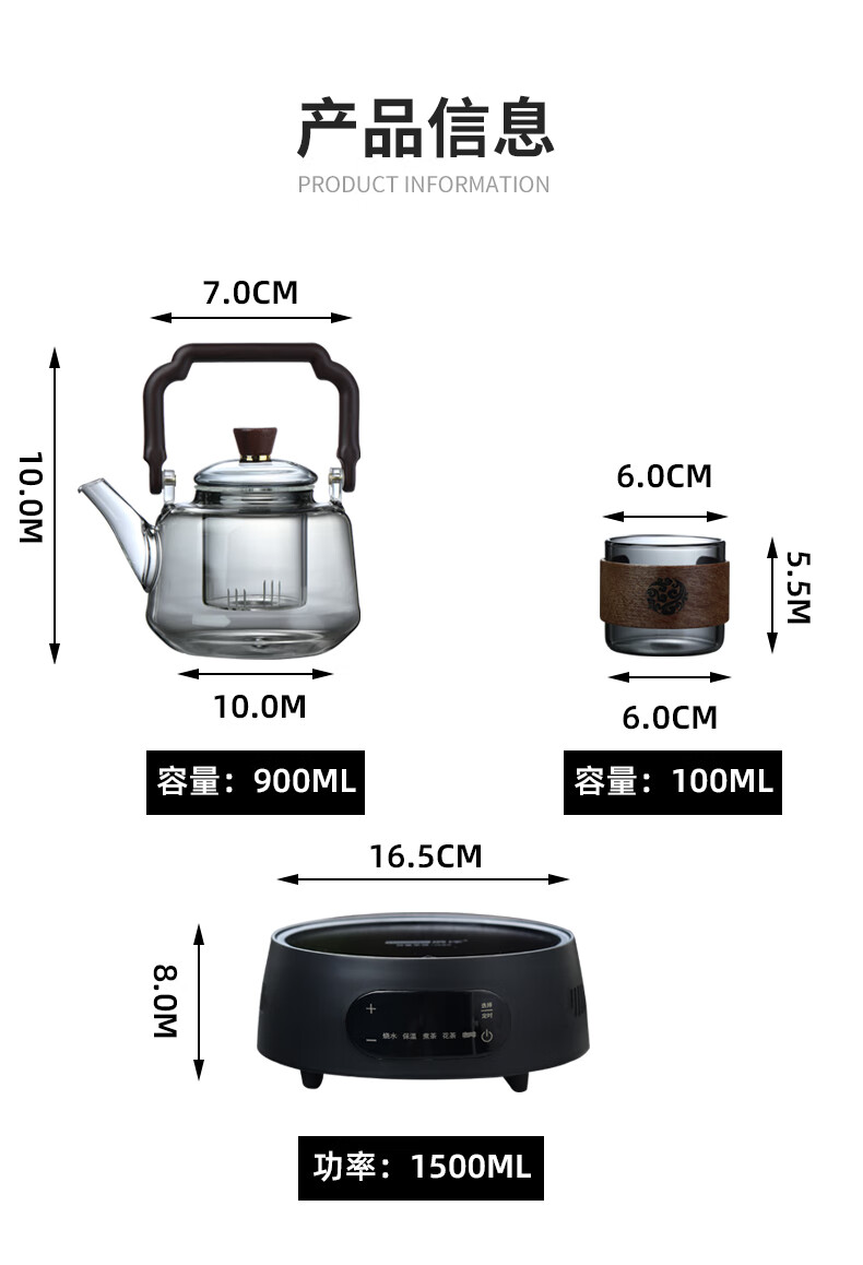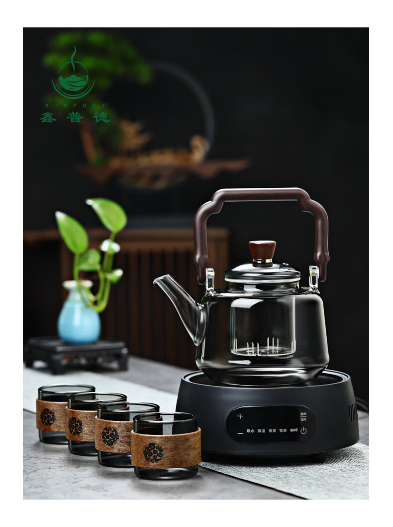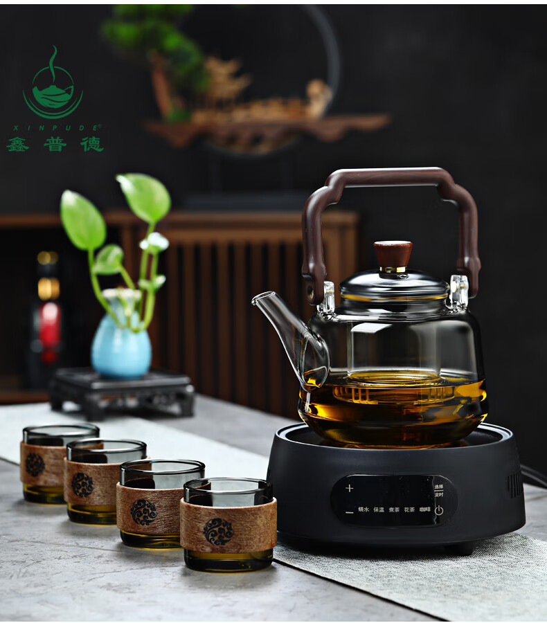 Electric ceramic stove tea making set, high temperature resistant glass pot, tea set, high temperature resistant flower and fruit tea health teapot, multi-purpose stove, kettle and cup set (excluding tea tray)