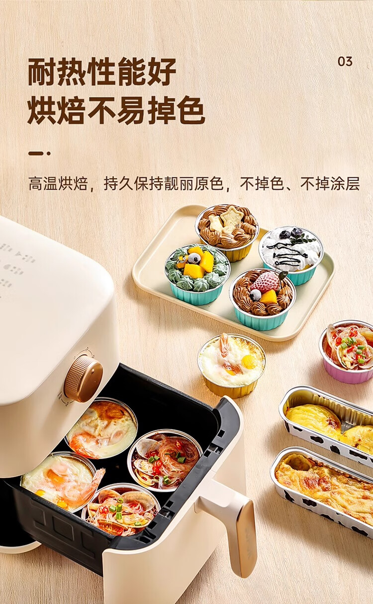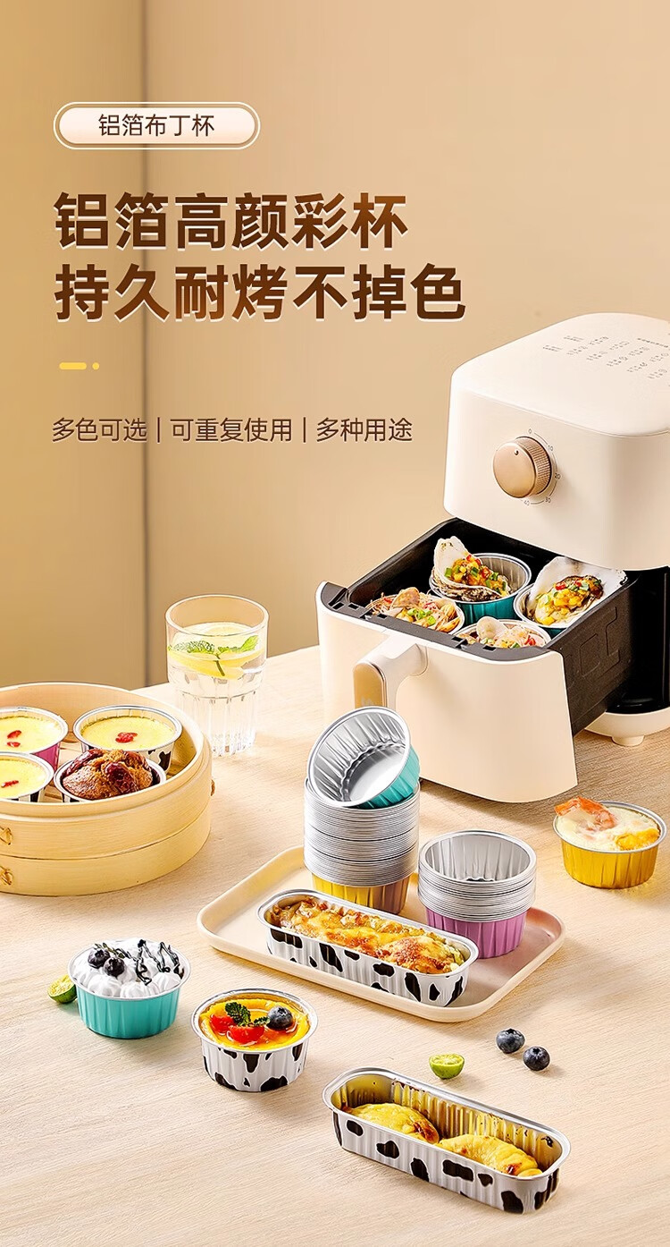 Best selling on the whole network, tin foil bowl, frying pan, egg tart tray, baking household mold box, reusable oven steamed cake cup, 30 extra thick mixed colors (no lid spoon)