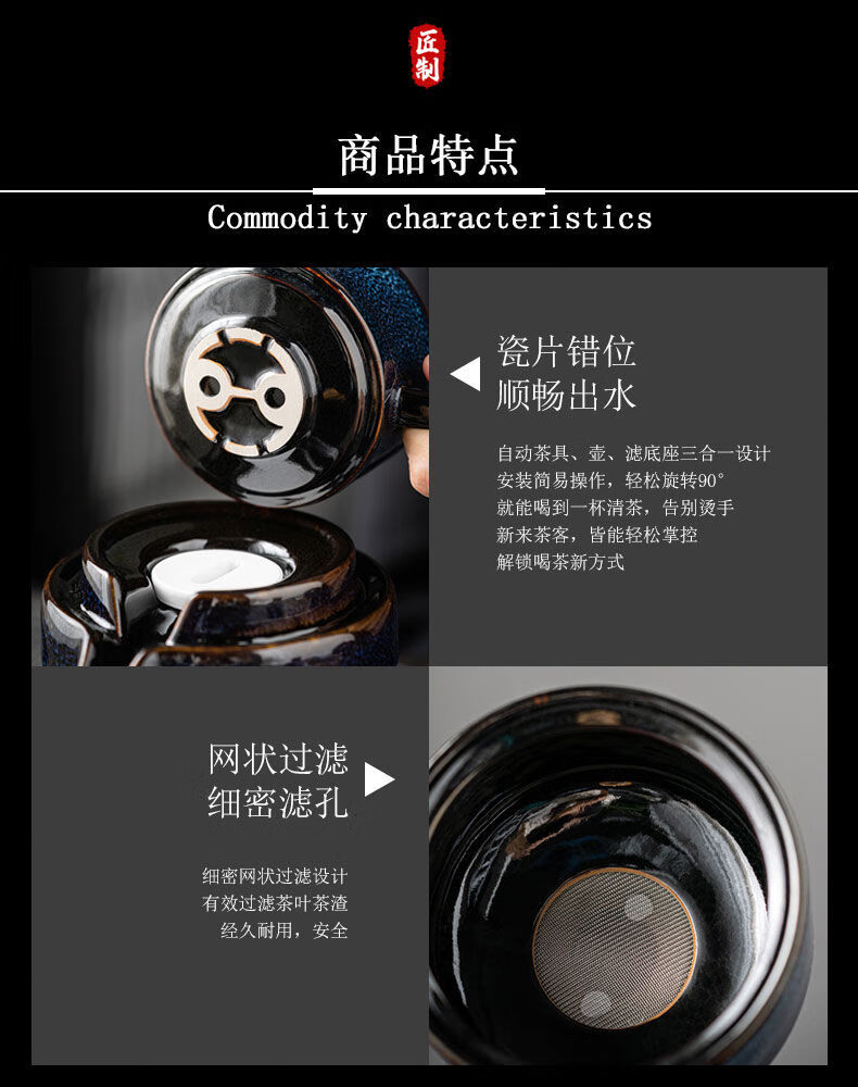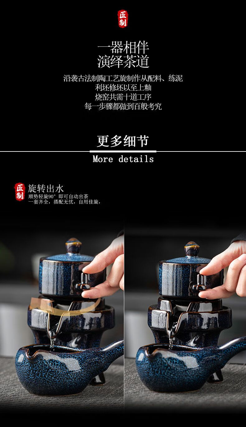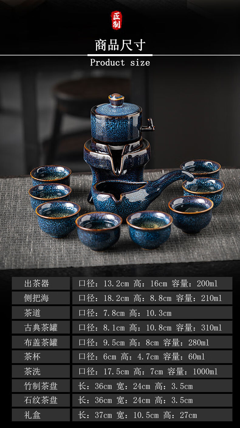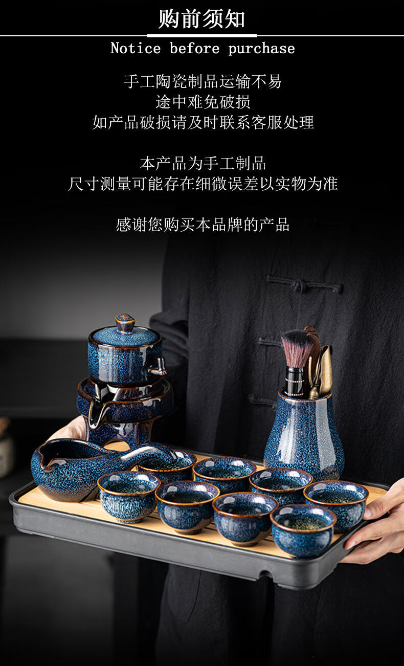 High-end light luxury automatic Kung Fu tea set for lazy people at home. Teapot gift box for lazy people. One pot, six cups, one sea + gift box. Momo cloak automatic tea set. Kiln turns blue.