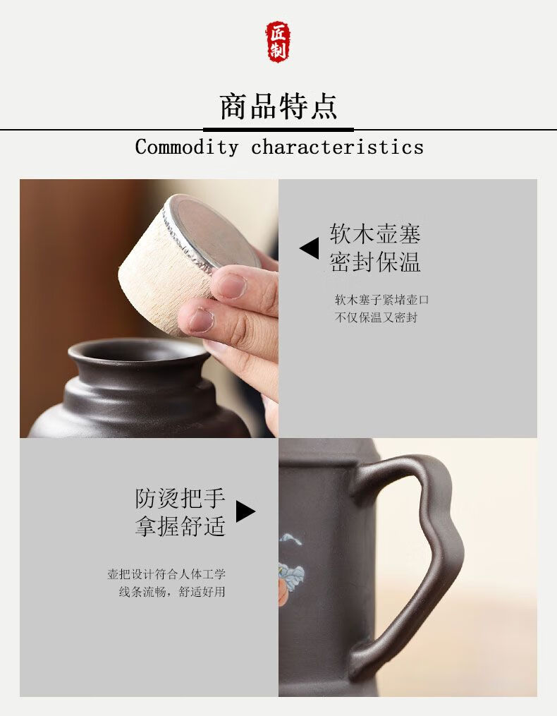 Chinese retro old-fashioned purple clay small thermos pot for household leisure tea making ceramic teapot tea cup portable packaging purple clay small thermos