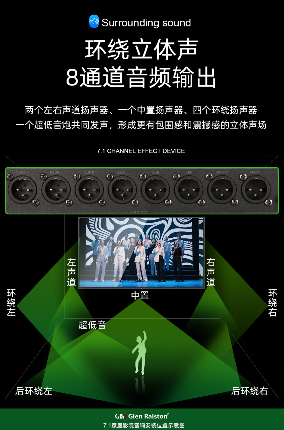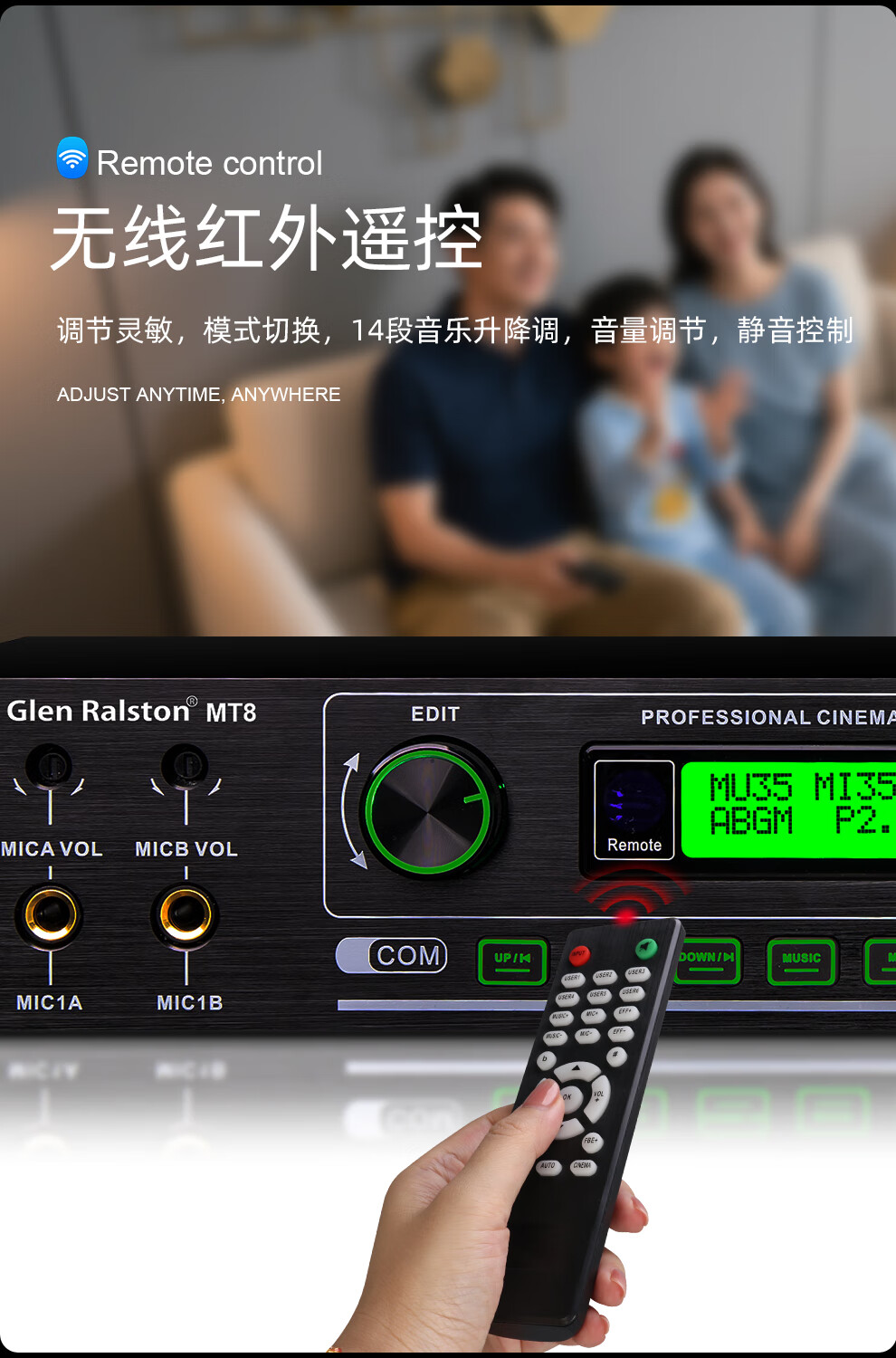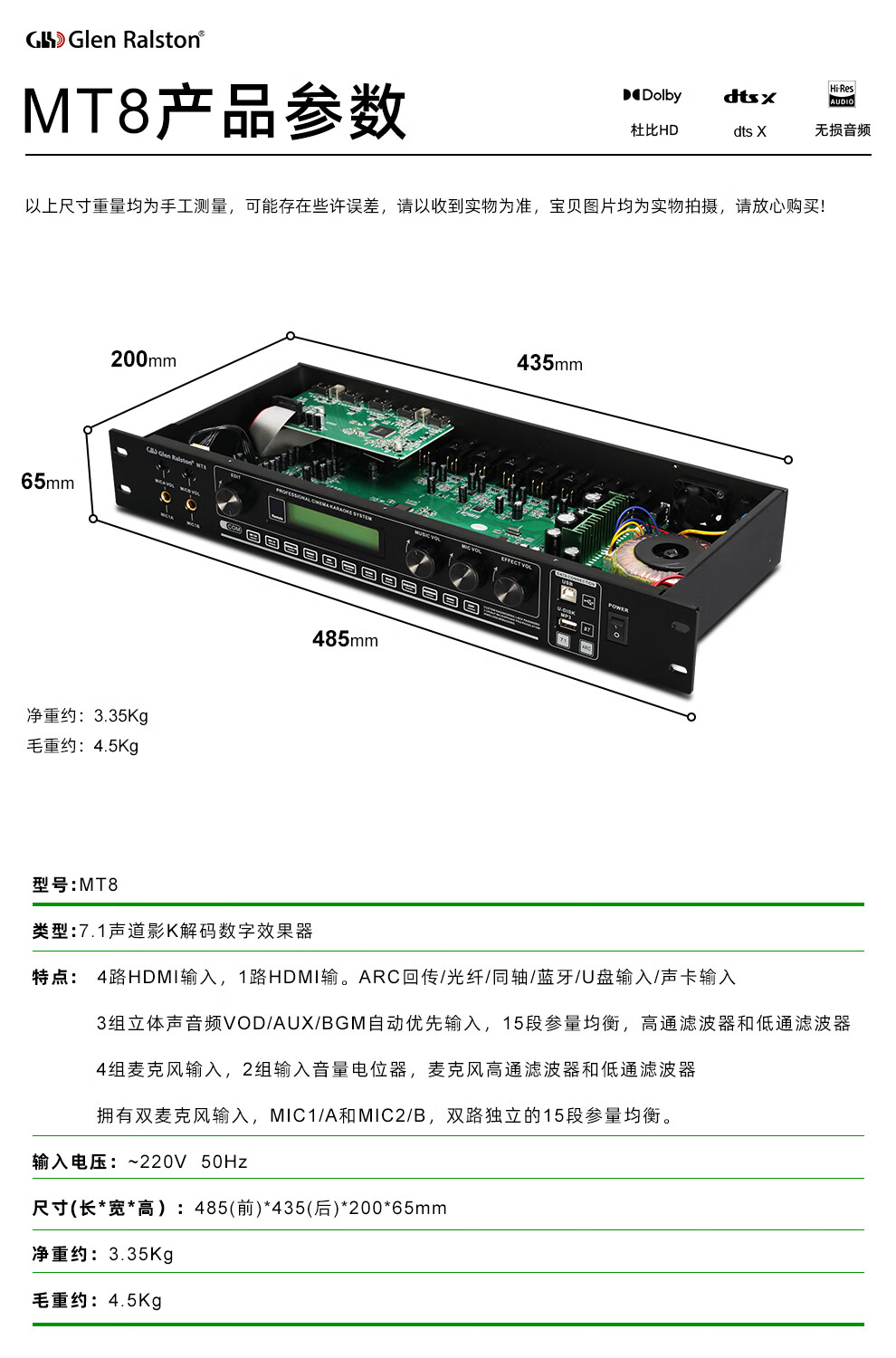 Glenston MT8 professional 7.1-channel digital effector HDMI audio and video home audio and video surround sound decoder Dolby HDdts audio Blu-ray Bluetooth U disk anti-howling MT8 (7.1-channel video K decoding digital effector)