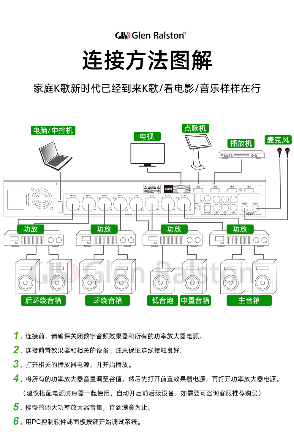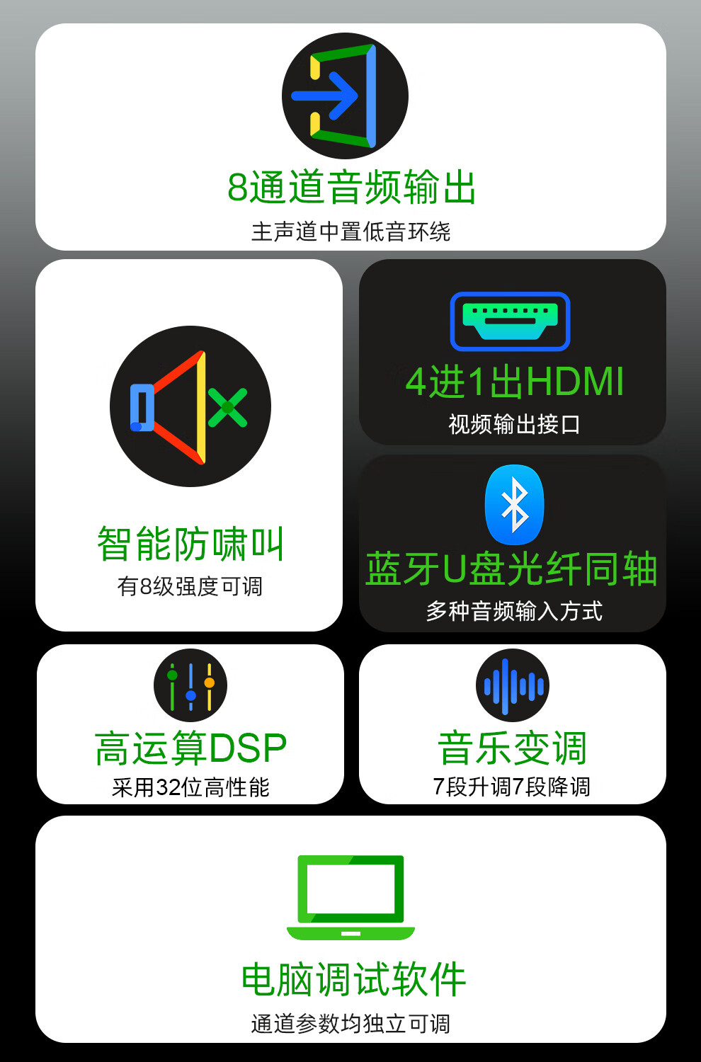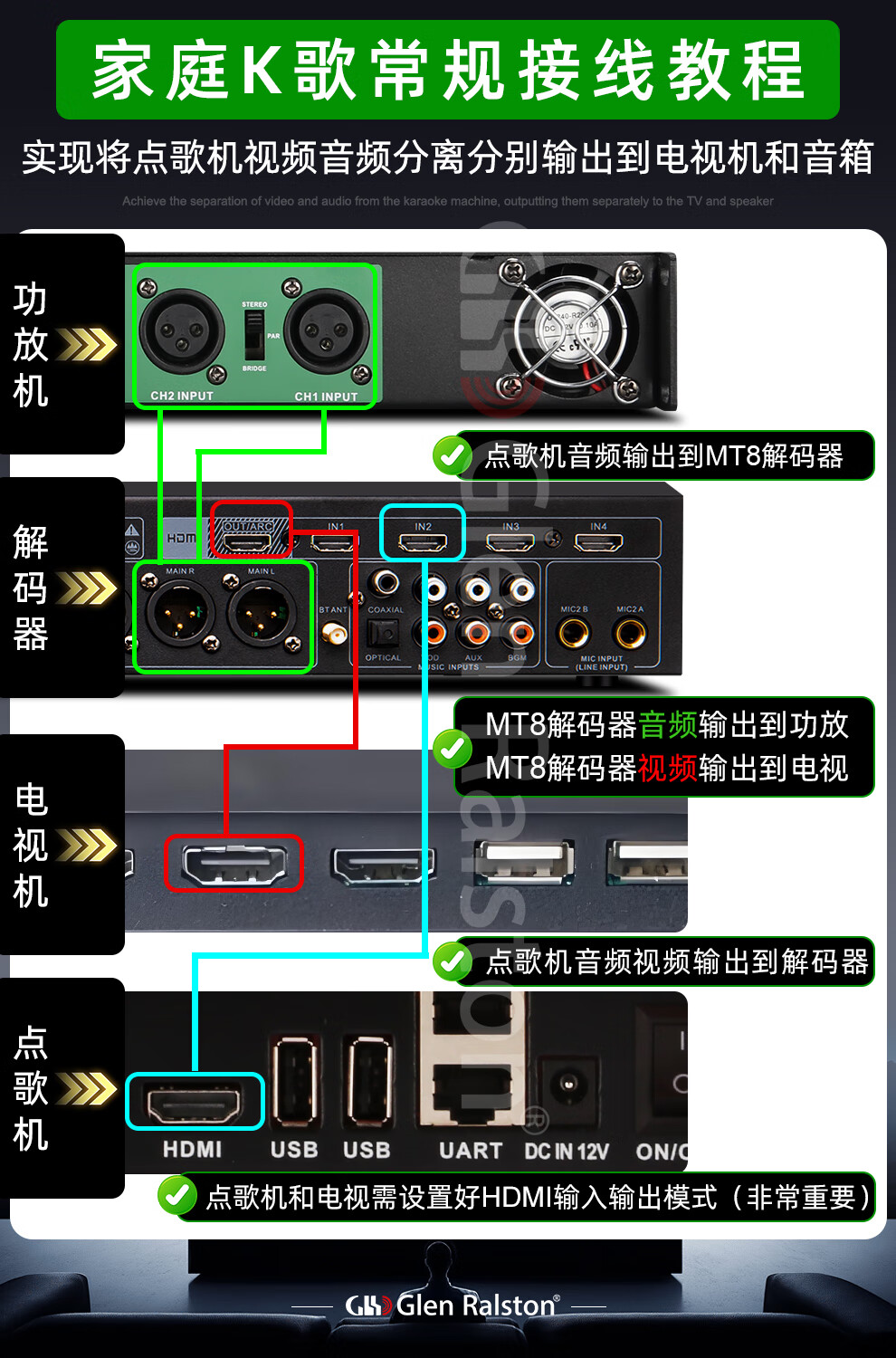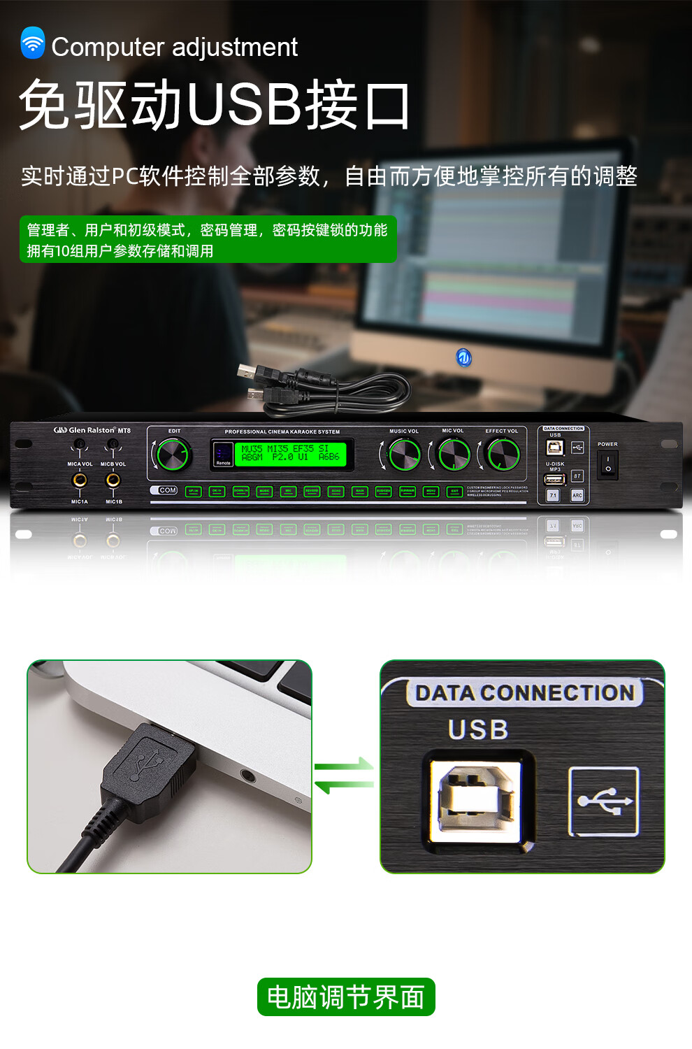 Glenston MT8 professional 7.1-channel digital effector HDMI audio and video home audio and video surround sound decoder Dolby HDdts audio Blu-ray Bluetooth U disk anti-howling MT8 (7.1-channel video K decoding digital effector)