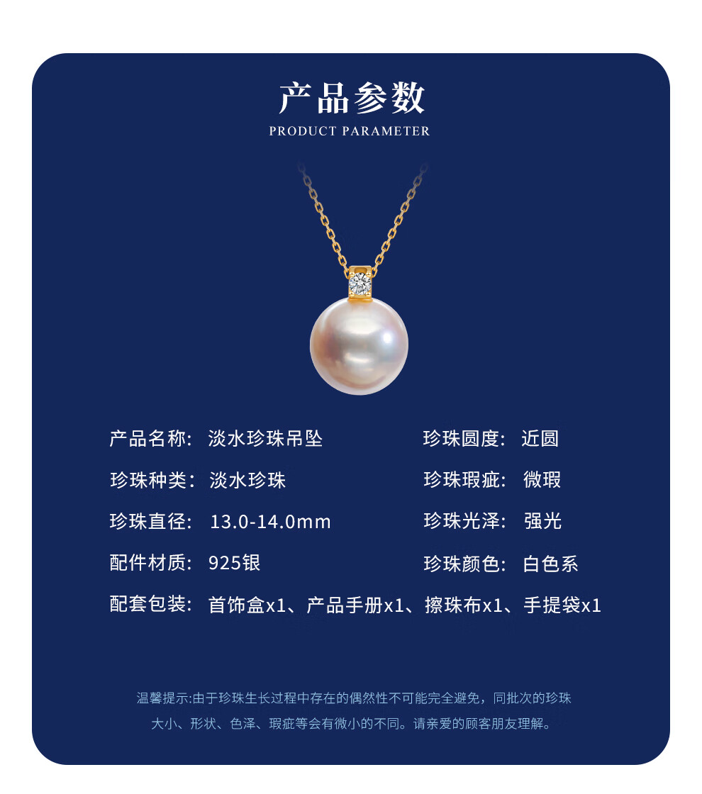 Nanzhu Palace Princess Diana's 925 silver freshwater pearl pendant single round female 925 silver freshwater pearl pendant_fashionable and versatile 13-14mm