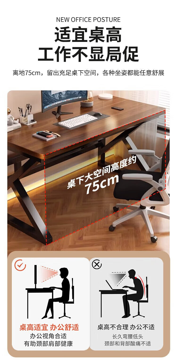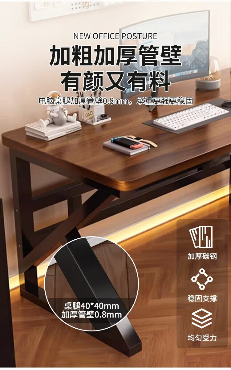 Huixun Jingdong's own brand computer desk study desk e-sports table home desktop desk long table 120*60CM thickened solid wood core classical walnut
