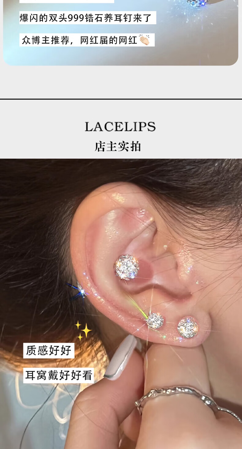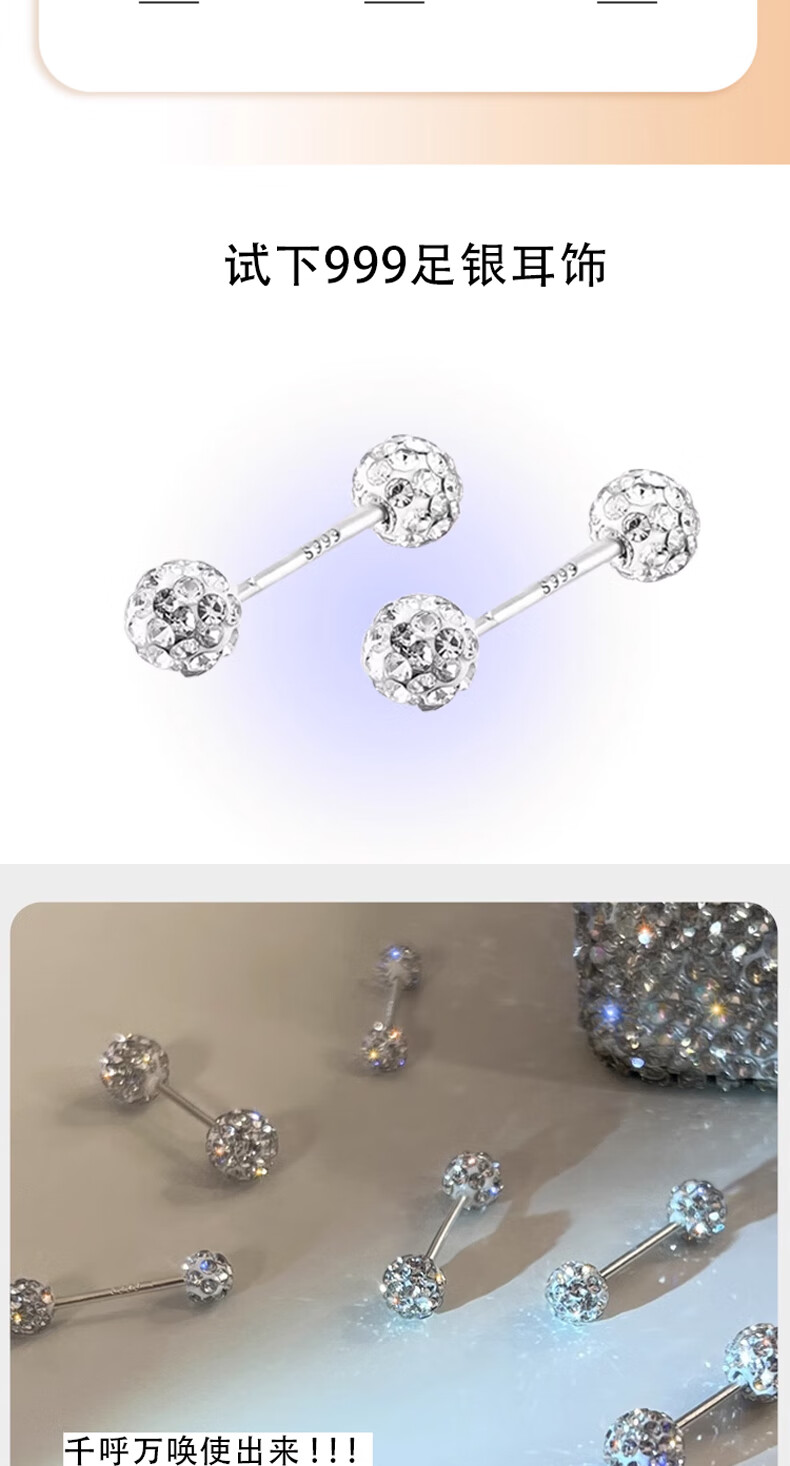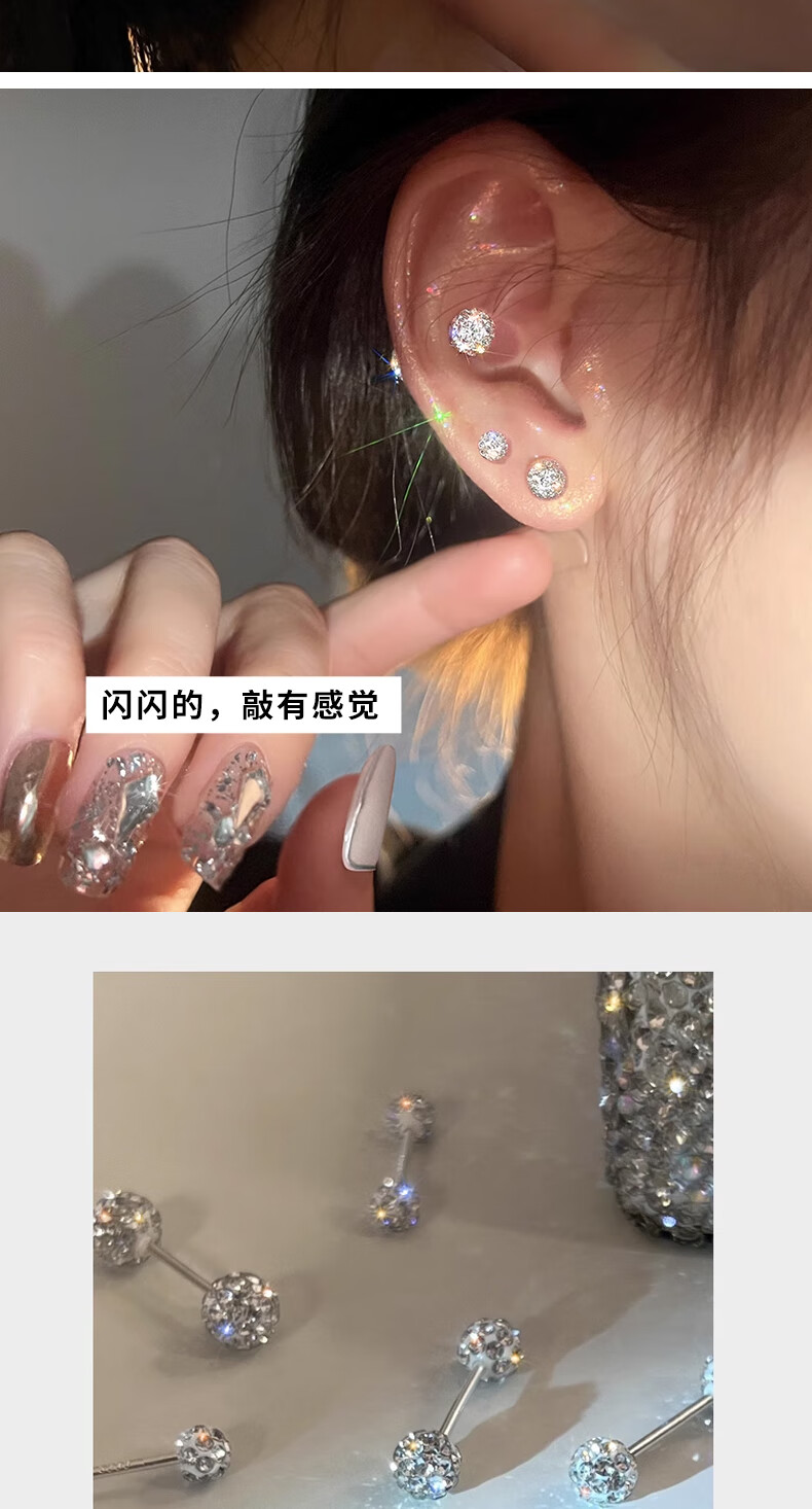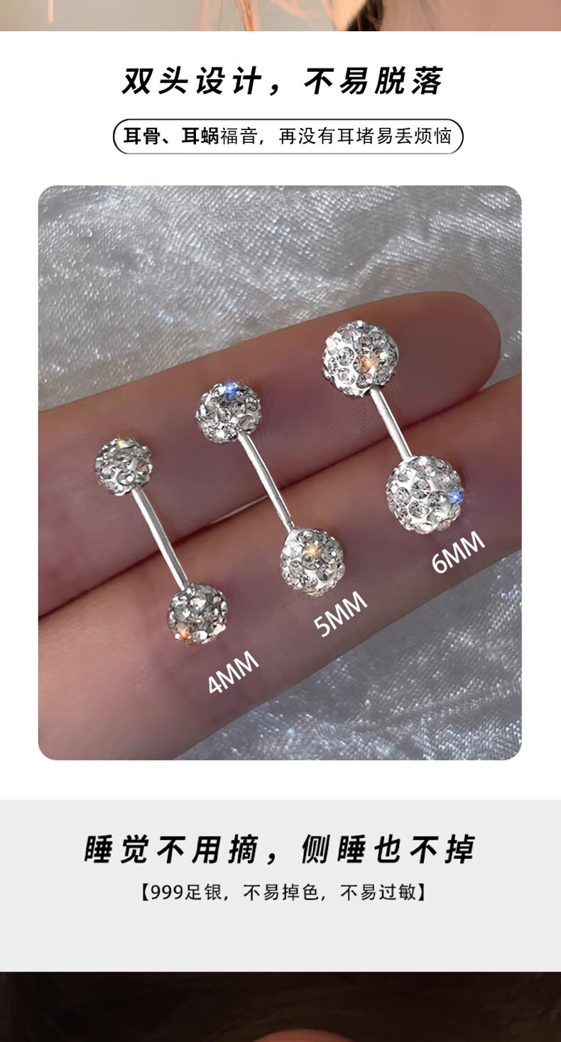 Bai Qixin earrings, ear bones, sterling silver 999 cochlear screws, sleep-free ear sticks, high-end fashionable jewelry for girls, ins 5mm 999 pure silver, one pair