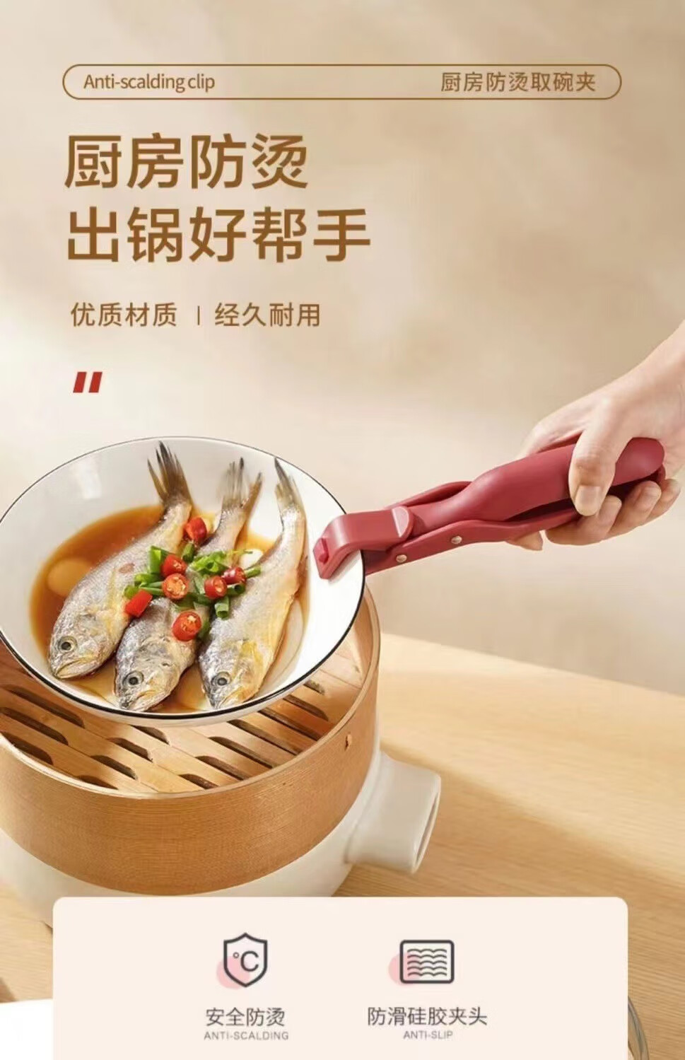 Household anti-scalding dish clip, kitchen steamer, non-slip insulated plate lifter, hand guard, labor-saving bowl clip, bowl clip (1 pack, random color)