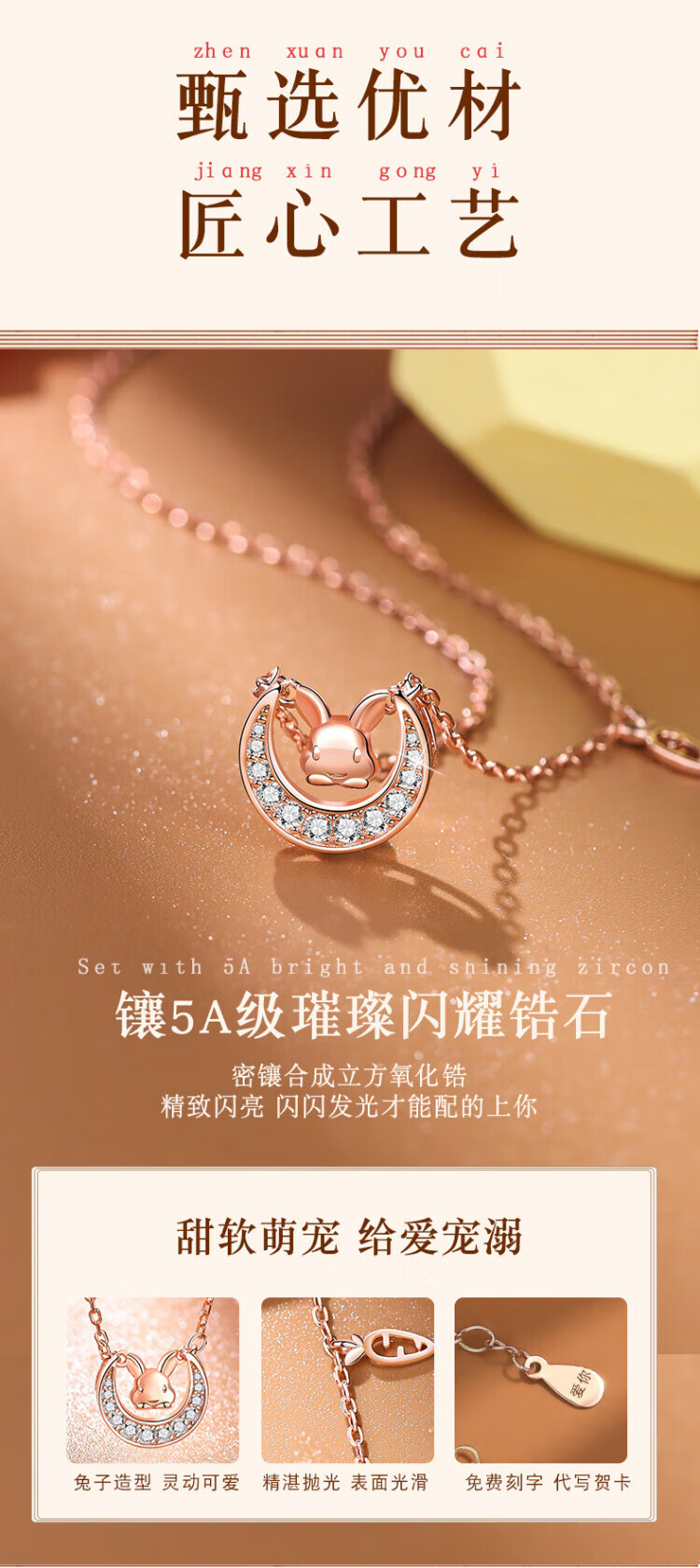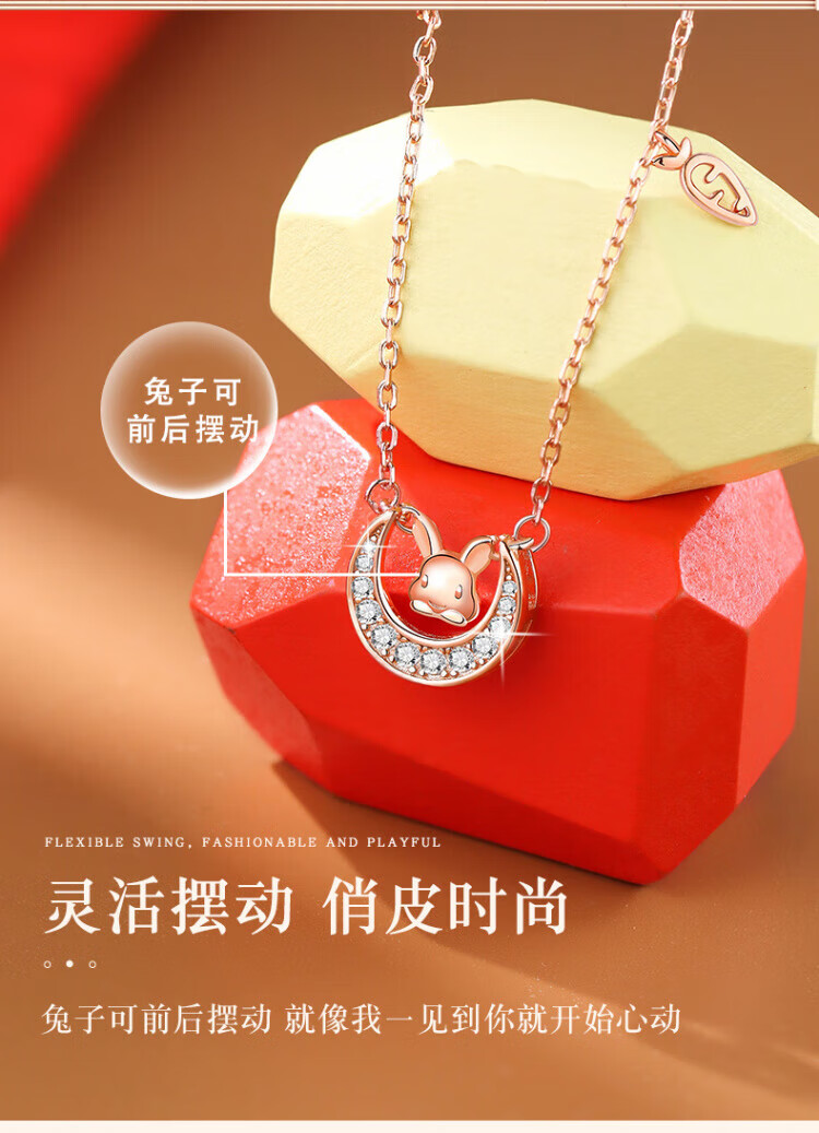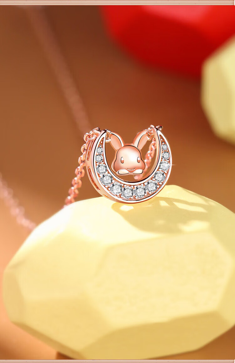 Farcoko Moon Bunny Necklace for Women 2023 New Light Luxury Zodiac Sign Clavicle Chain Gift for Girlfriend Cute Rabbit Necklace