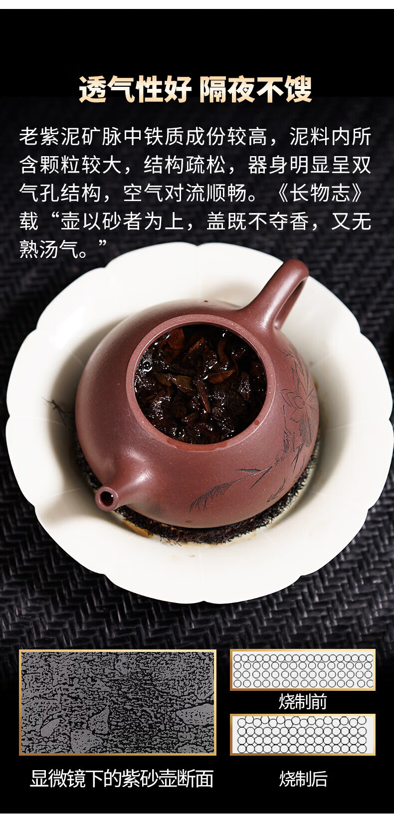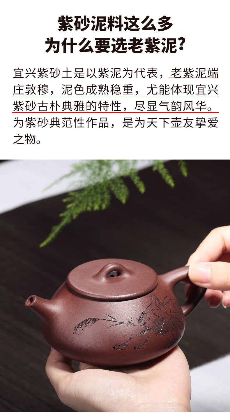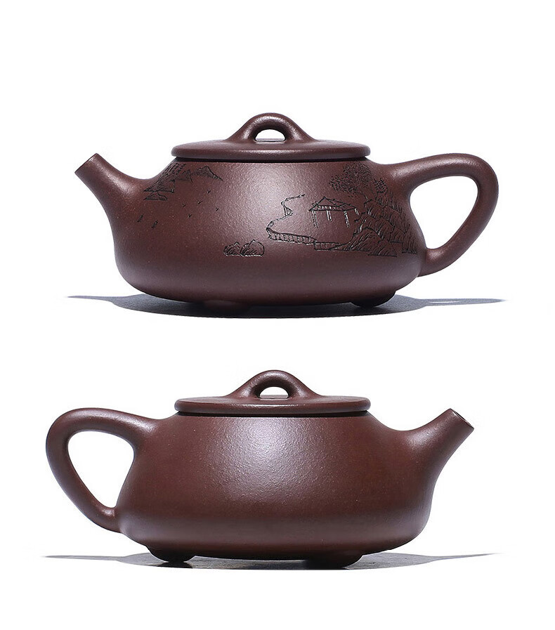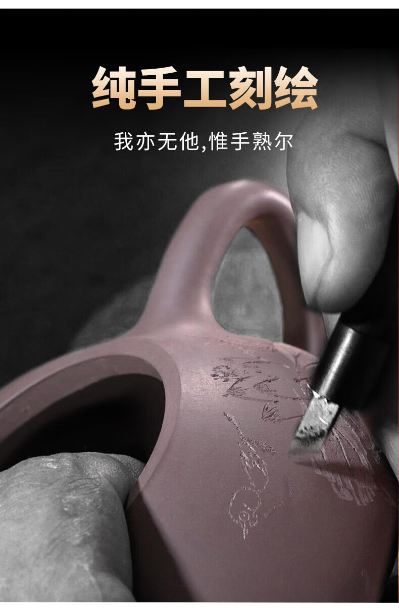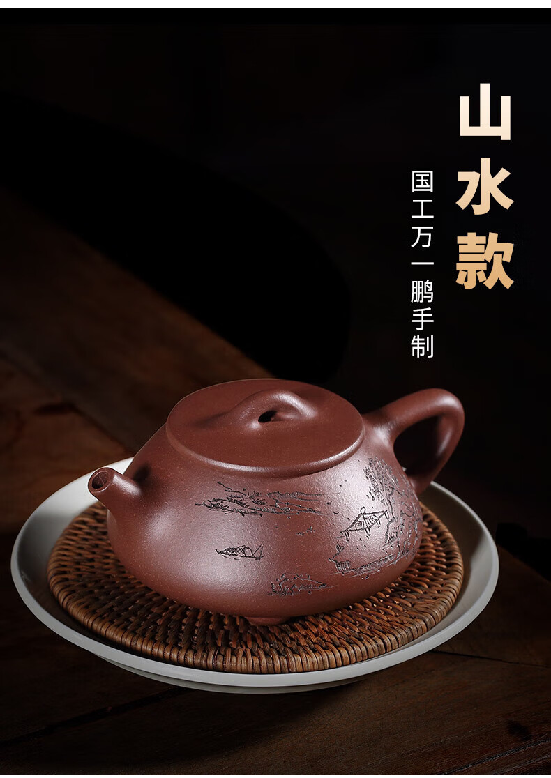 Zanghu Tianxia Yixing purple clay teapot purely hand-engraved stone ladle teapot household tea set complete set of Kung Fu teapot Jingzhou stone ladle teapot landscape style (set)