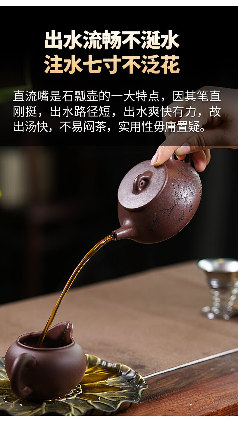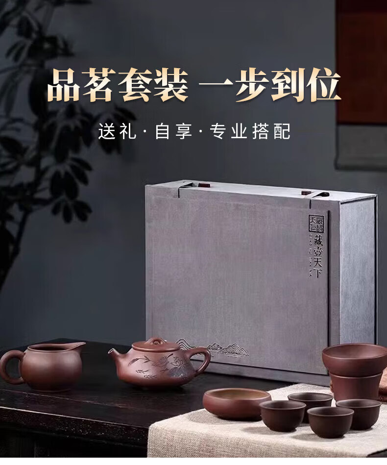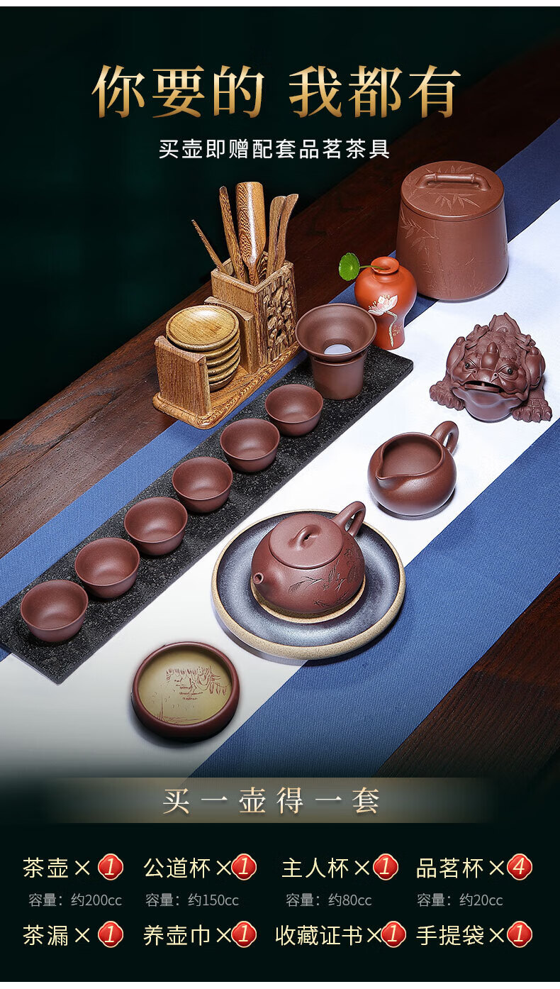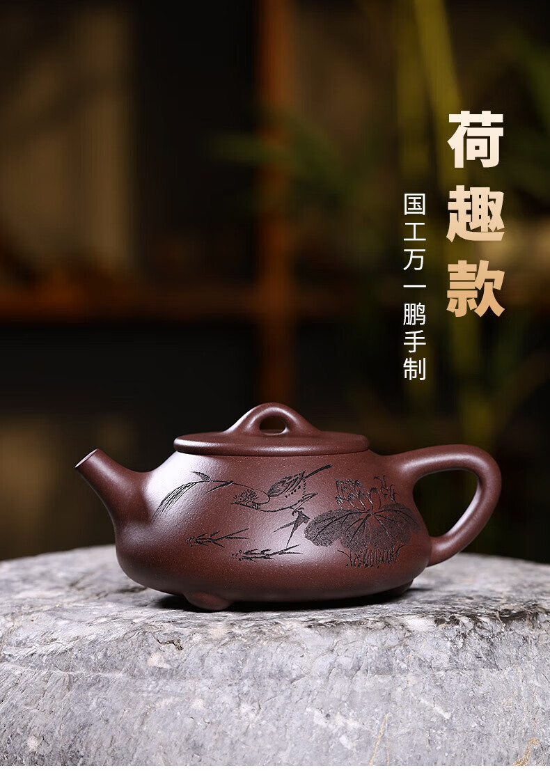 Zanghu Tianxia Yixing purple clay teapot purely hand-engraved stone ladle teapot household tea set complete set of Kung Fu teapot Jingzhou stone ladle teapot landscape style (set)