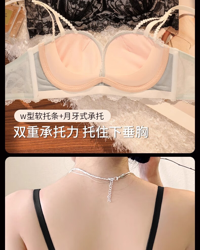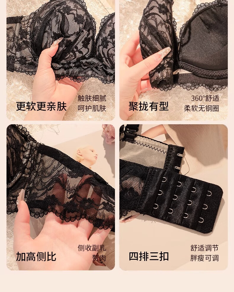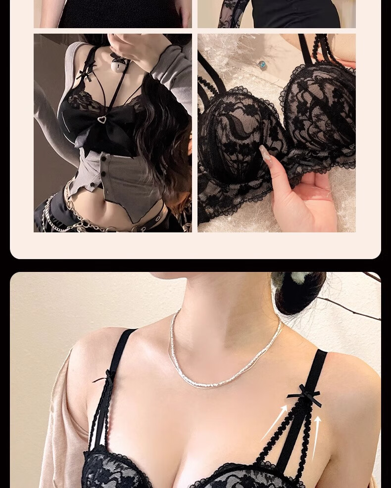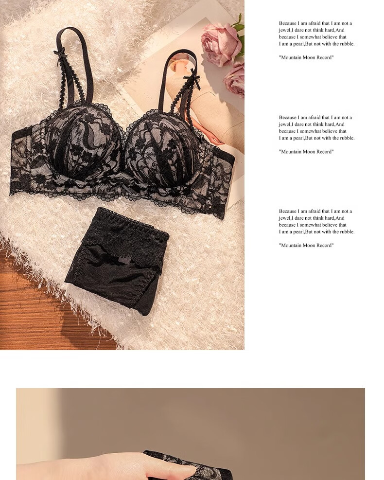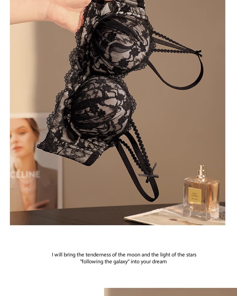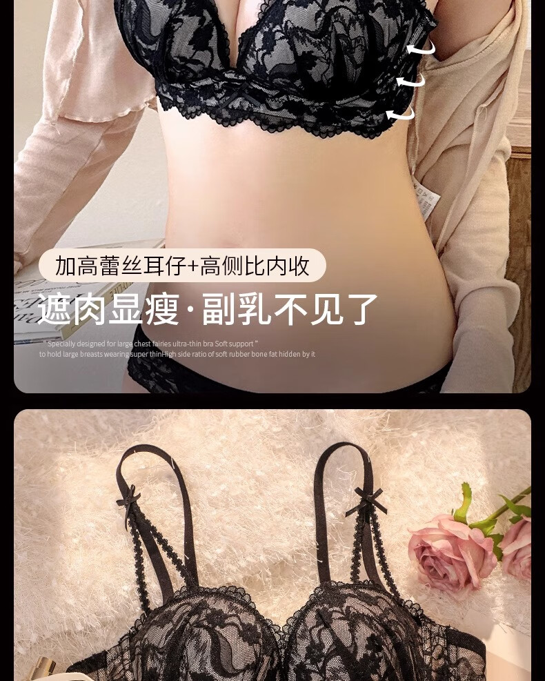 Underwear for women with small breasts, push-up and enlarge, support breasts, prevent sagging, shrink side breasts, French sexy lace thickened bra set, black - single piece L (36/80AB)