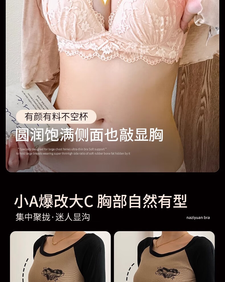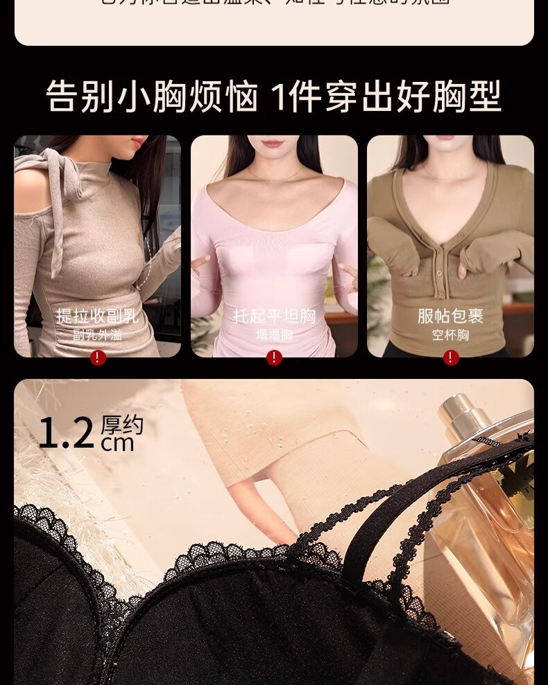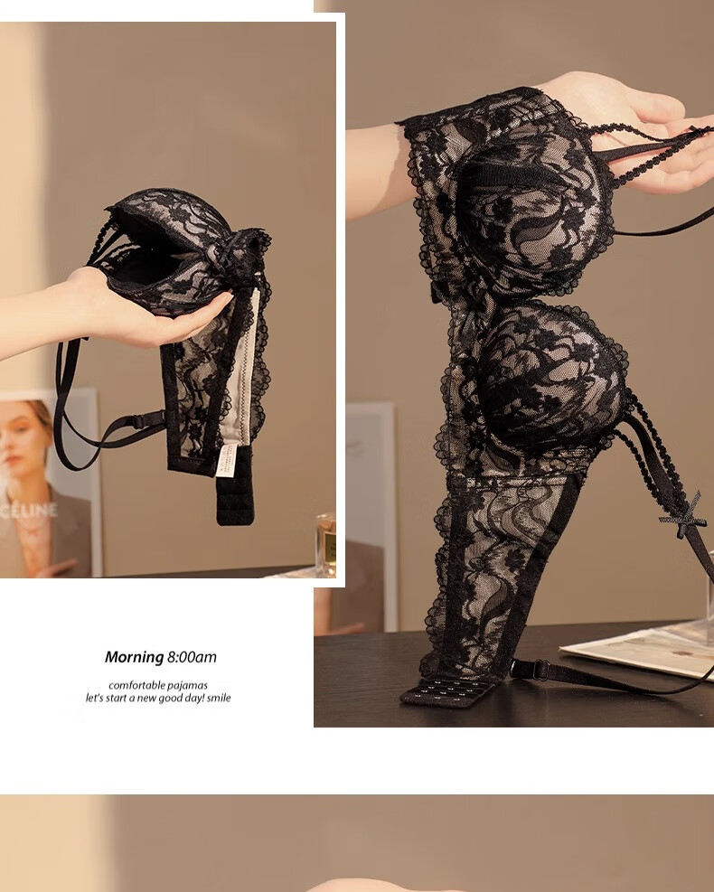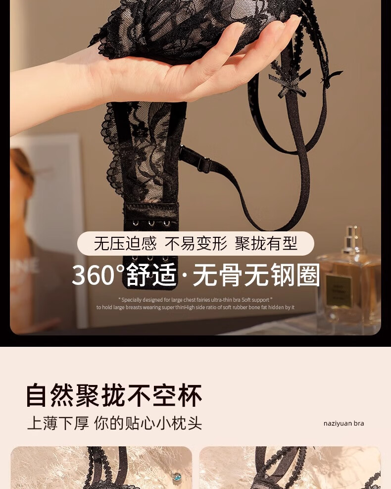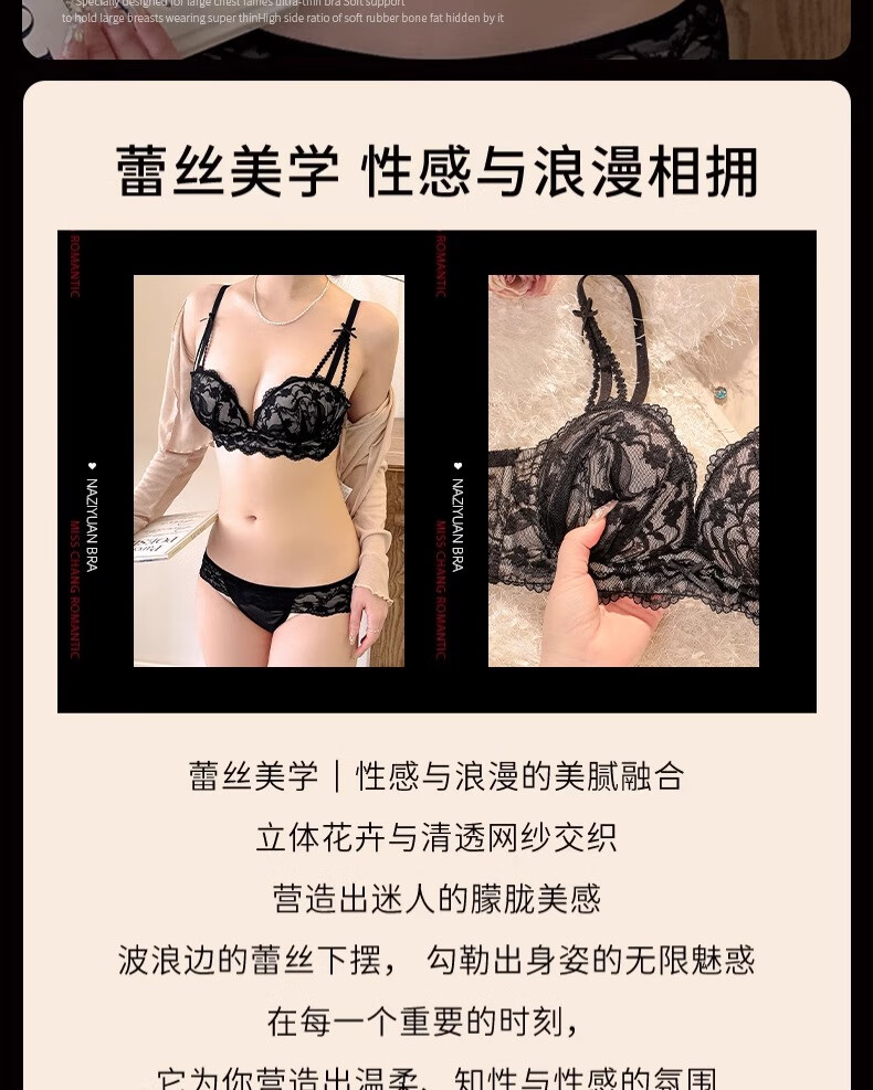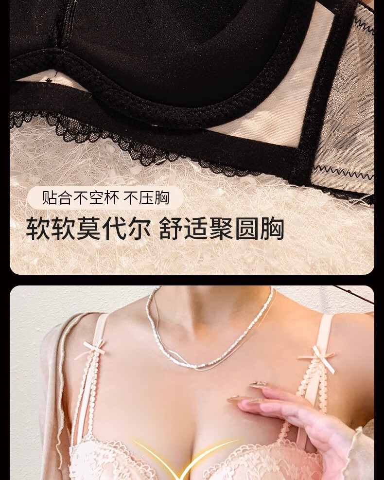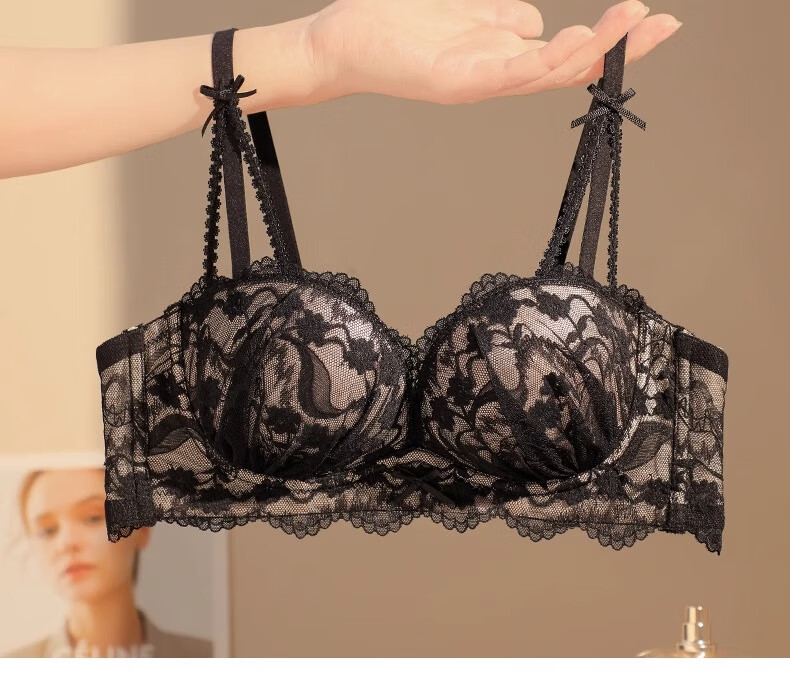 Underwear for women with small breasts, push-up and enlarge, support breasts, prevent sagging, shrink side breasts, French sexy lace thickened bra set, black - single piece L (36/80AB)