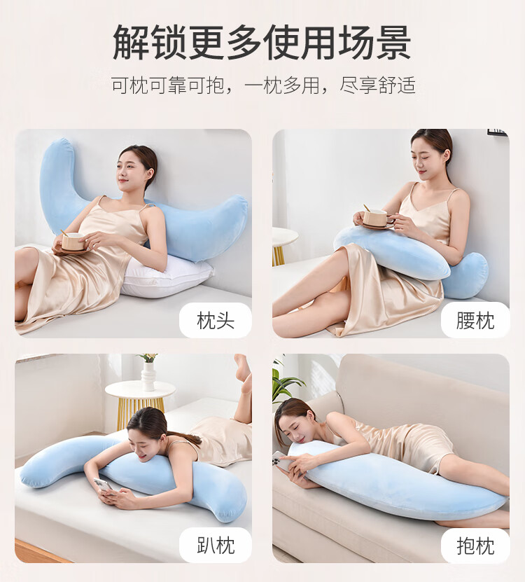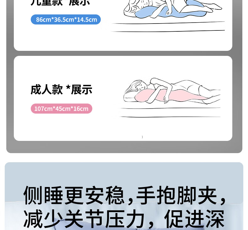 LangSha (LangSha) bed pillow for pregnant women to hold their legs, long pillow for boys and girls, special large side sleeping pillow, four seasons style - blue, care for waist and legs, 45cm*115cm, including pillow core, adult version