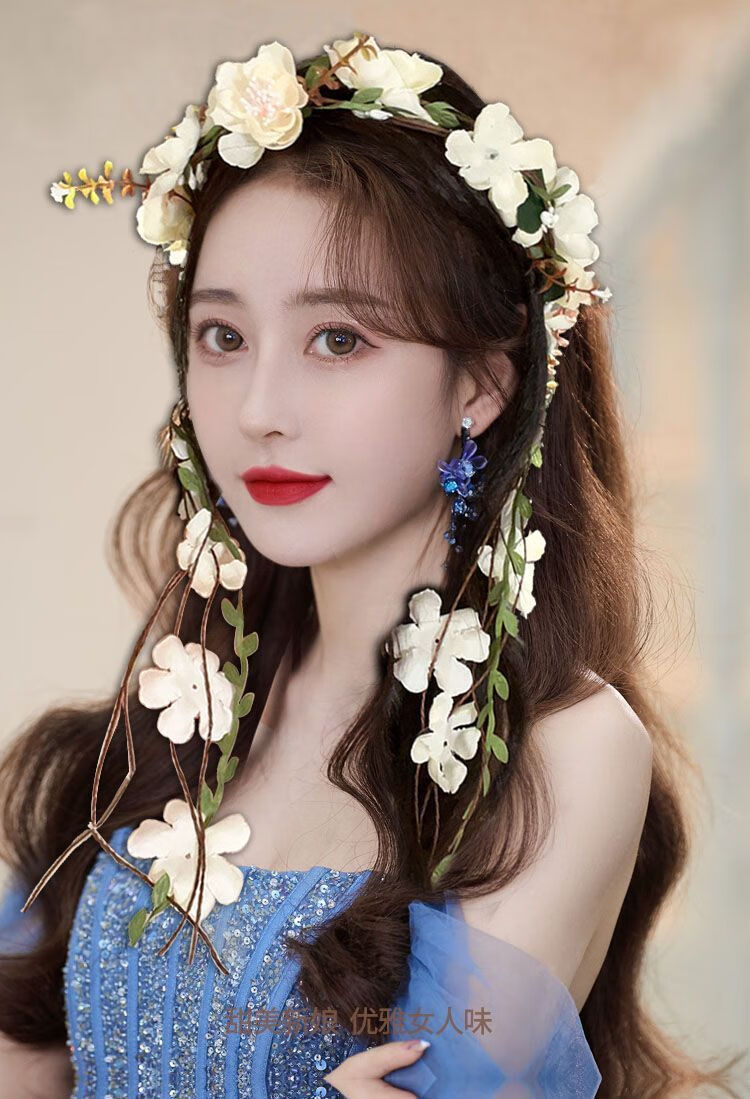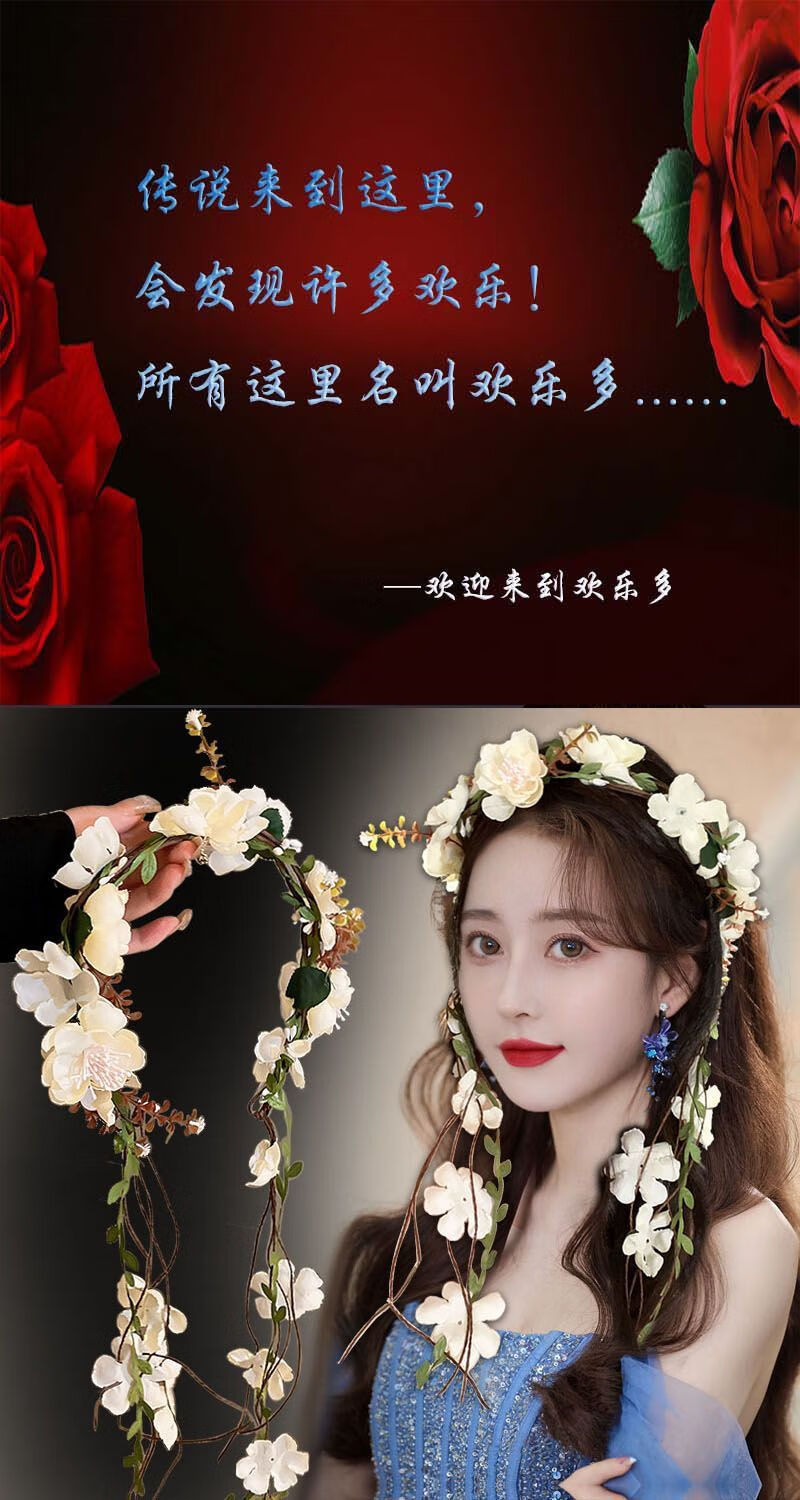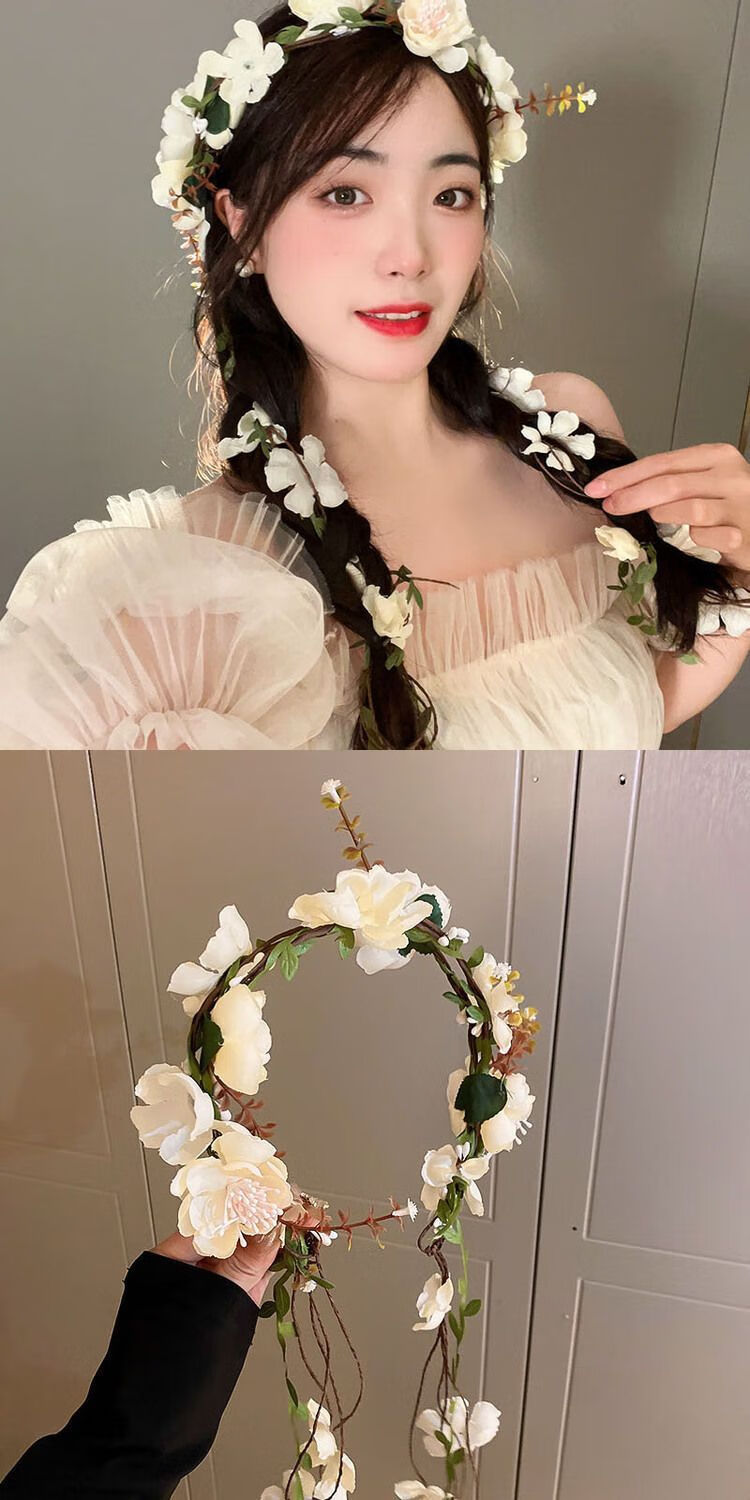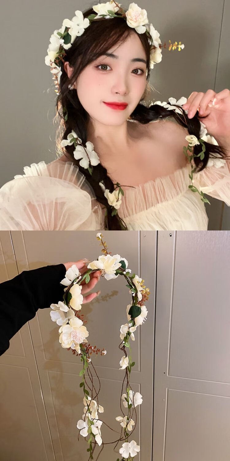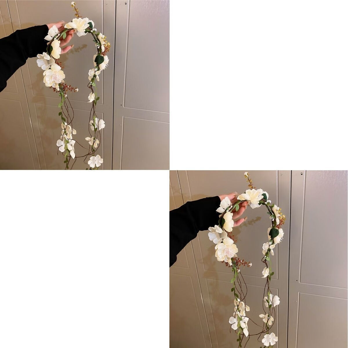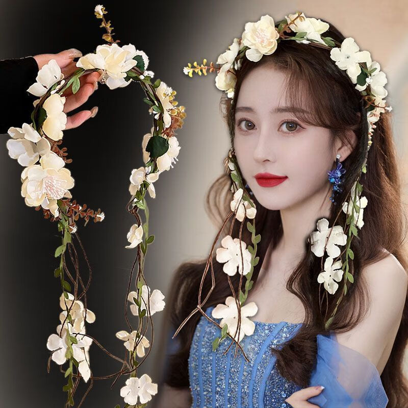 ENRMIIV 2025 new garland headdress Mori girl flower branches and leaves tassel garland headband fashionable forest headband fresh hair accessories Flower Fairy off-white headband one pack