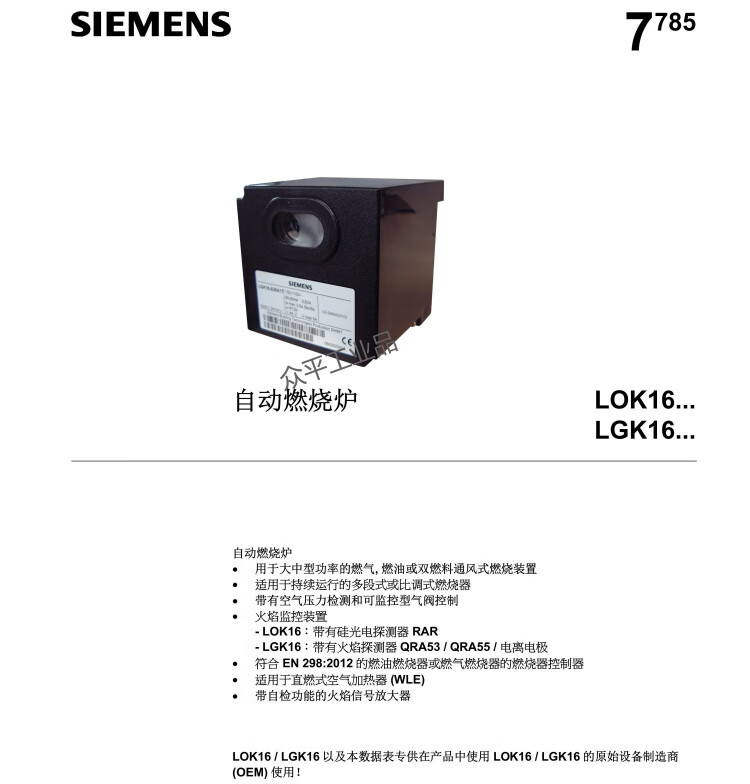Siemens combustion controller control system LGK16.122A27/322A27/333A17/333A27 LGK16.122A27