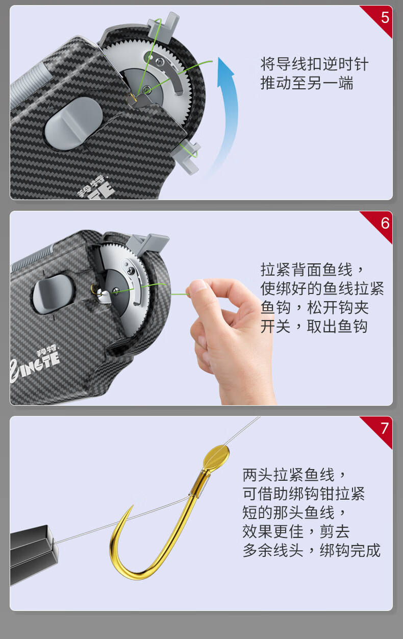 Electric hook tying device, sub-line knotting device, fully automatic multi-functional hook tying device, fishing hook line winder, fishing gear supplies, electric hook tying device, battery model, free battery
