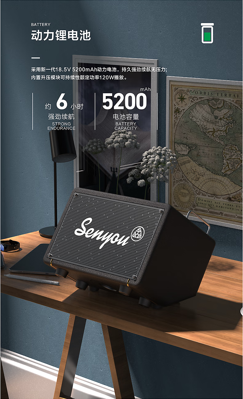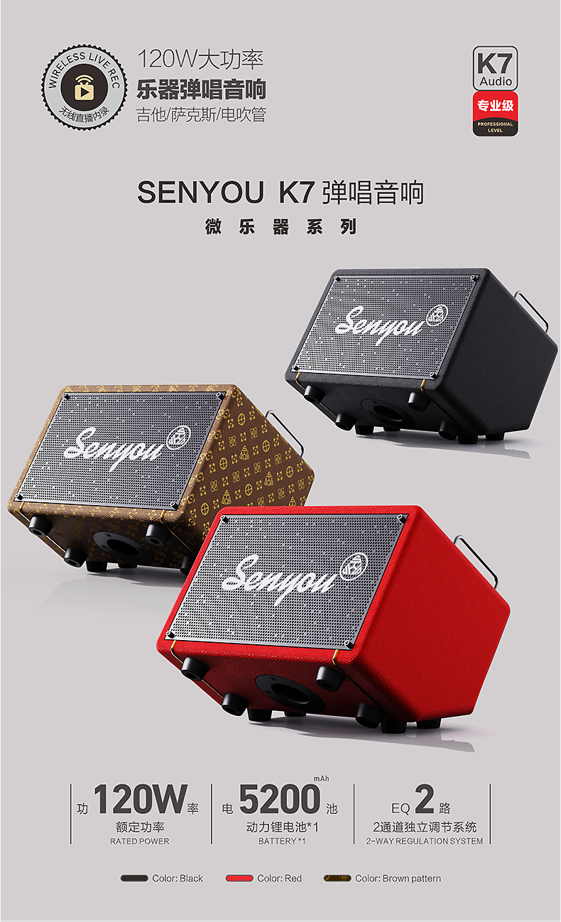 Senyu K7 playing and singing guitar speaker Bluetooth portable musical instrument playing singing electric blowpipe audio professional internet celebrity live broadcast K7 black