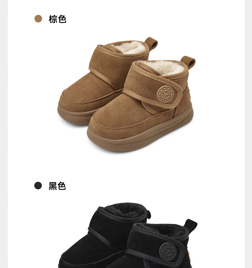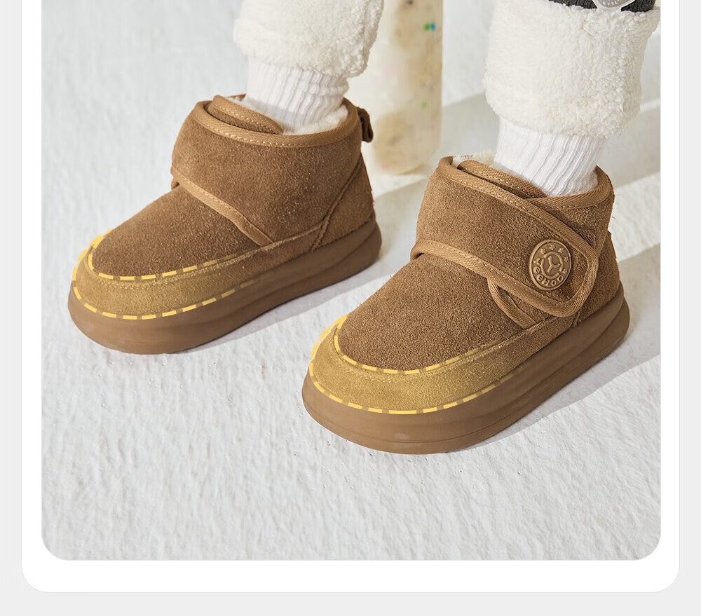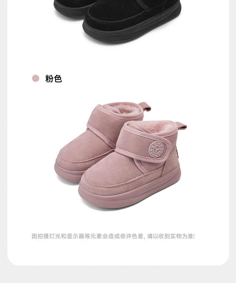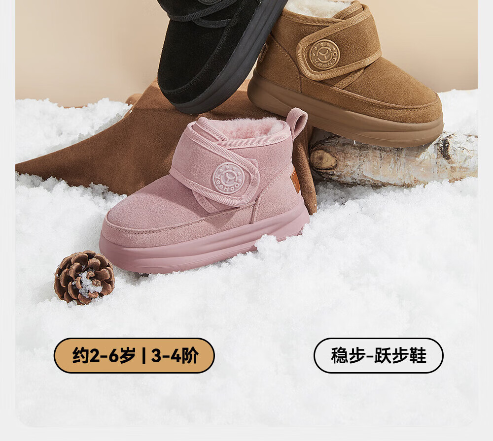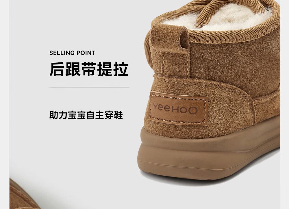 YEEHOO children's shoes, snow casual boots, winter velvet thickened soft-soled cotton boots for boys and girls, warm cotton shoes, brown 26, recommended foot length 14.8-15.3