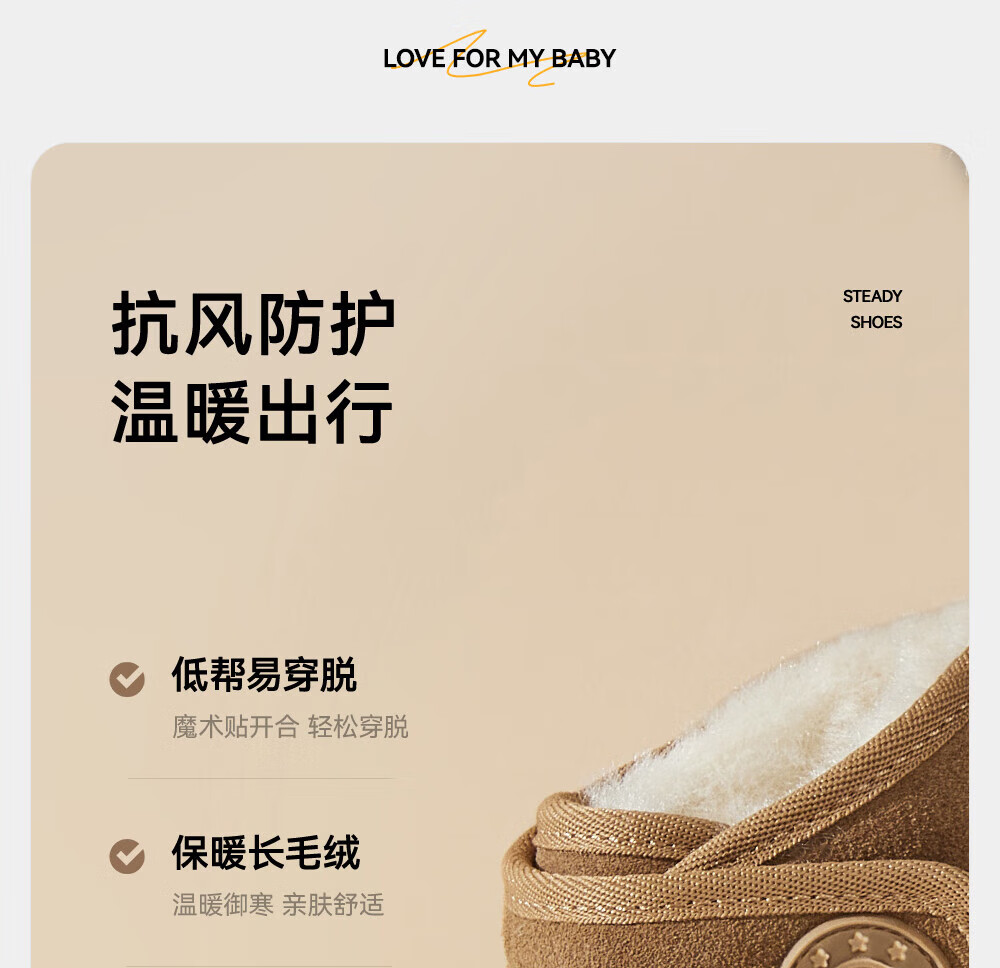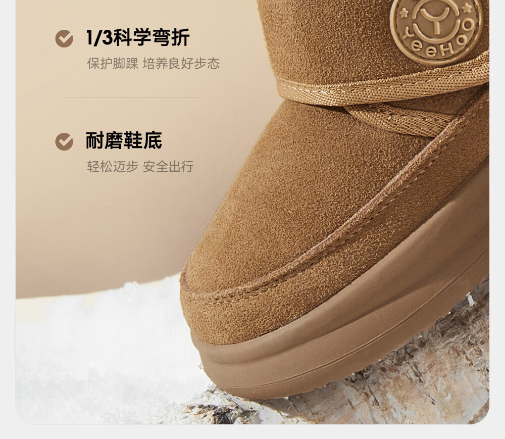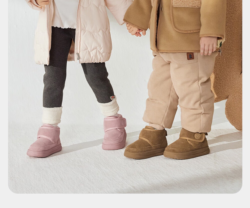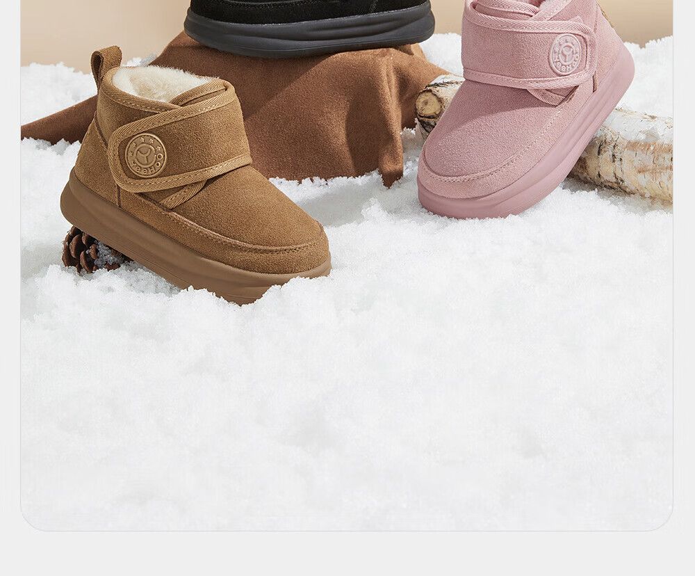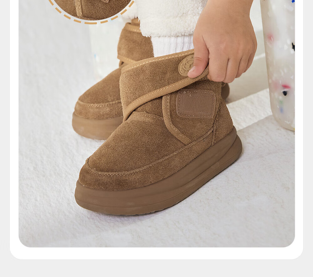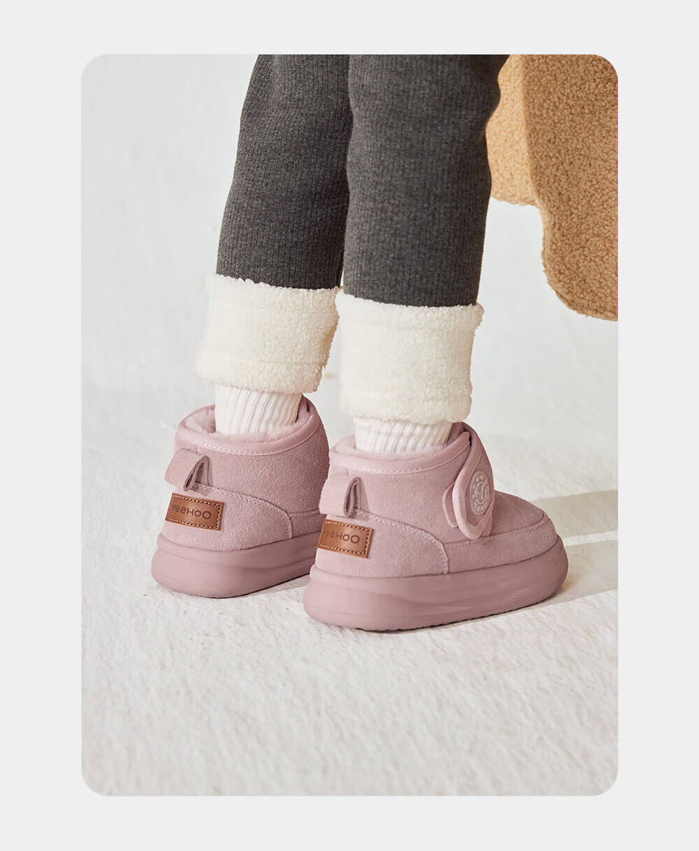 YEEHOO children's shoes, snow casual boots, winter velvet thickened soft-soled cotton boots for boys and girls, warm cotton shoes, brown 26, recommended foot length 14.8-15.3